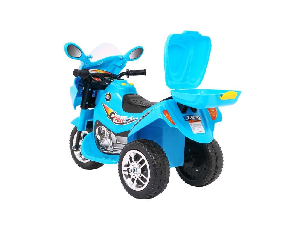 Dětská motorka, která má silné plasty, kvalitní materiály a zpracování. Jezdí vpřed i vzad – ovládá se přepínačem na nádrži a nožním pedálem na stupátku. Při nesešlápnutém pedálu tah motoru nahrazuje brzdu. Motorce svítí světla a samozřejmě nechybí zvukové efekty. Jedinečná motorka má otevíratelný kufr. Motorka je vhodná pro děti od 3 let.