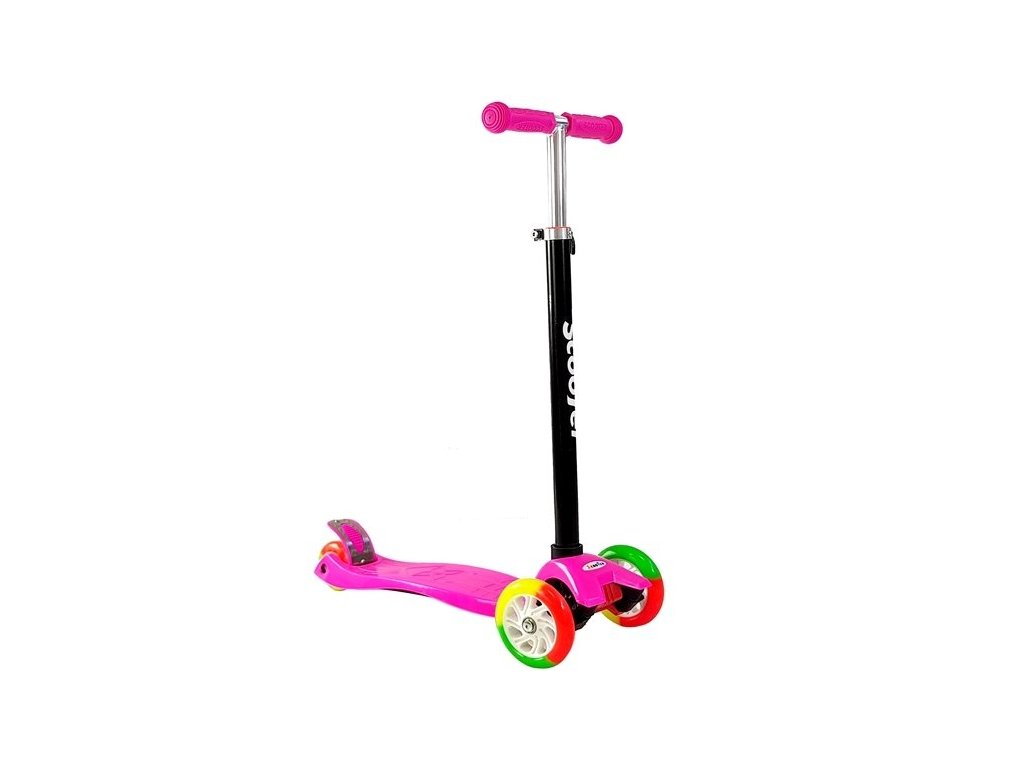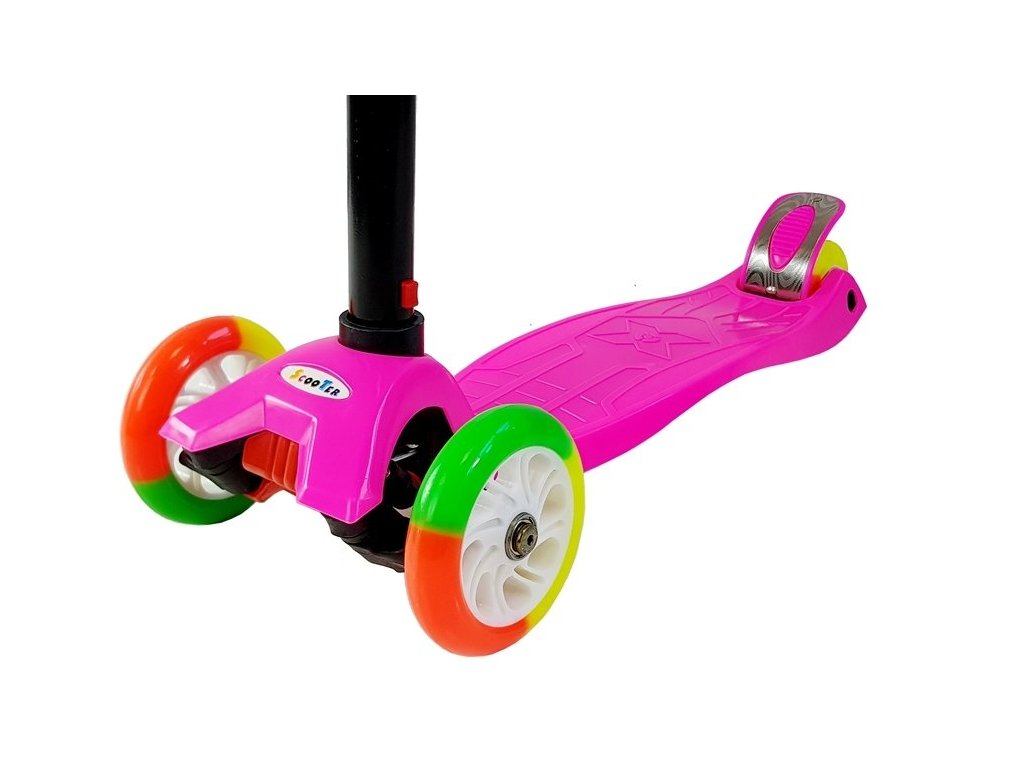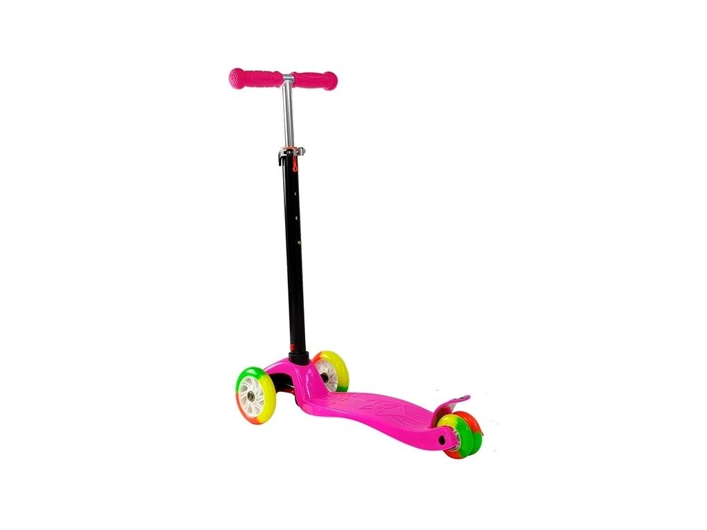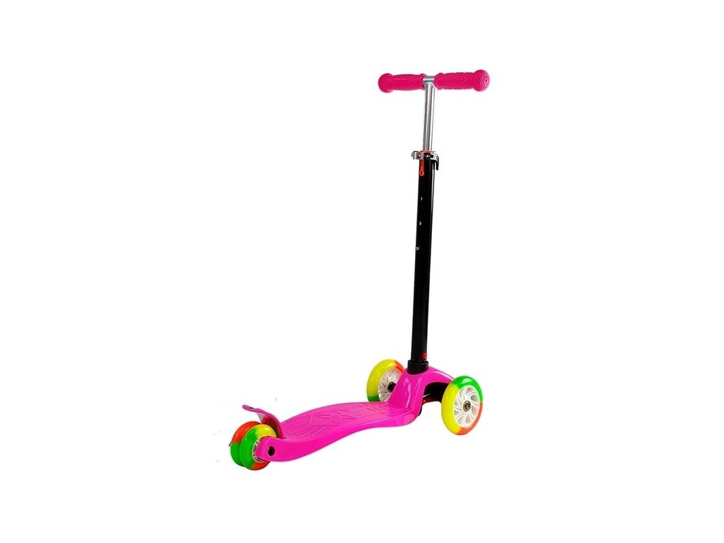 Dětská koloběžka tříkolová LED růžová s barevnými kolečky