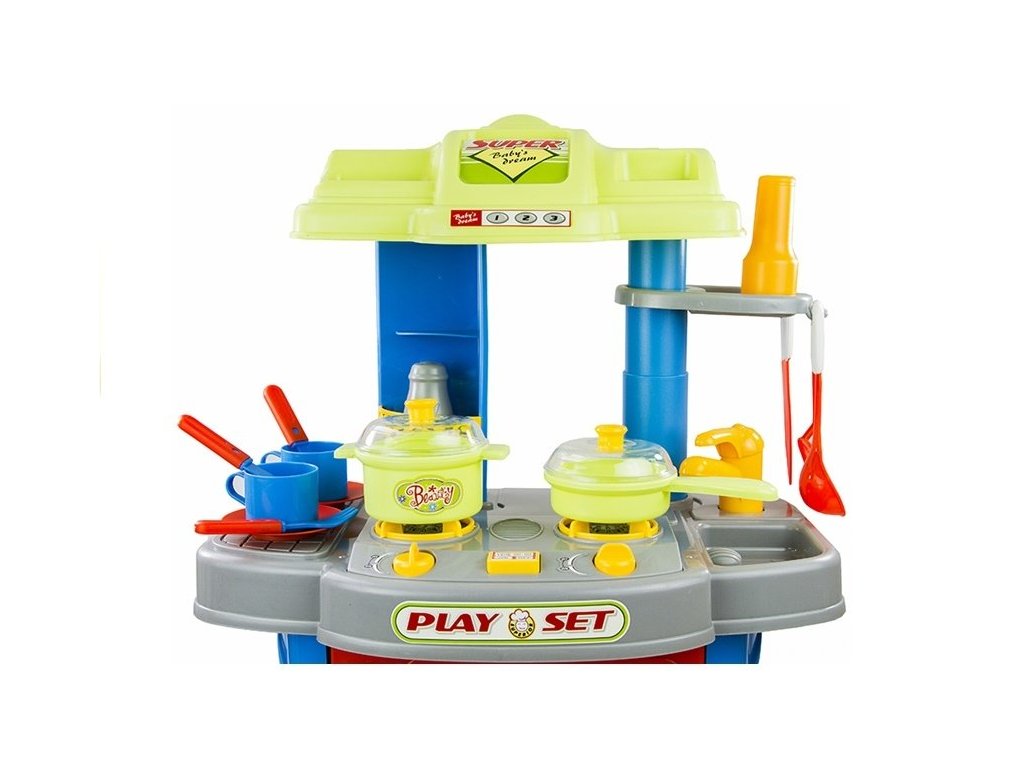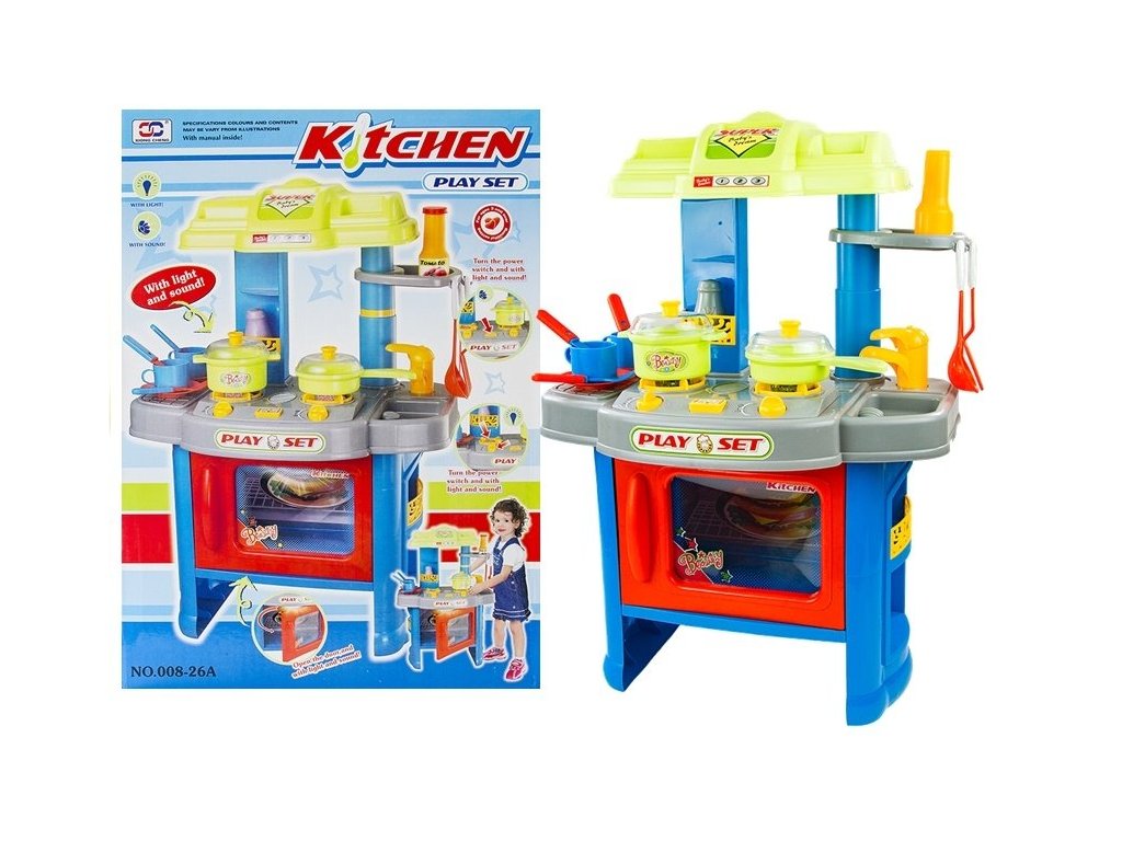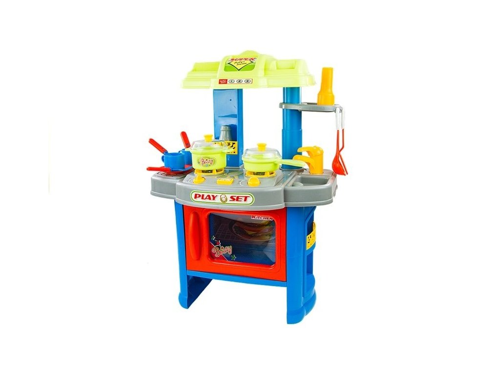 Prezentovaná kuchyňka se vyznačuje inovativním moderním designem a skvělými barvami - kombinace modré barvy s červenými prvky činí samotný pohled povzbuzující a přitahující k zábavě. Hračka se skládá z až 22 prvků - velmi důležité vybavení každé klasické kuchyně. Hračka má dva osvětlené hořáky s nezávislými spínači. Když je zapnete, dítě slyší zvuk, jako je vaření jídla. Další výhodou kuchyňské soupravy pro budoucího šéfkuchaře je vestavěný spínač v troubě, tj. Časovač. Když to dítě zapne, uslyší zvuk specifický pro troubu a uvnitř se rozsvítí světlo. Po naměřené době se vypne.