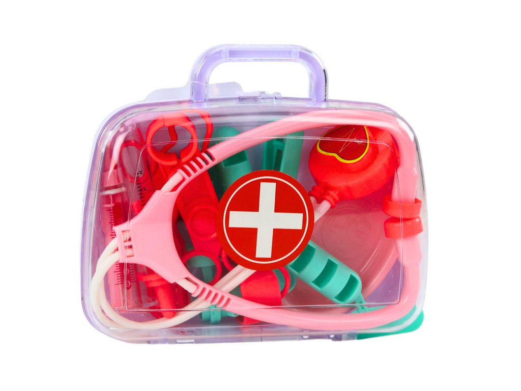 Sada je zabalena v praktickém plastovém kufříku, což usnadňuje skladování a transport, zároveň přidává element autentičnosti a povzbuzuje děti k hraní si na lékaře kdekoliv.