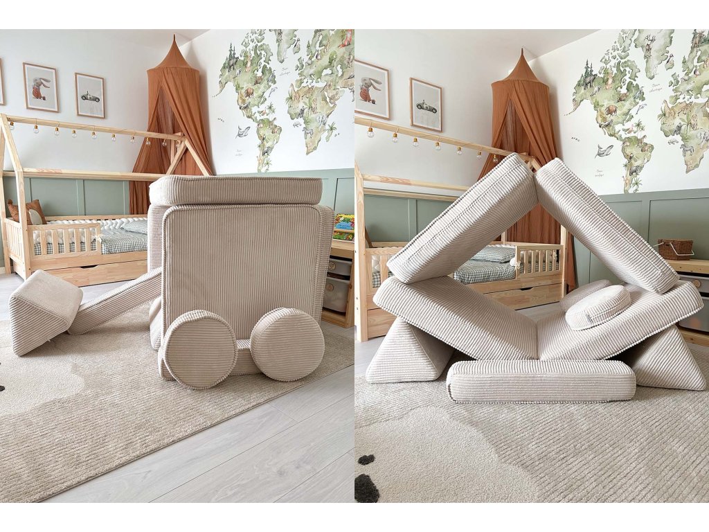- Nekonečná kreativita: Hrací pohovka Shappy se skládá z osmi dílů, které poskytují pevnou konstrukci pro stavění, hraní a rozvíjení dětské fantazie.