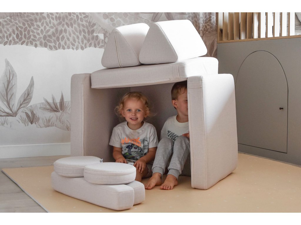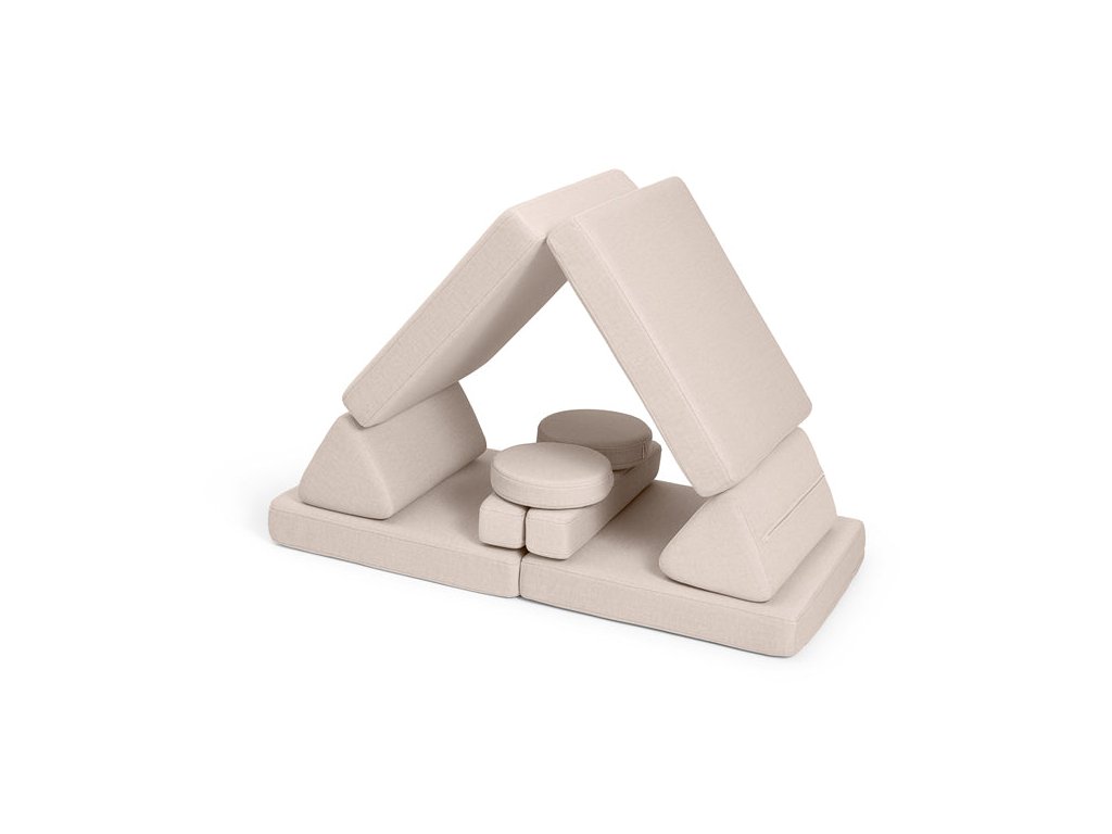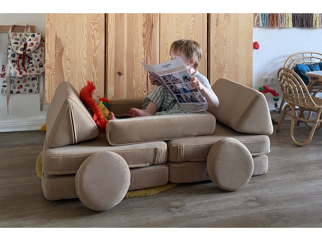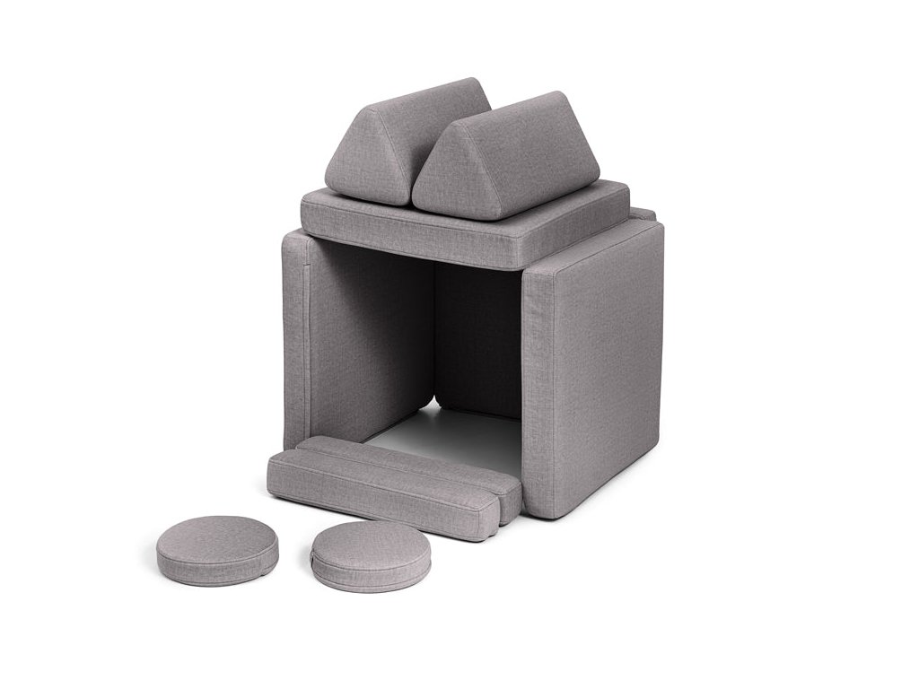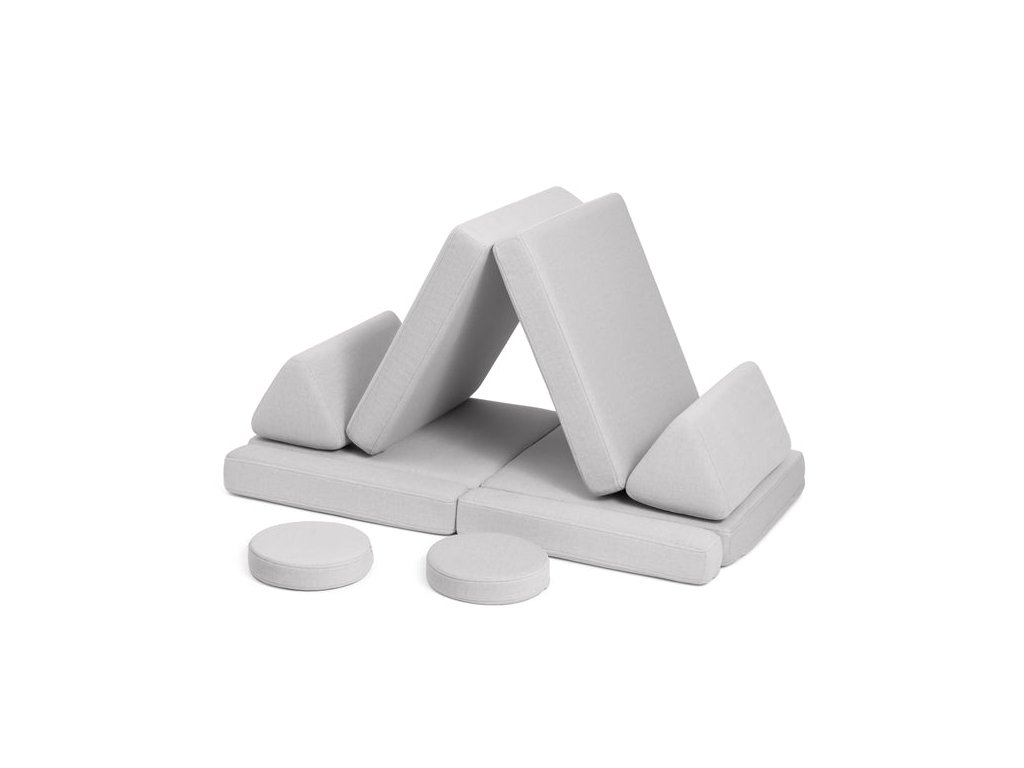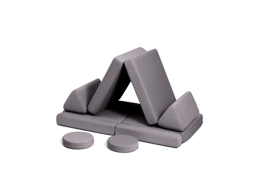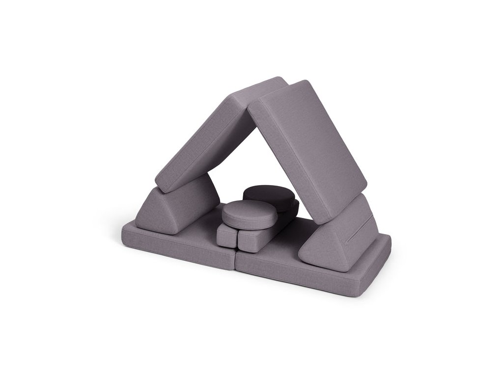 - Hrací pohovka Shappy Mini se skládá z osmi dílů – čtyř sedáků (sešitých po dvou k sobě), dvou trojúhelníků jako opěrek zad, dvou područek a dvou kulatých polštářků – které poskytují pohodlnou a podpůrnou konstrukci pro hraní vašeho dítěte.