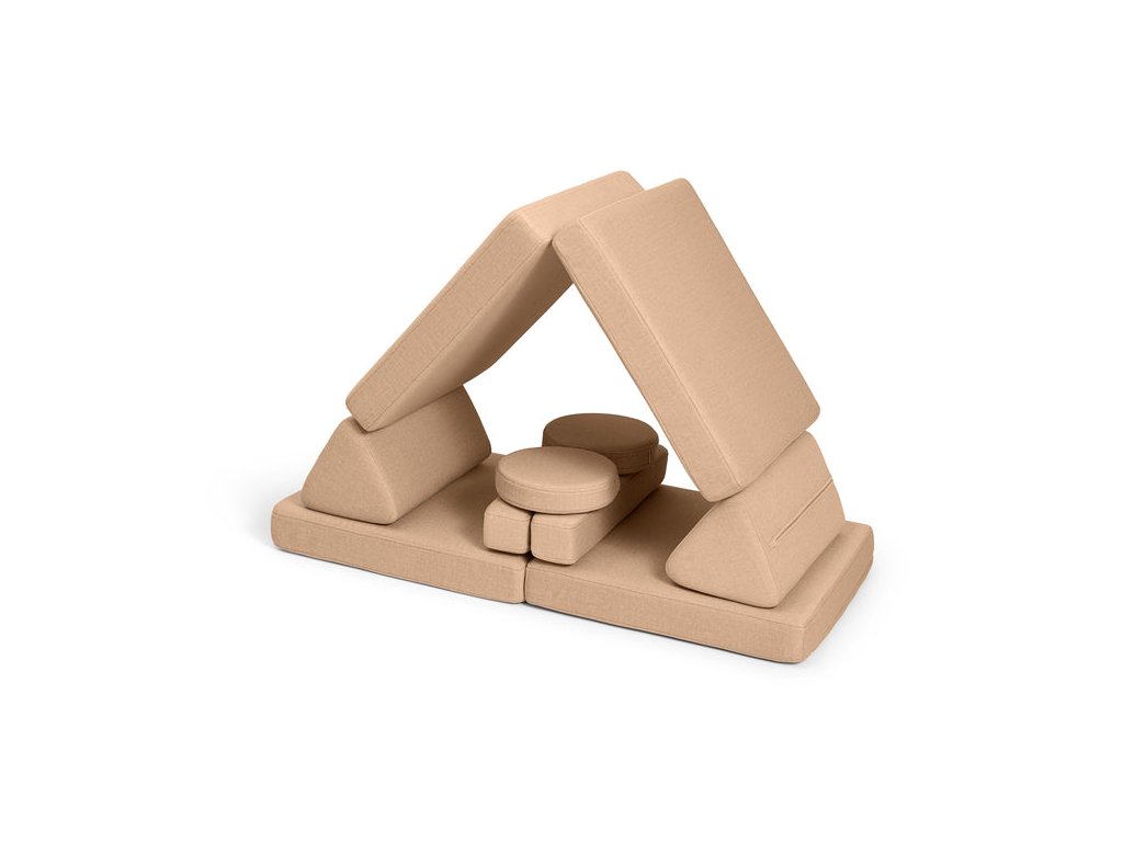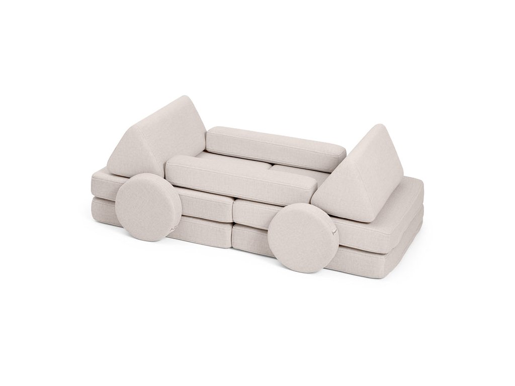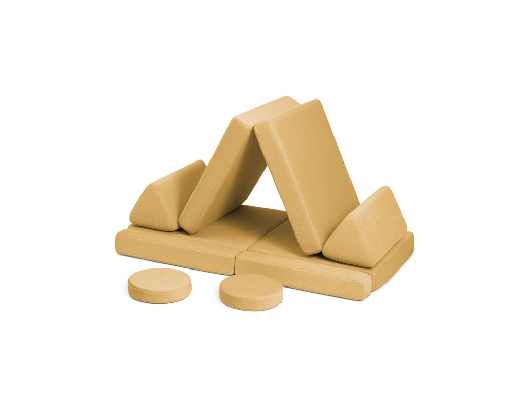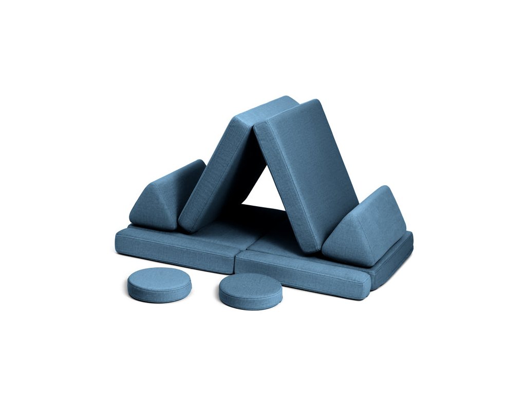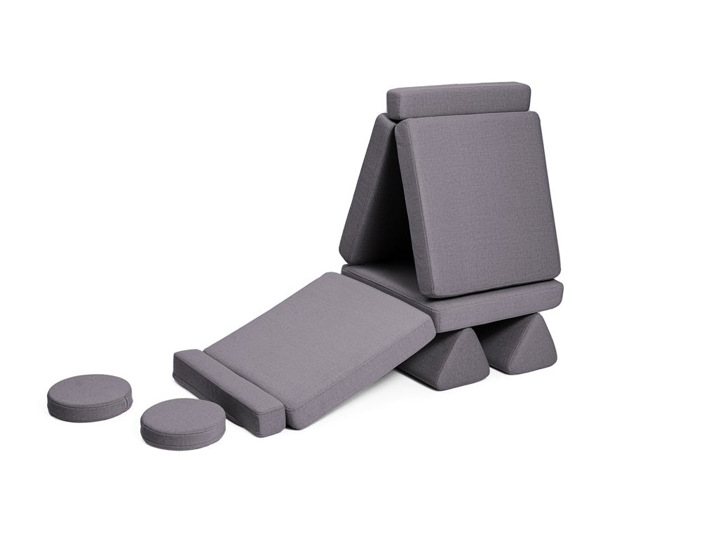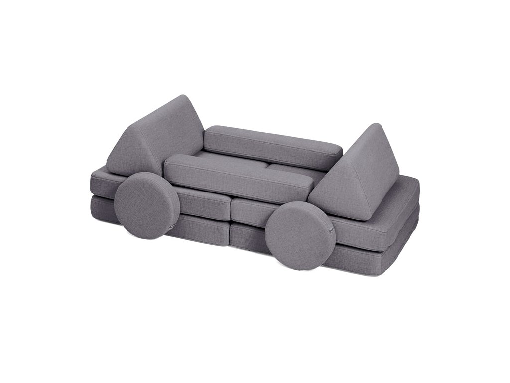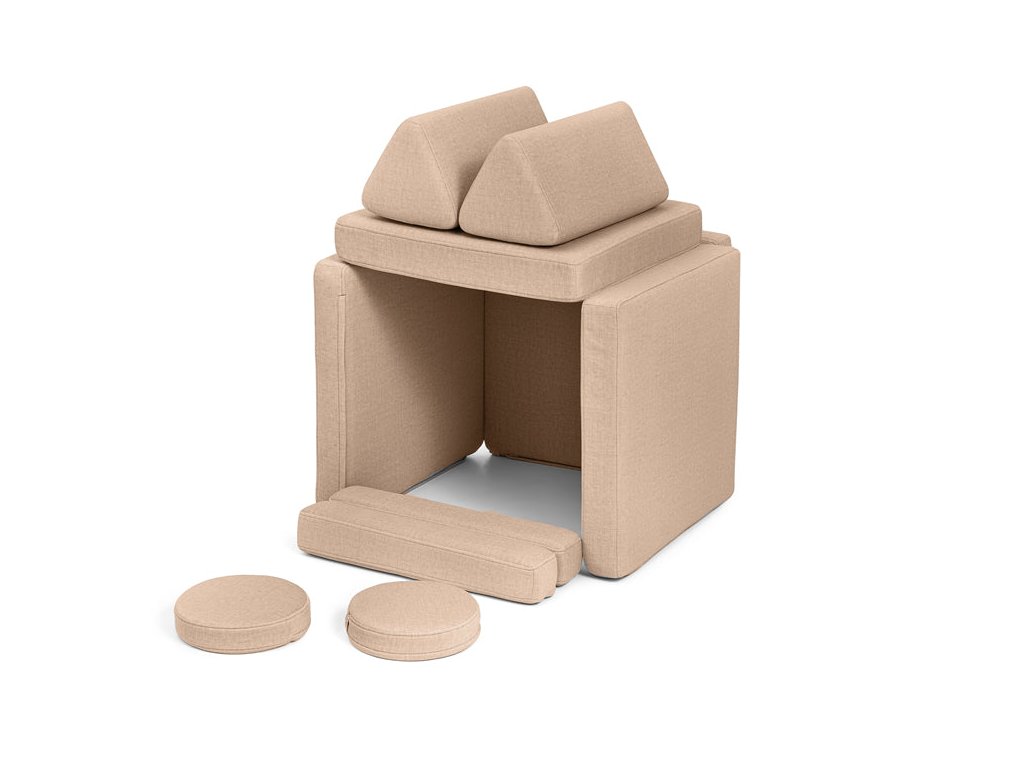 - Hrací pohovka Shappy Mini se skládá z osmi dílů – čtyř sedáků (sešitých po dvou k sobě), dvou trojúhelníků jako opěrek zad, dvou područek a dvou kulatých polštářků – které poskytují pohodlnou a podpůrnou konstrukci pro hraní vašeho dítěte.