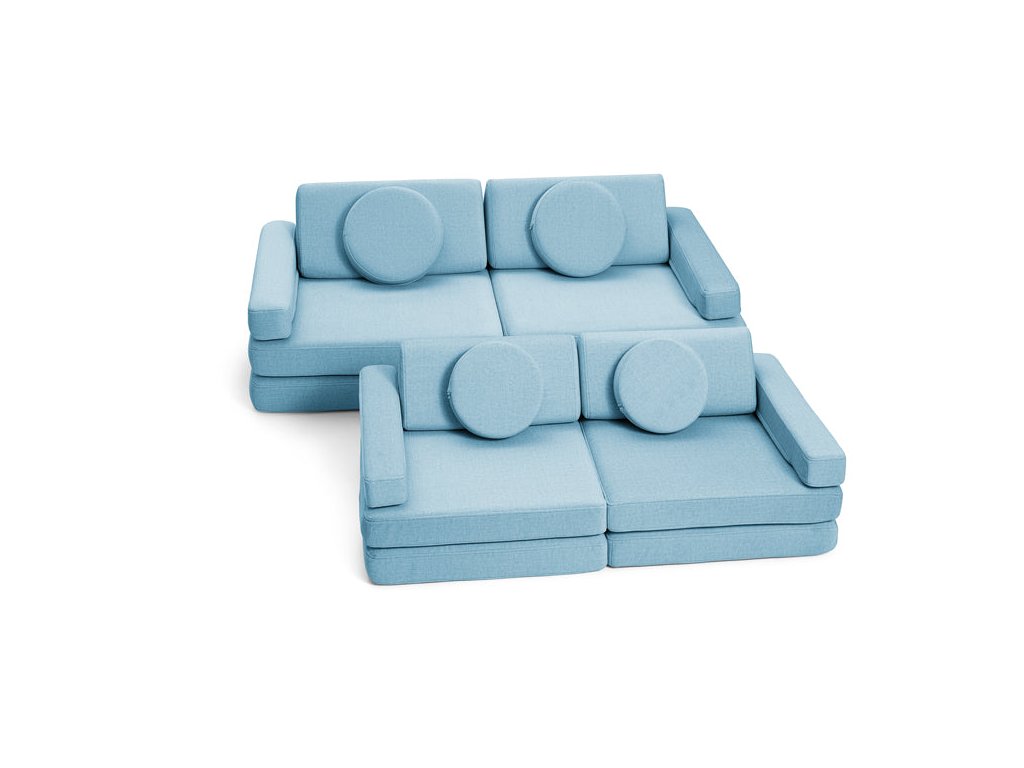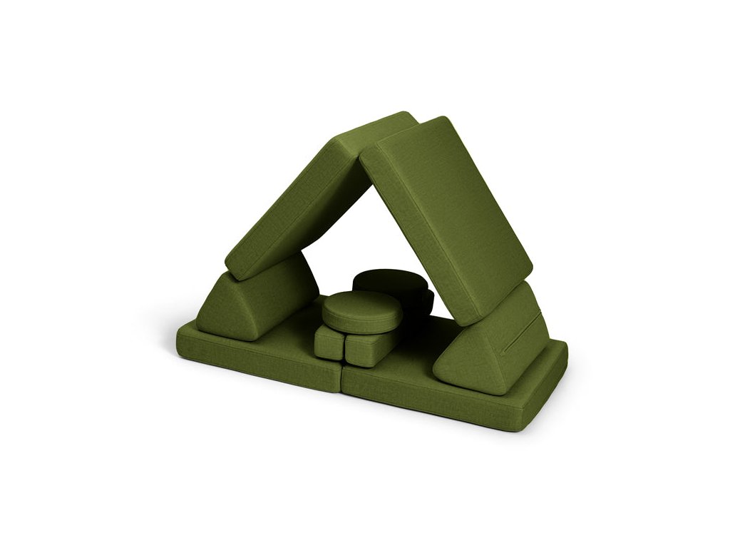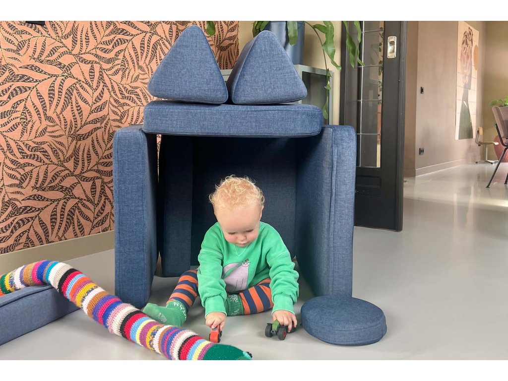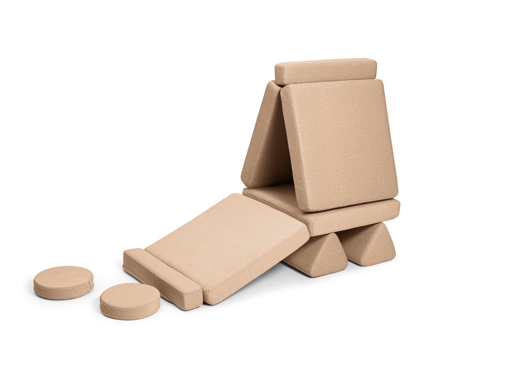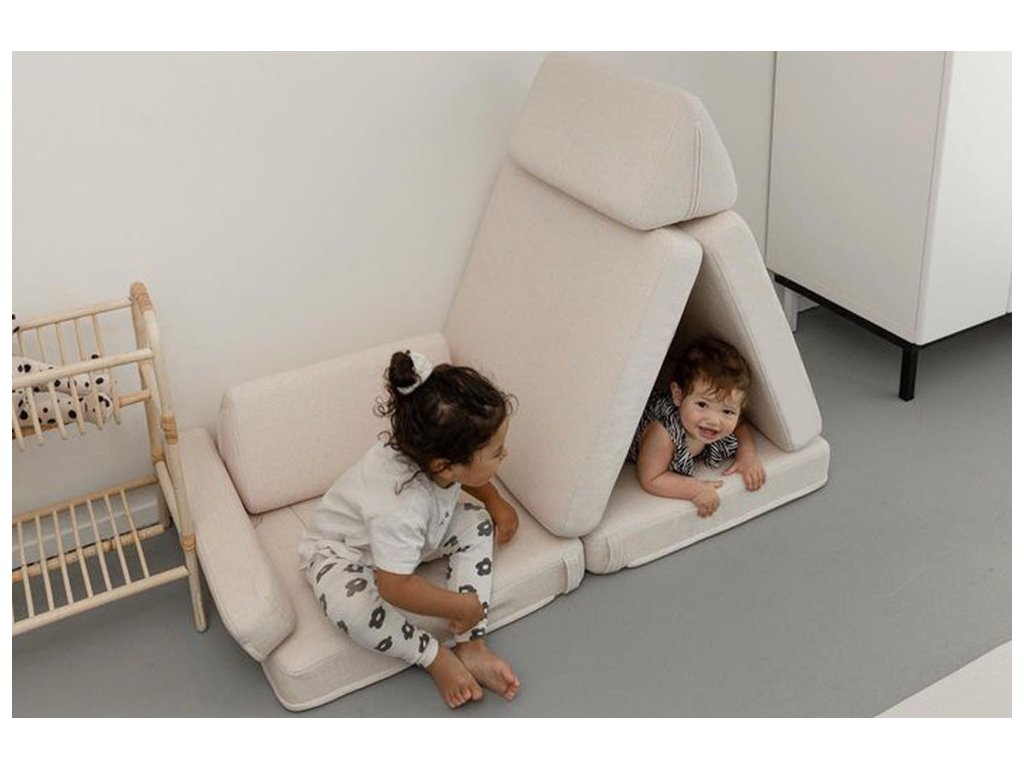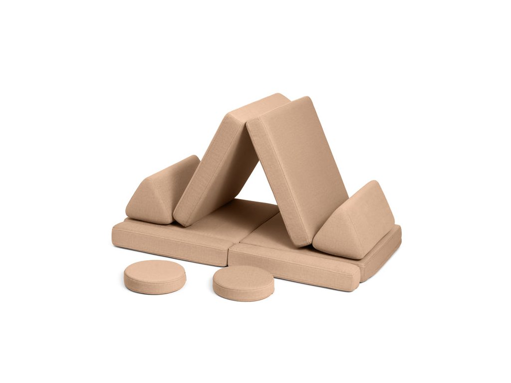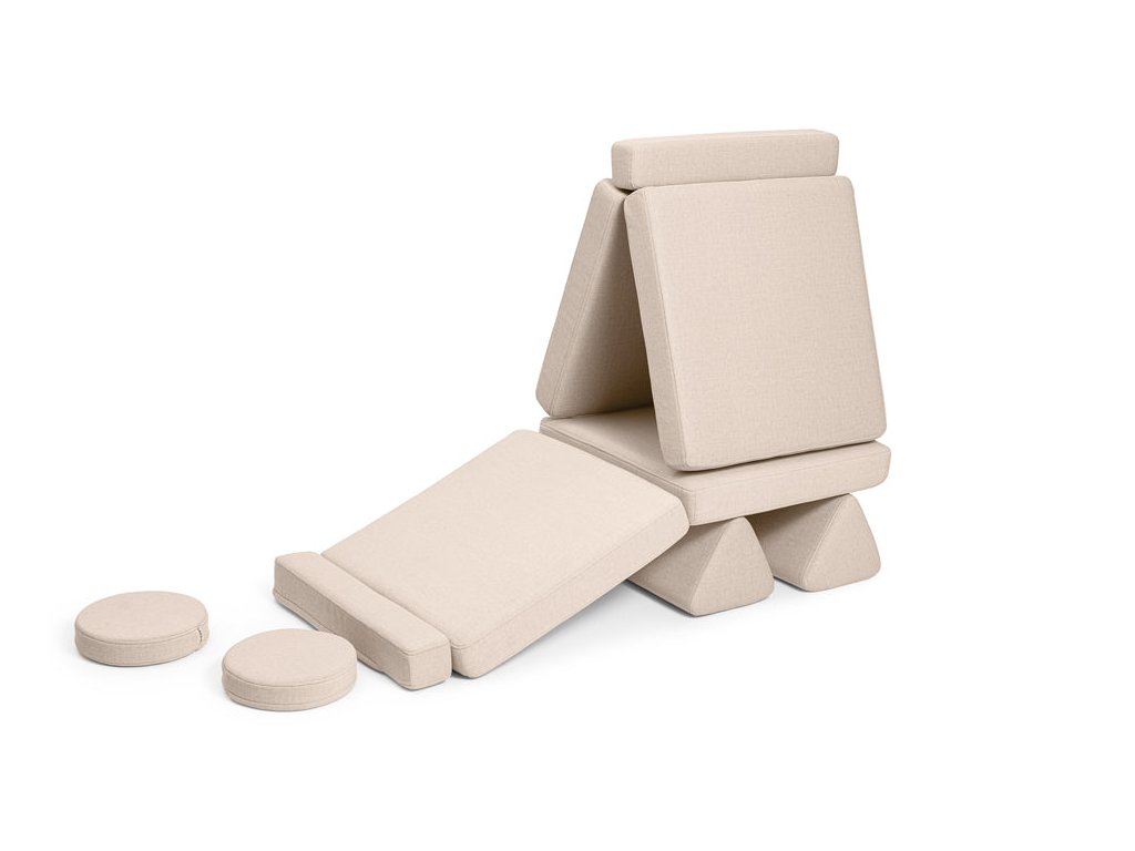 - Hrací pohovka Shappy Mini se skládá z osmi dílů – čtyř sedáků (sešitých po dvou k sobě), dvou trojúhelníků jako opěrek zad, dvou područek a dvou kulatých polštářků – které poskytují pohodlnou a podpůrnou konstrukci pro hraní vašeho dítěte.