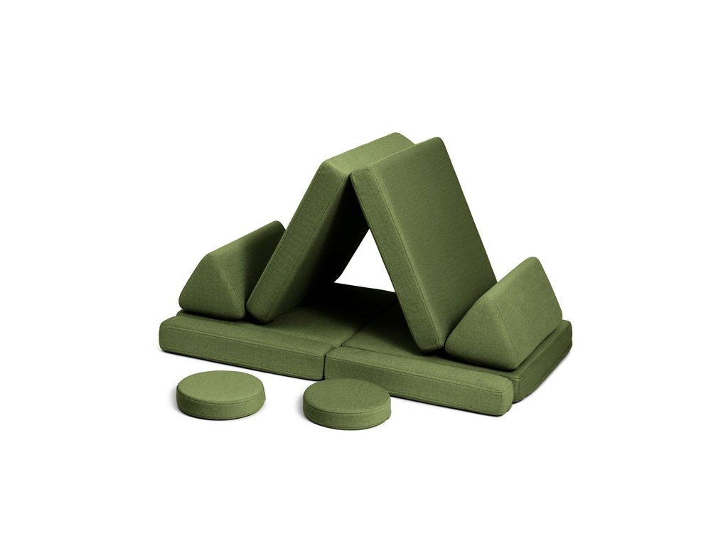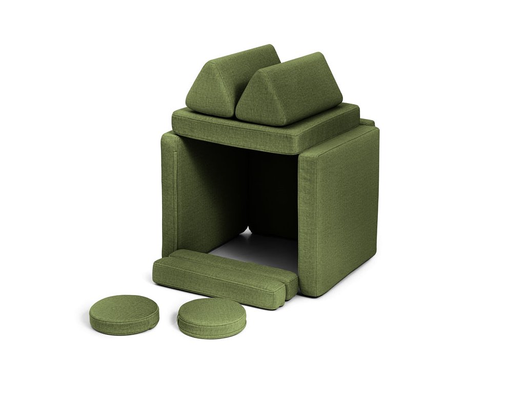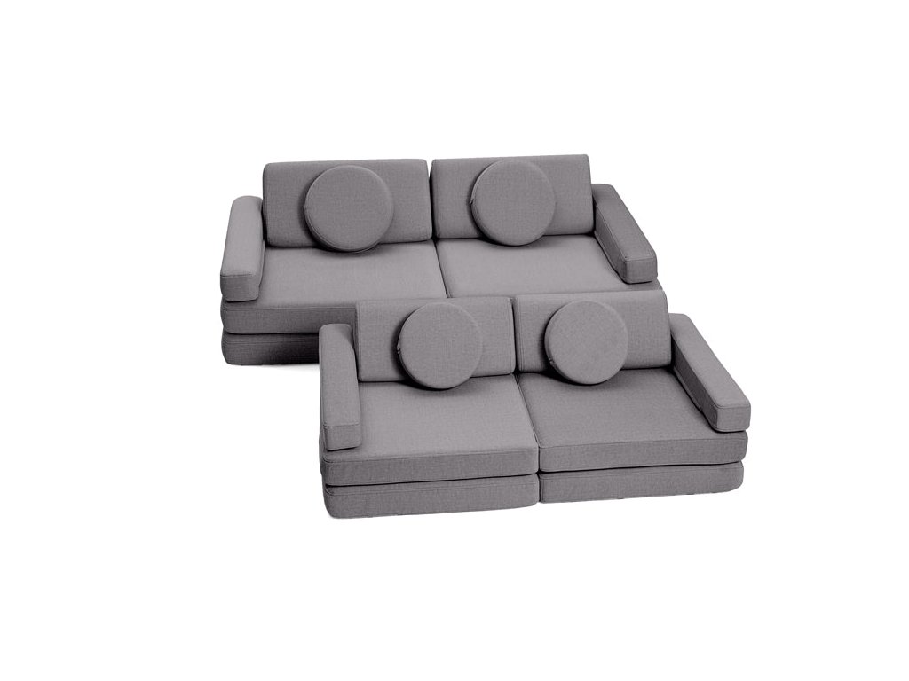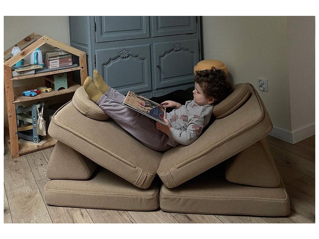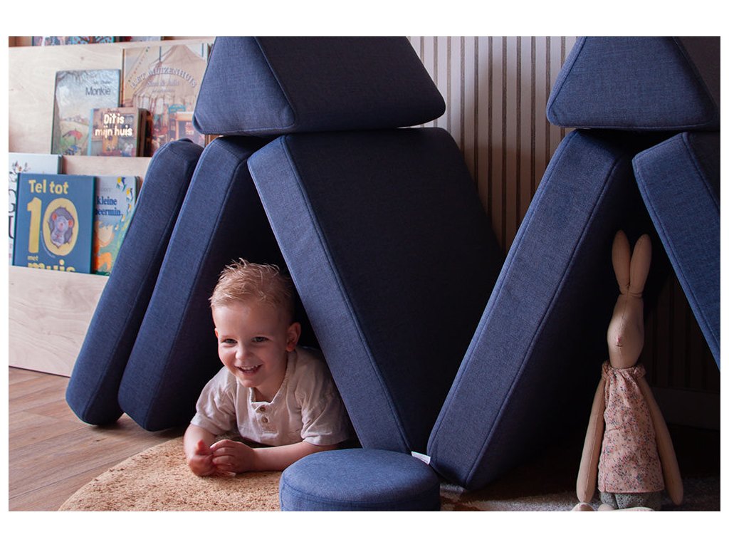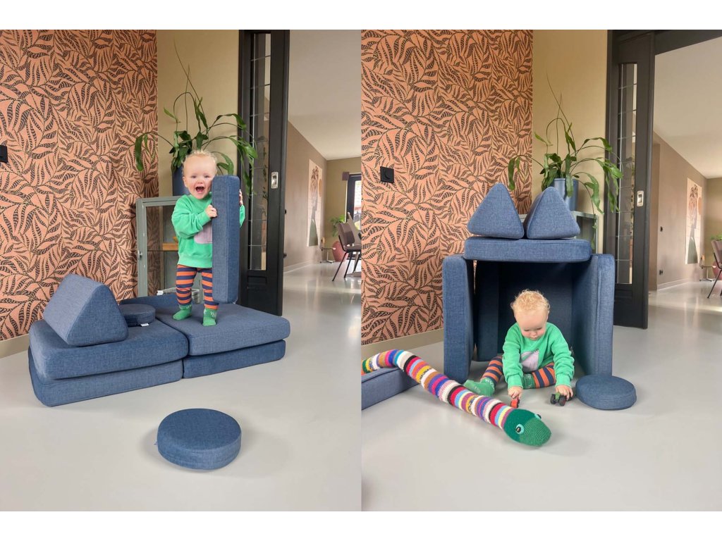 - Hrací pohovka Shappy Mini se skládá z osmi dílů – čtyř sedáků (sešitých po dvou k sobě), dvou trojúhelníků jako opěrek zad, dvou područek a dvou kulatých polštářků – které poskytují pohodlnou a podpůrnou konstrukci pro hraní vašeho dítěte.