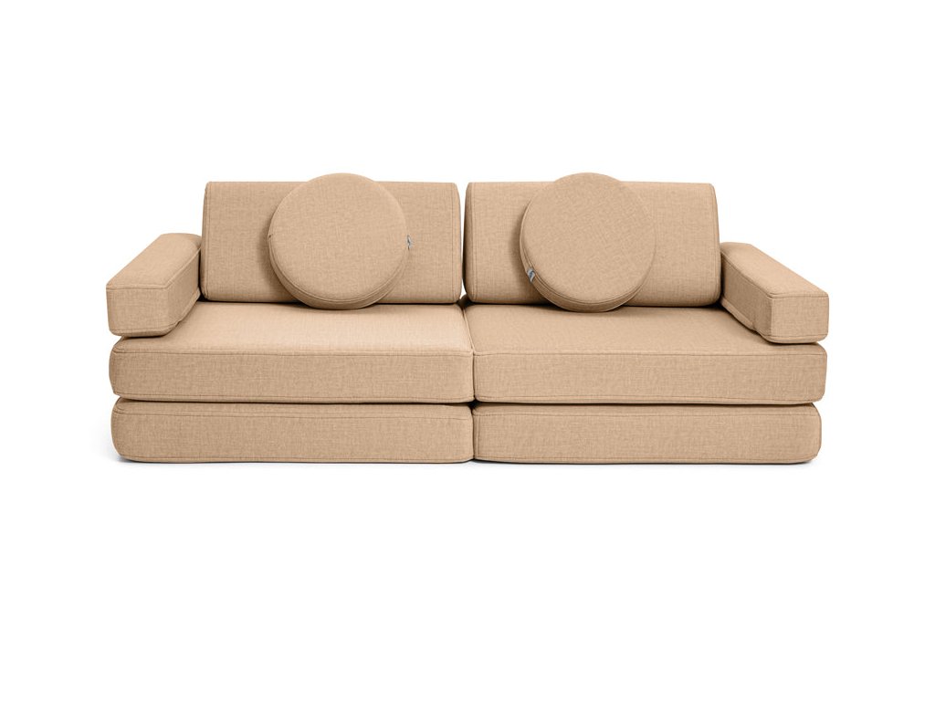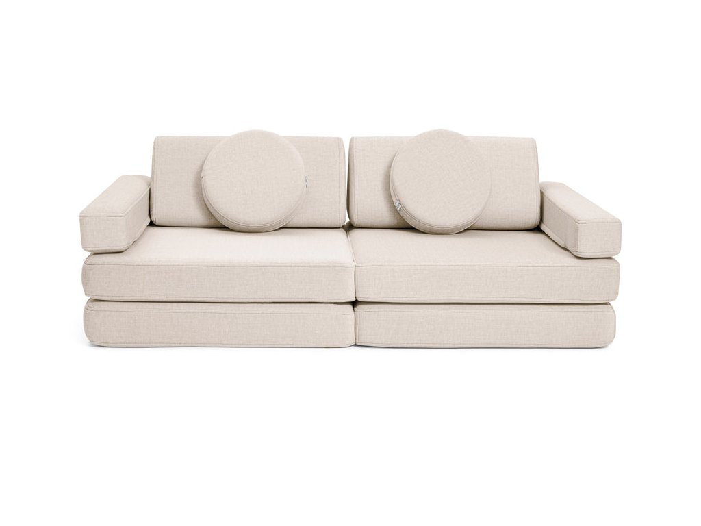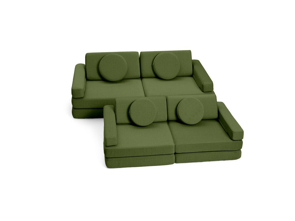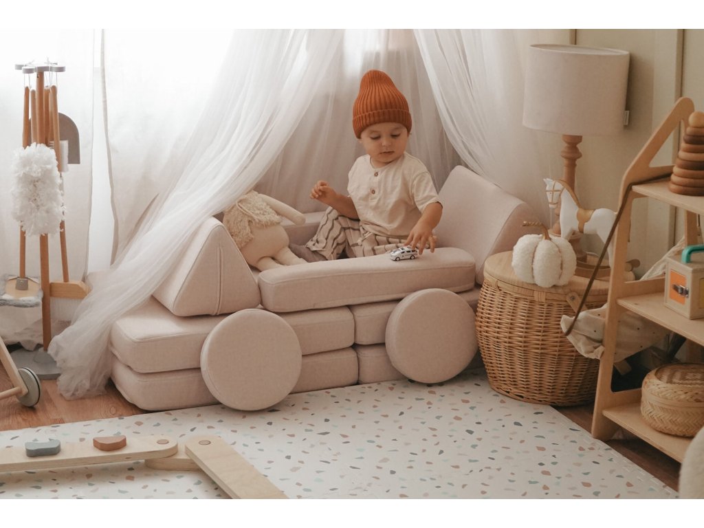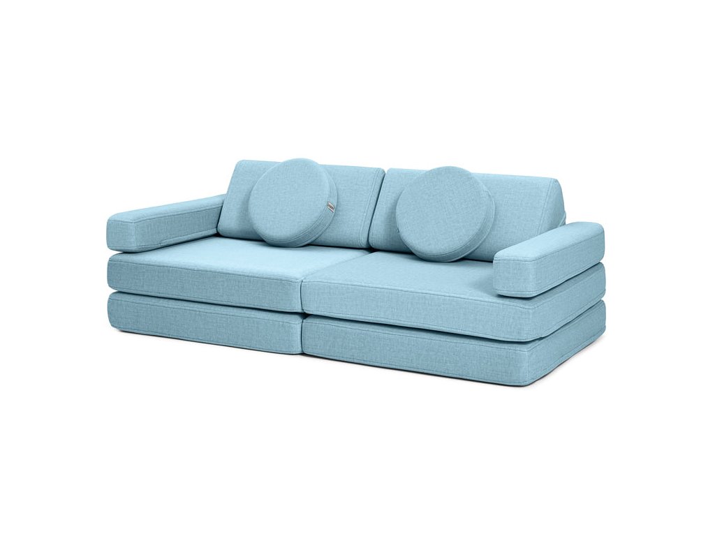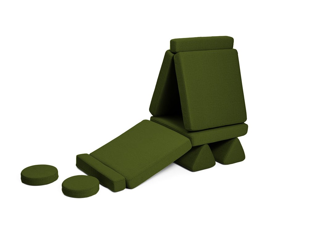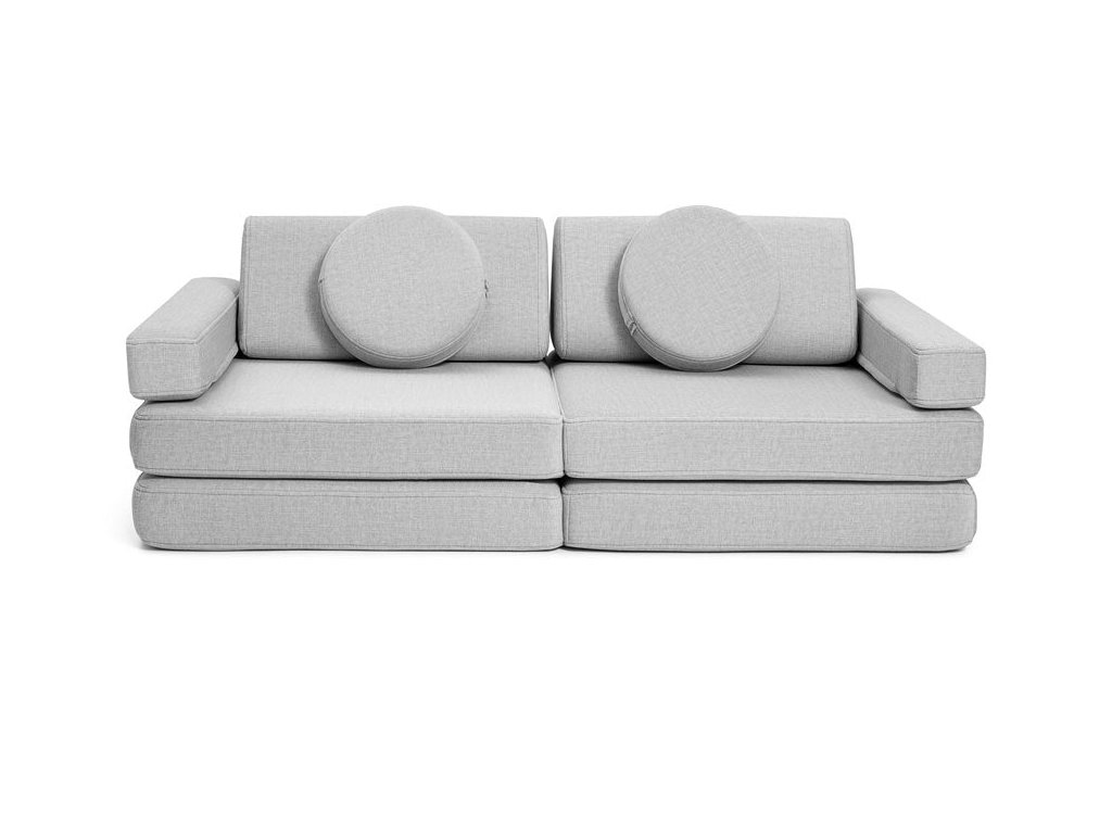 - Hrací pohovka Shappy Mini se skládá z osmi dílů – čtyř sedáků (sešitých po dvou k sobě), dvou trojúhelníků jako opěrek zad, dvou područek a dvou kulatých polštářků – které poskytují pohodlnou a podpůrnou konstrukci pro hraní vašeho dítěte.