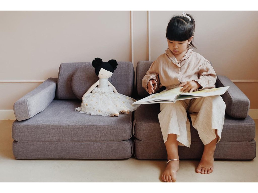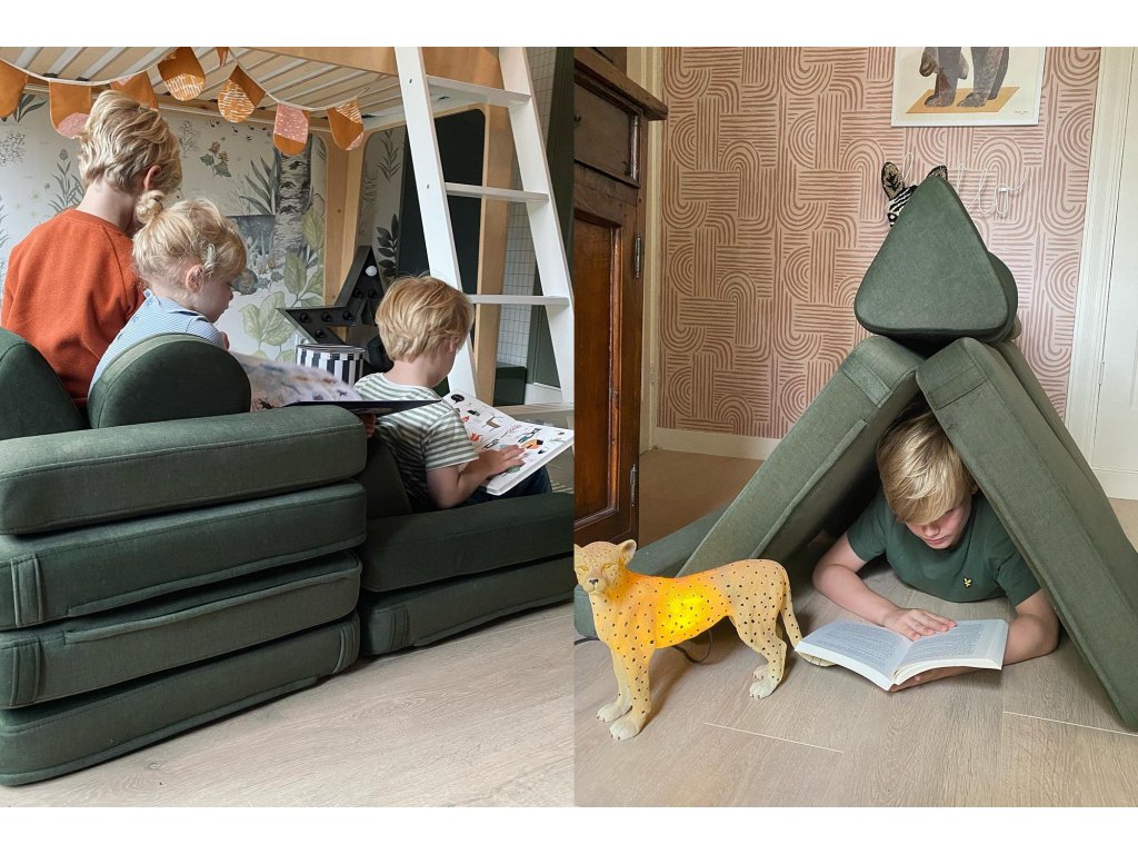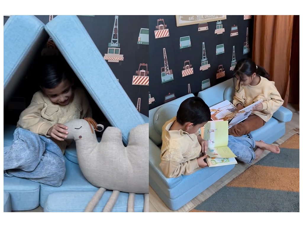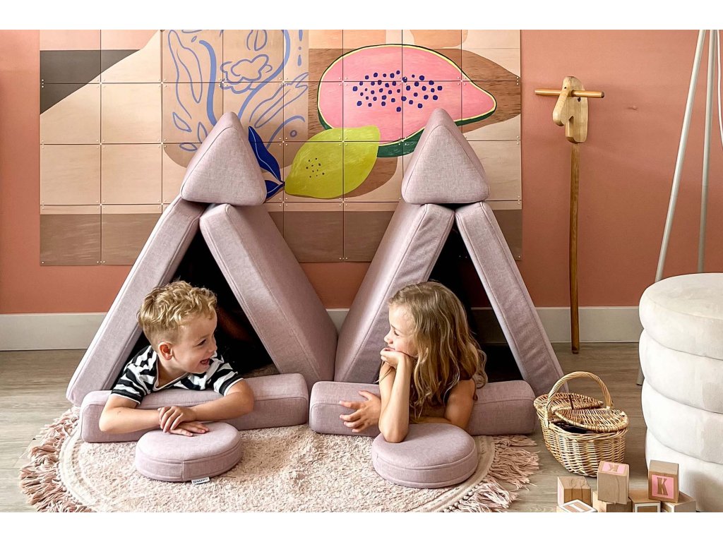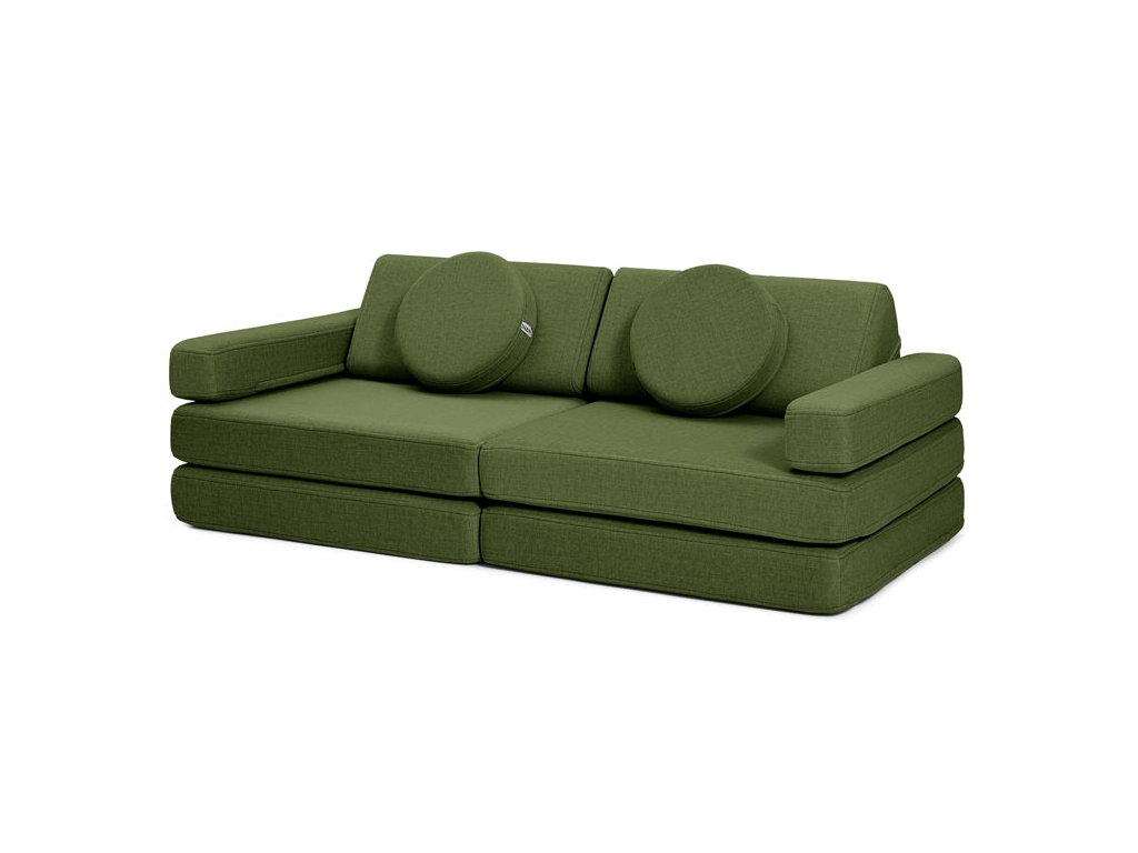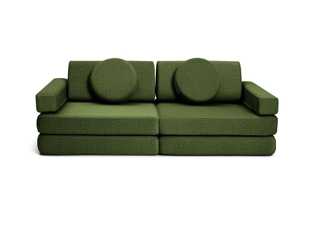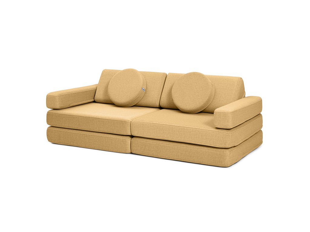 - Hrací pohovka Shappy Mini se skládá z osmi dílů – čtyř sedáků (sešitých po dvou k sobě), dvou trojúhelníků jako opěrek zad, dvou područek a dvou kulatých polštářků – které poskytují pohodlnou a podpůrnou konstrukci pro hraní vašeho dítěte.