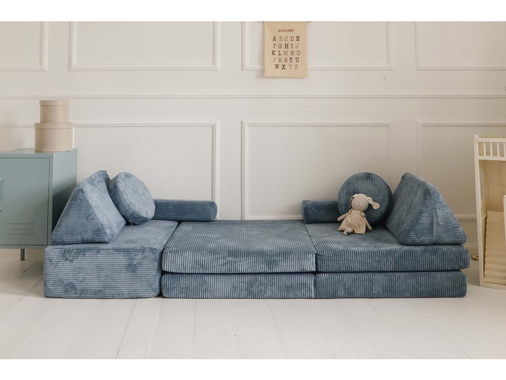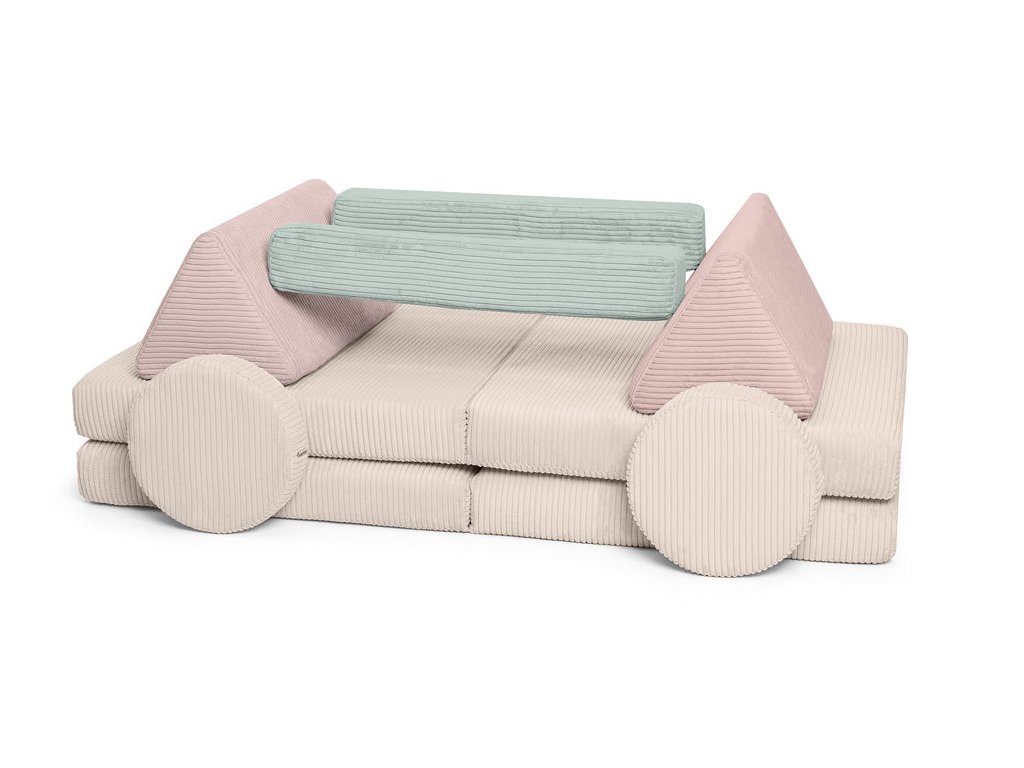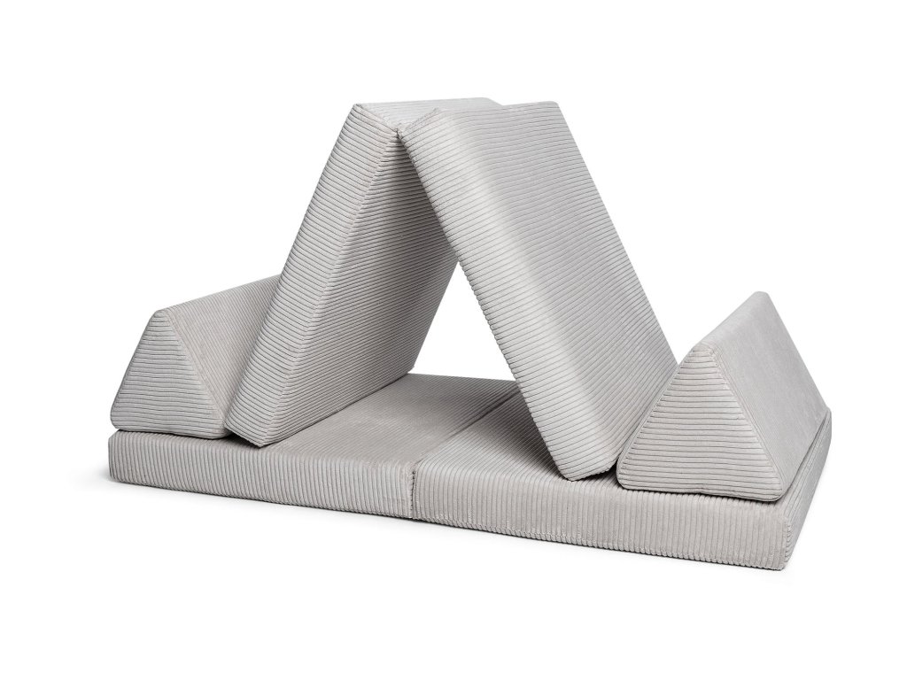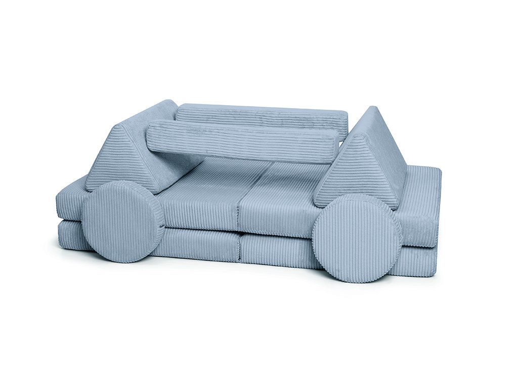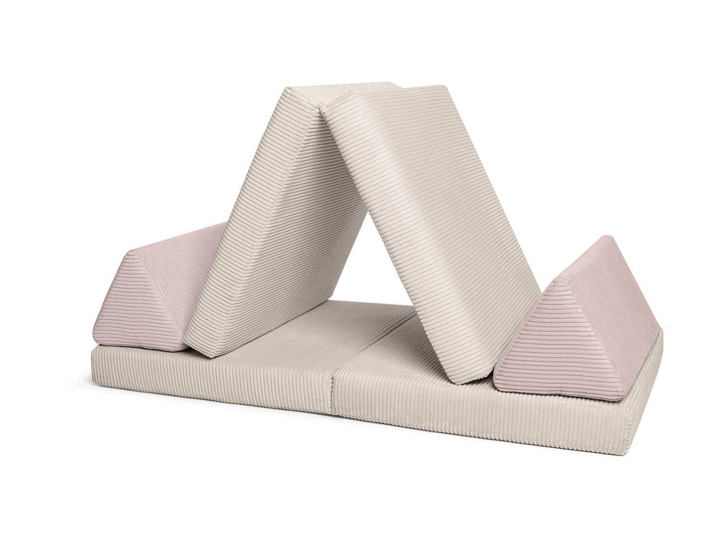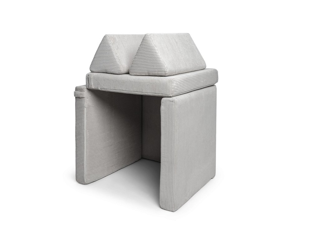 Hrací pohovka Shappy je modulární 10dílná sestava, která se z pohodlné pohovky promění v bunkry, skluzavky a útulné čtecí koutky – nebo dokonce v lůžko na přespání. Je navržena pro každodenní hraní i odpočinek, s pratelnými potahy a bezpečnými, odolnými materiály.