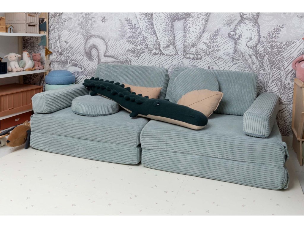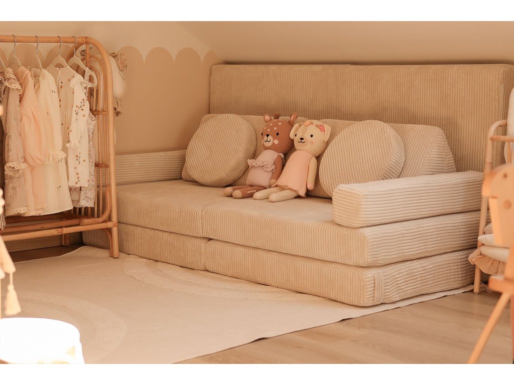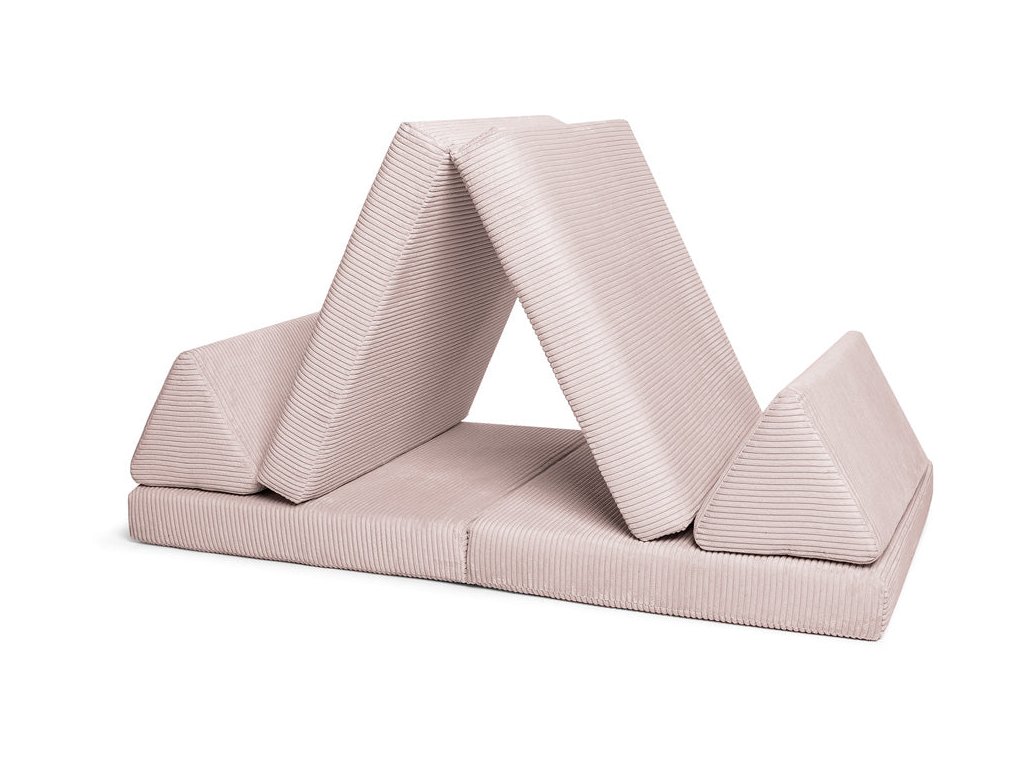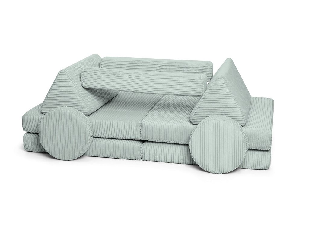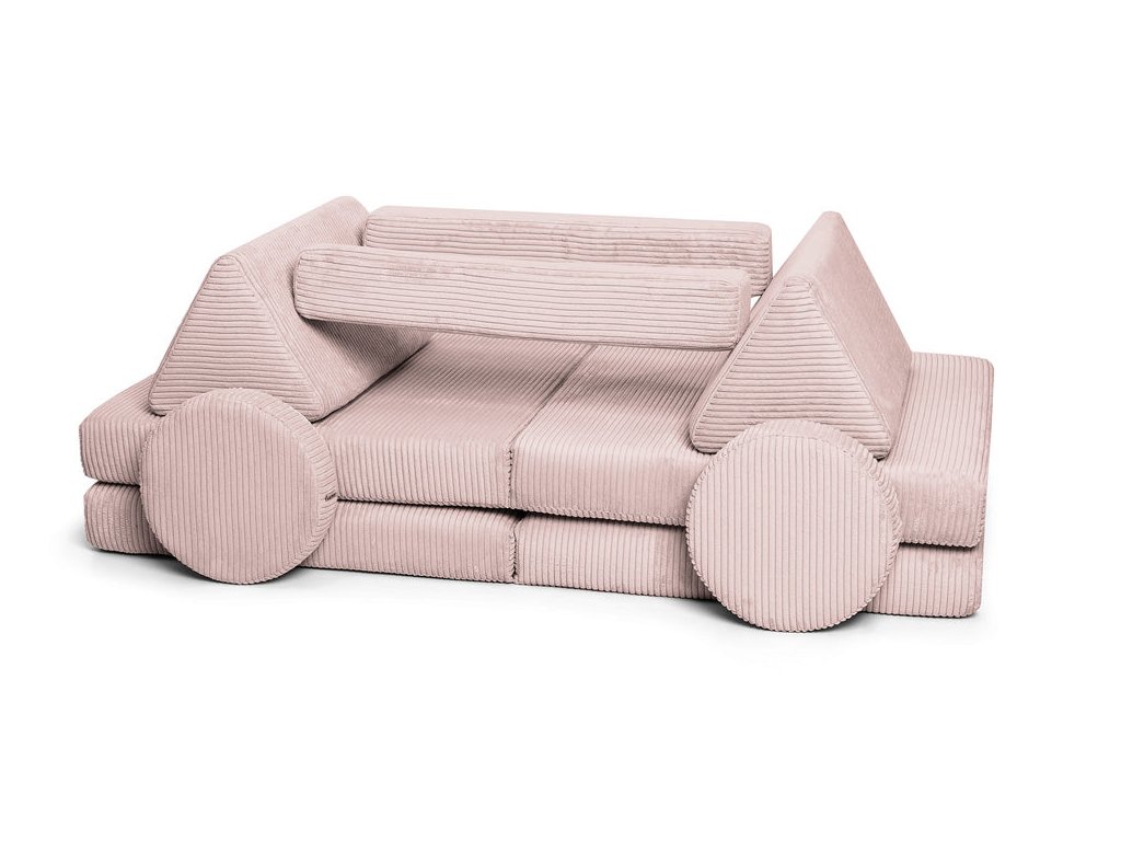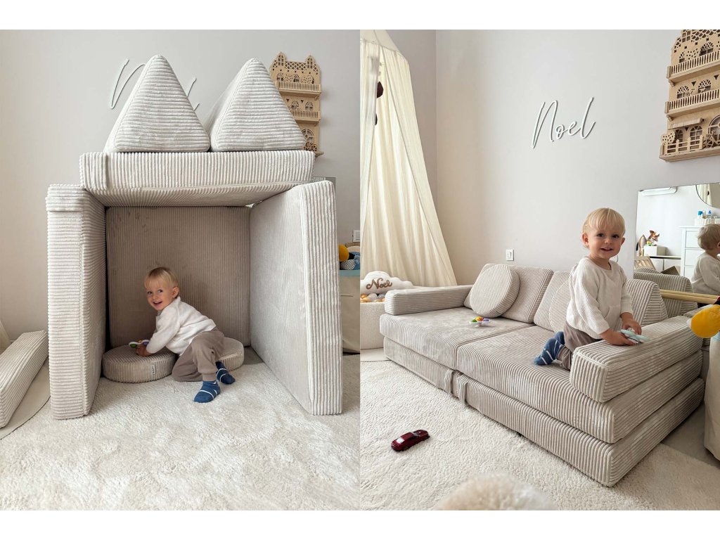 Hrací pohovka Shappy je modulární 10dílná sestava, která se z pohodlné pohovky promění v bunkry, skluzavky a útulné čtecí koutky – nebo dokonce v lůžko na přespání. Je navržena pro každodenní hraní i odpočinek, s pratelnými potahy a bezpečnými, odolnými materiály.