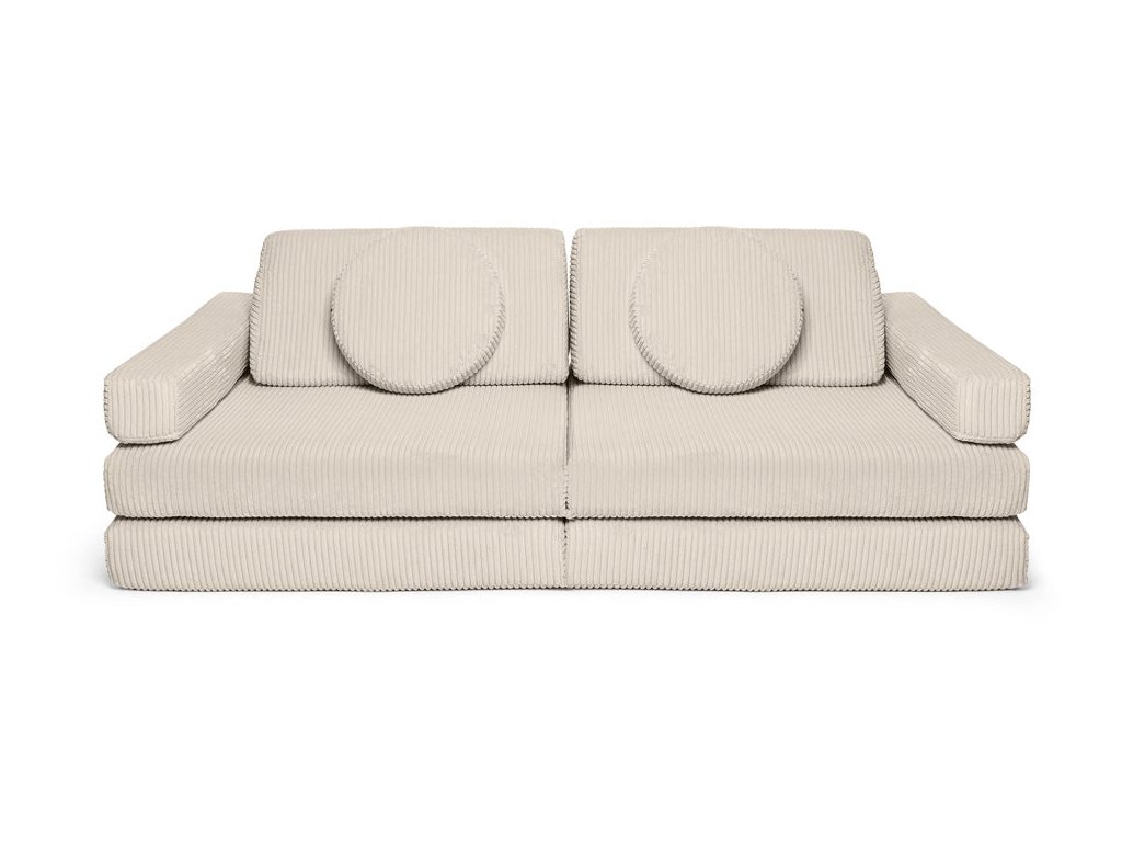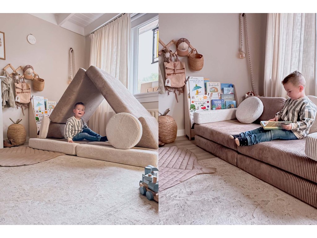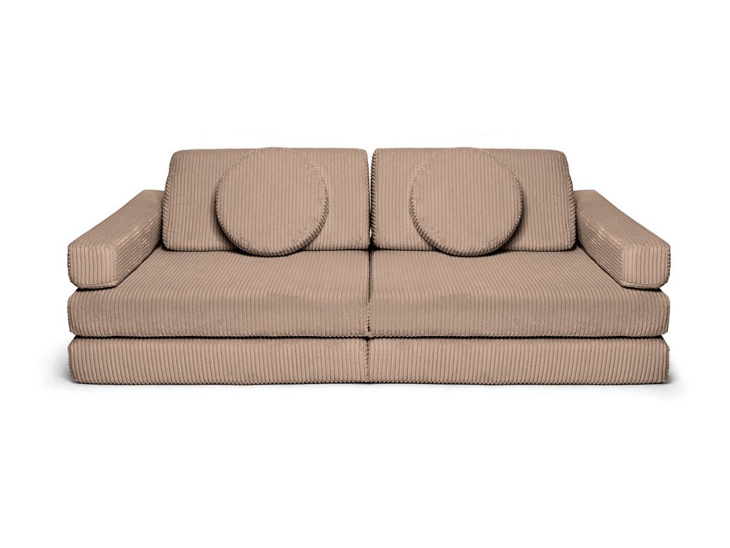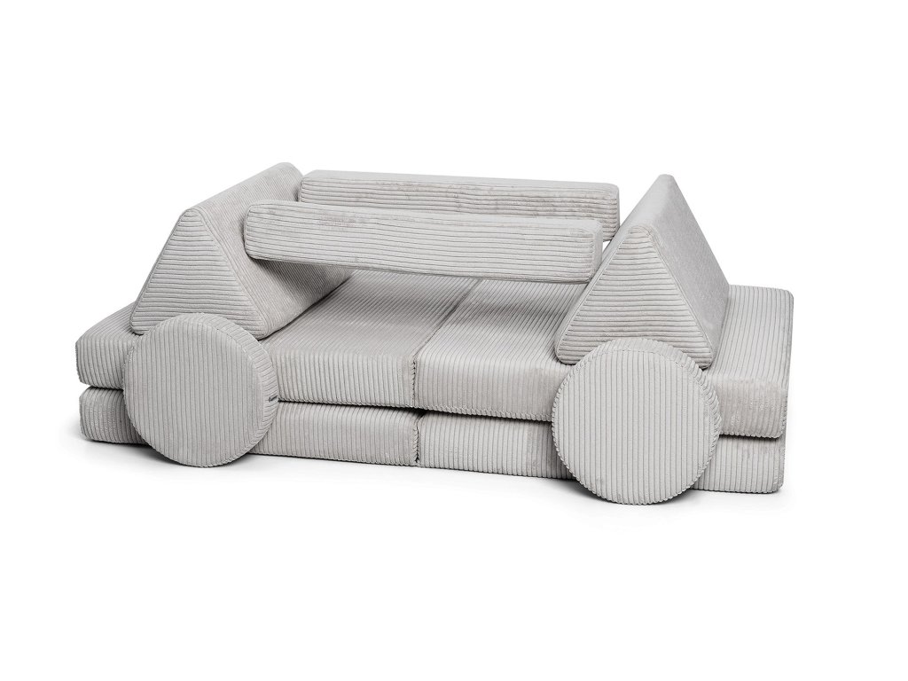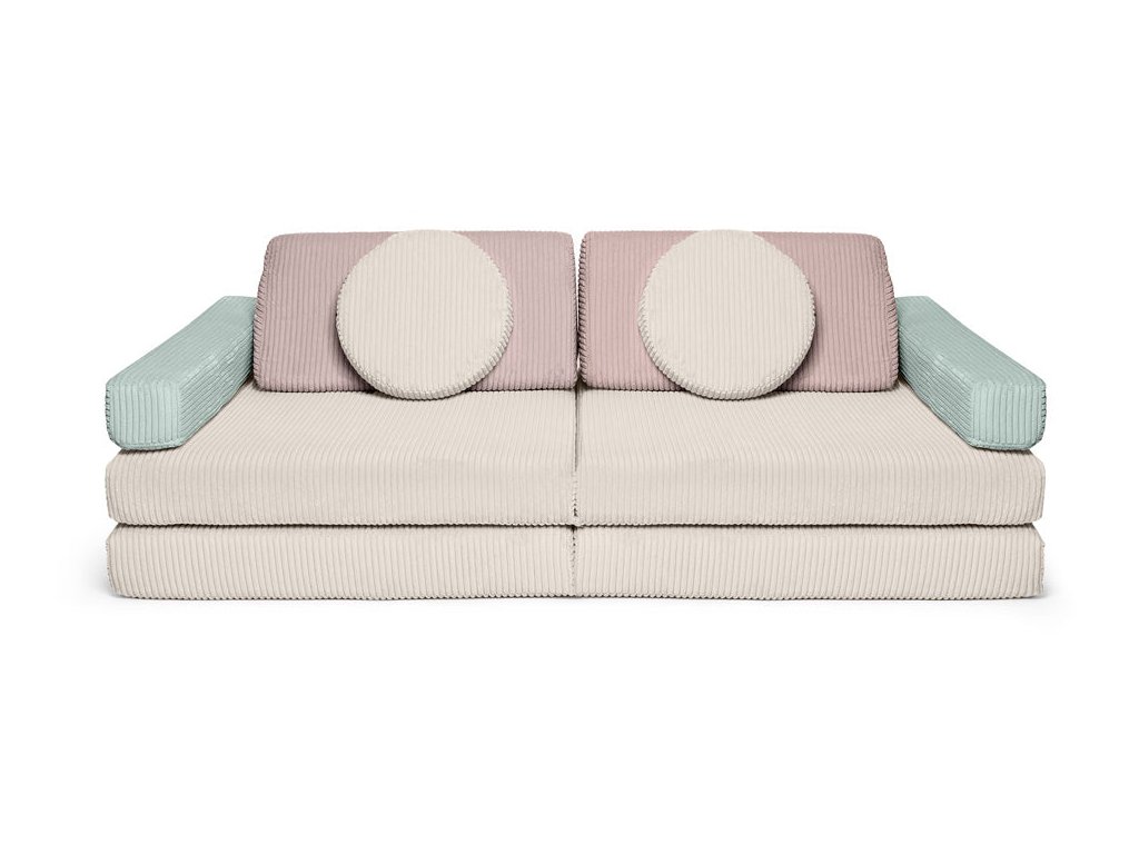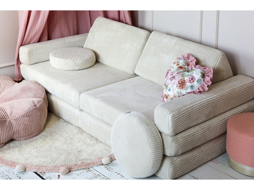 Hrací pohovka Shappy je modulární 10dílná sestava, která se z pohodlné pohovky promění v bunkry, skluzavky a útulné čtecí koutky – nebo dokonce v lůžko na přespání. Je navržena pro každodenní hraní i odpočinek, s pratelnými potahy a bezpečnými, odolnými materiály.