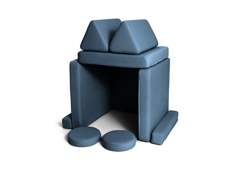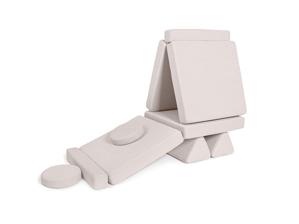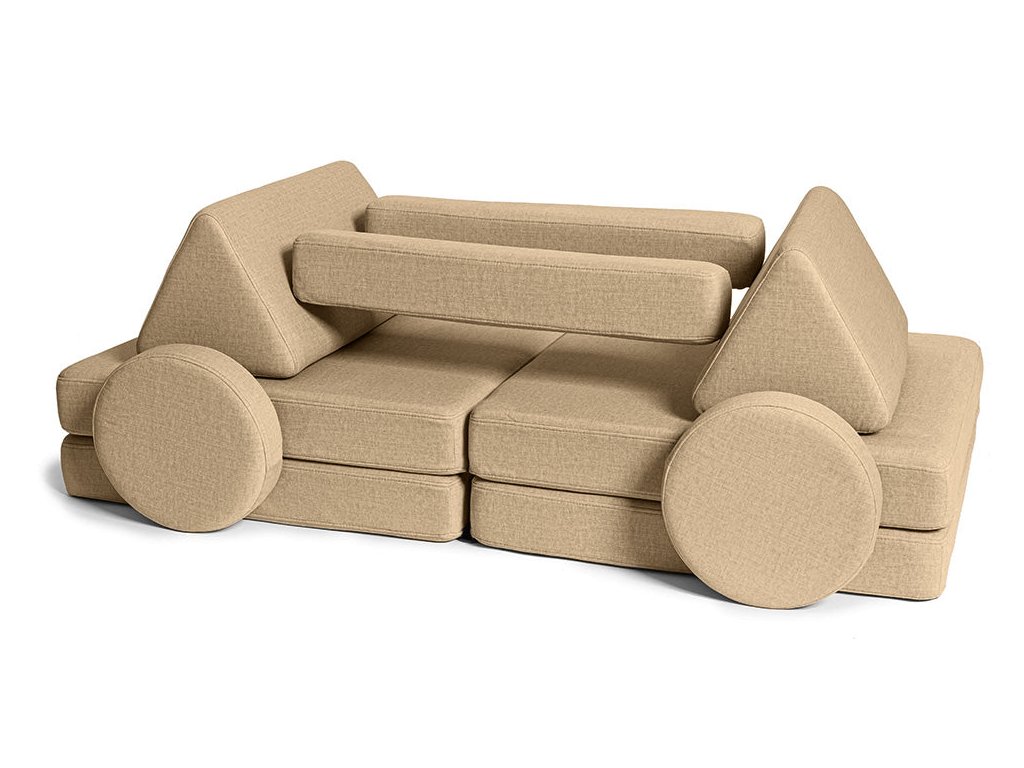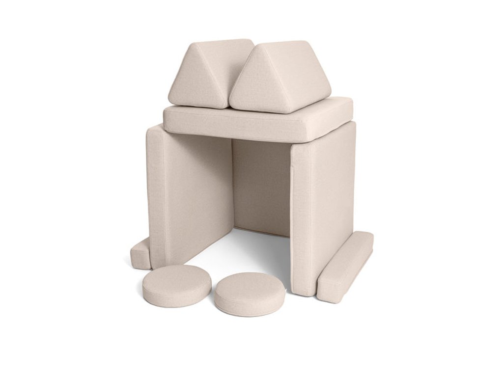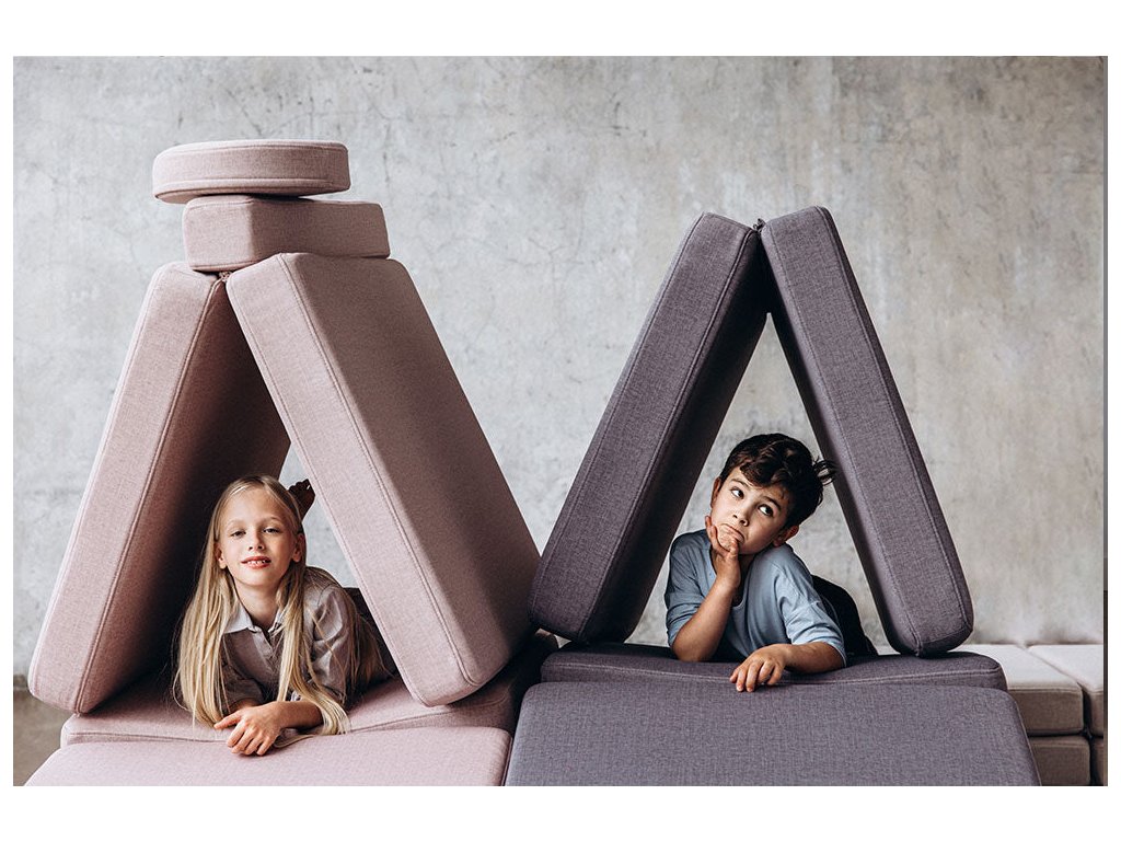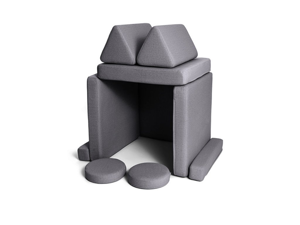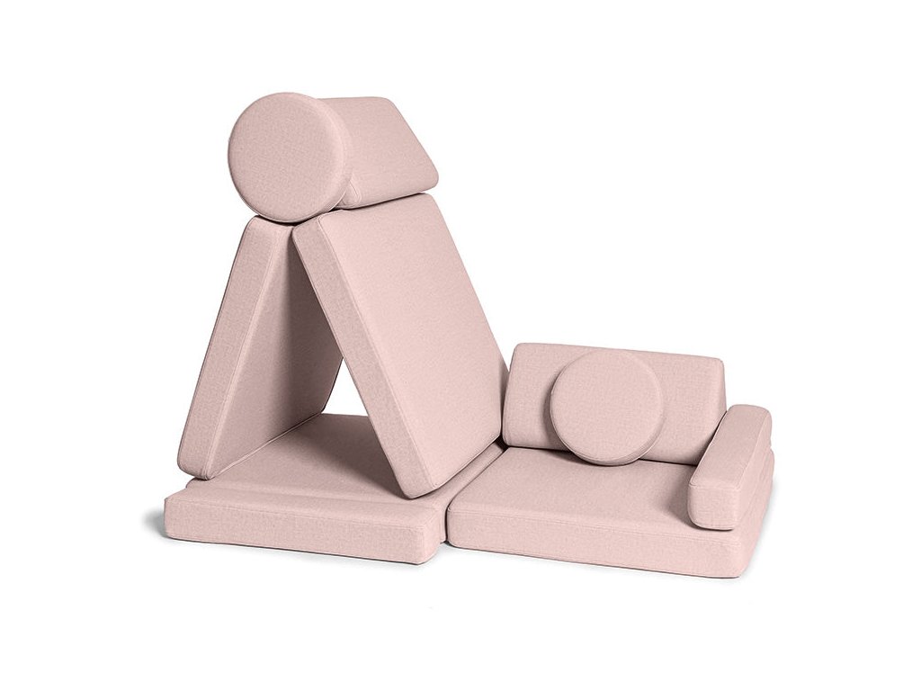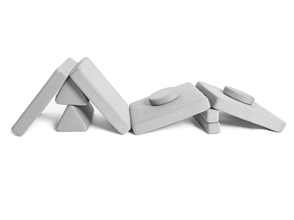 - Hrací pohovka Shappy se skládá z osmi dílů – čtyř sedáků (sešitých po dvou k sobě), dvou trojúhelníků jako opěrek zad, dvou područek a dvou kulatých polštářků – které poskytují pohodlnou a podpůrnou konstrukci pro hraní vašeho dítěte.