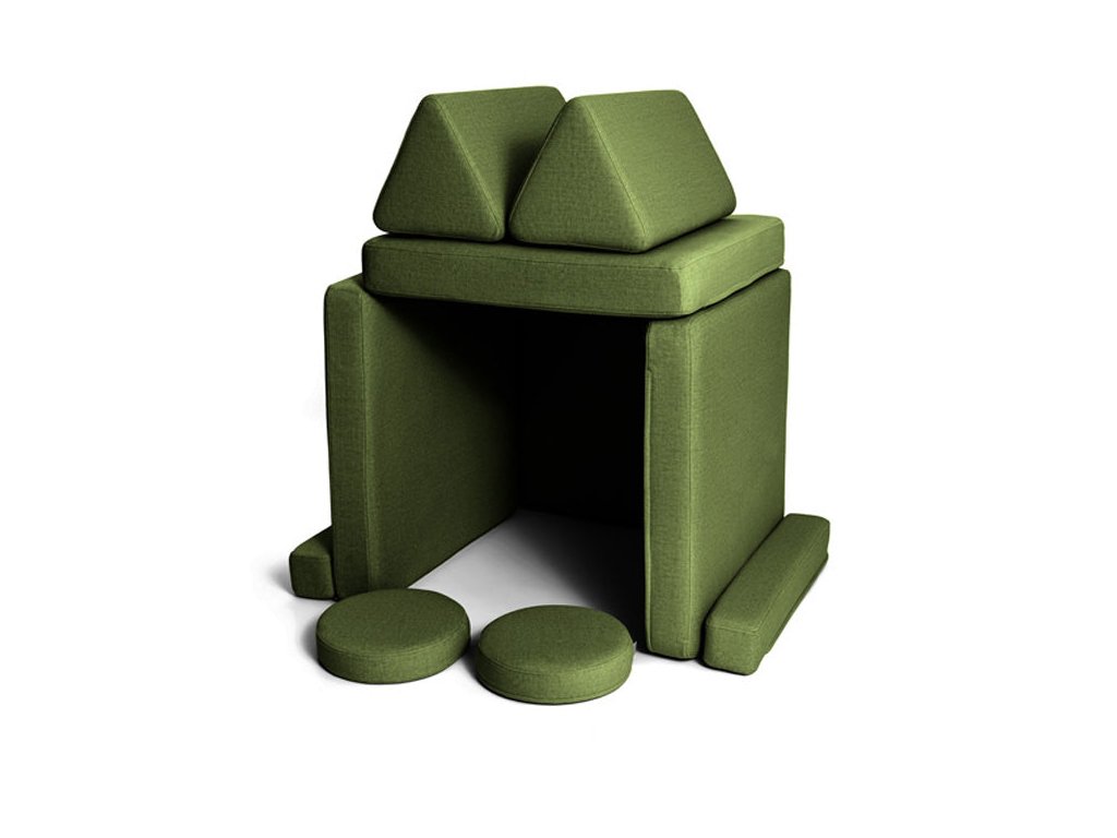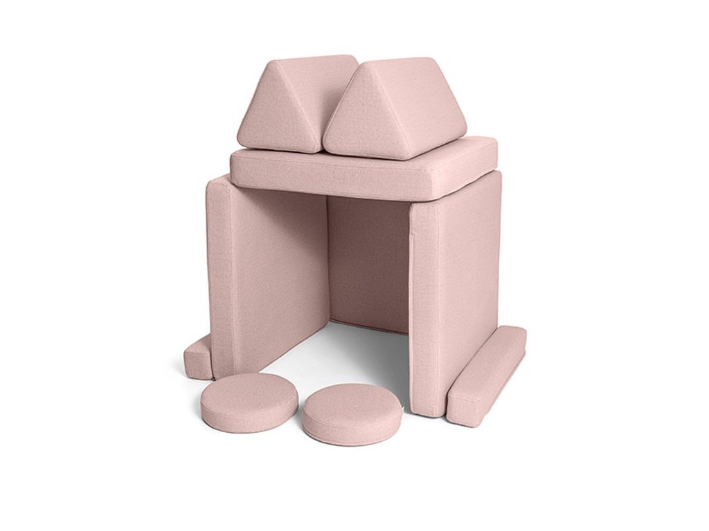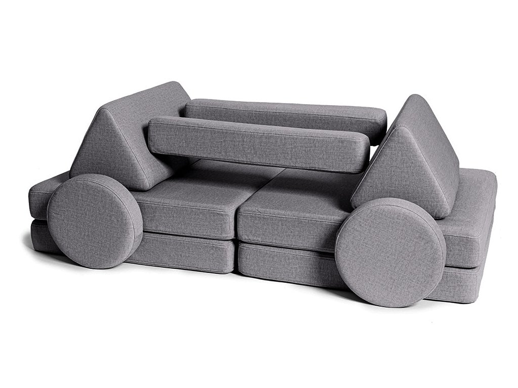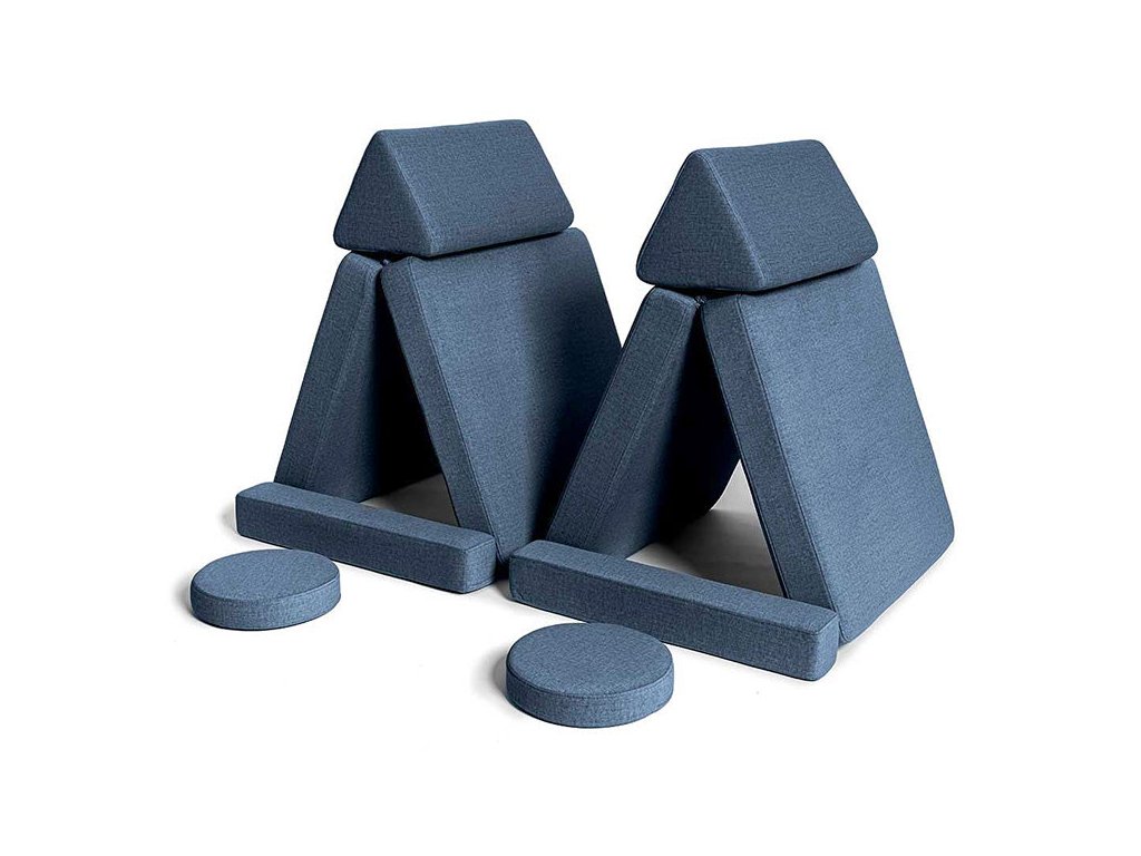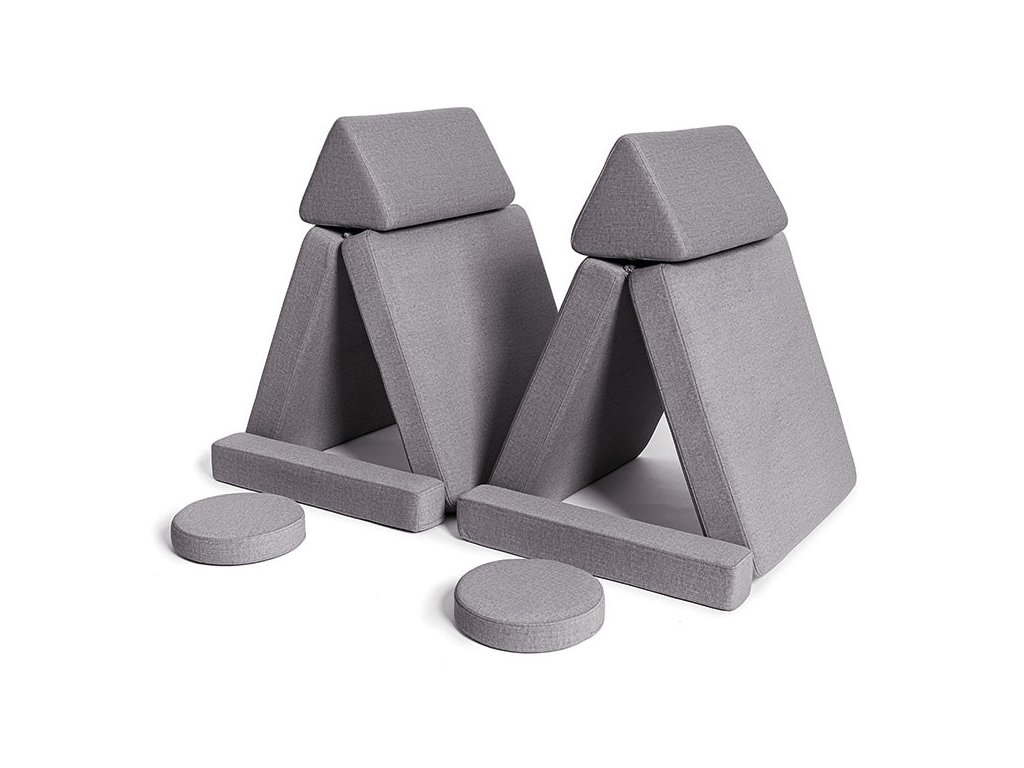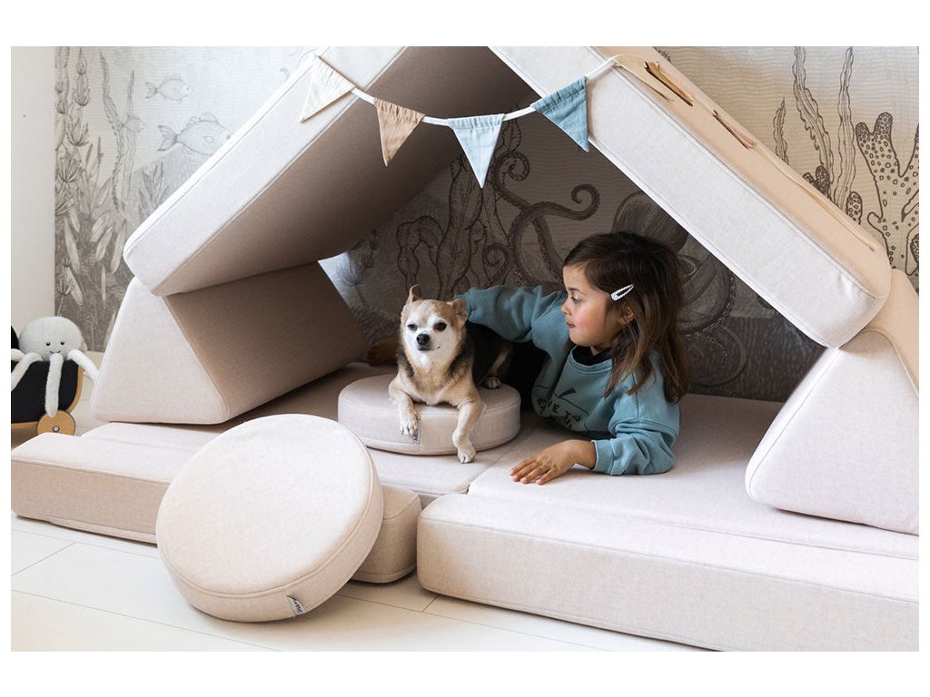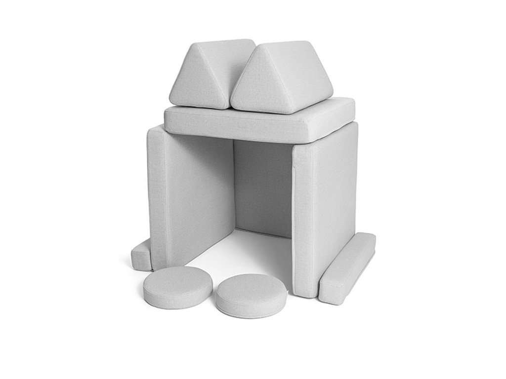 - Hrací pohovka Shappy se skládá z osmi dílů – čtyř sedáků (sešitých po dvou k sobě), dvou trojúhelníků jako opěrek zad, dvou područek a dvou kulatých polštářků – které poskytují pohodlnou a podpůrnou konstrukci pro hraní vašeho dítěte.