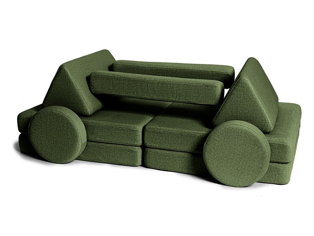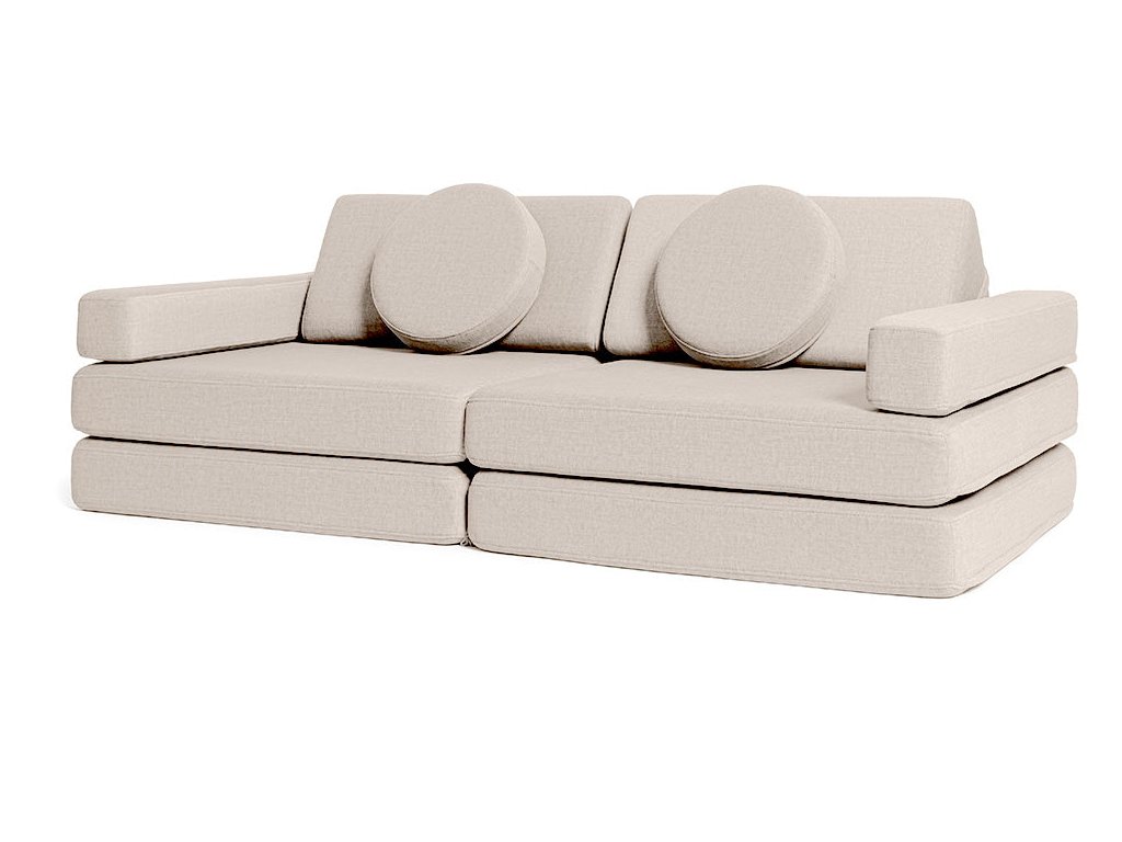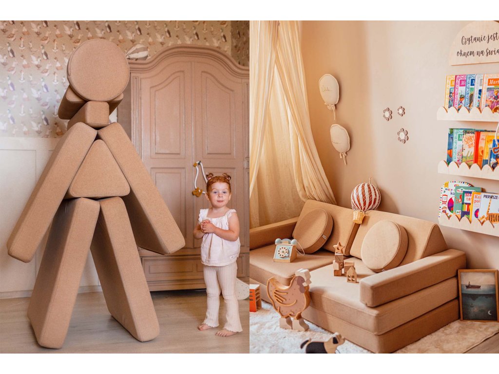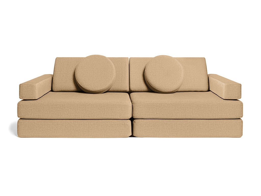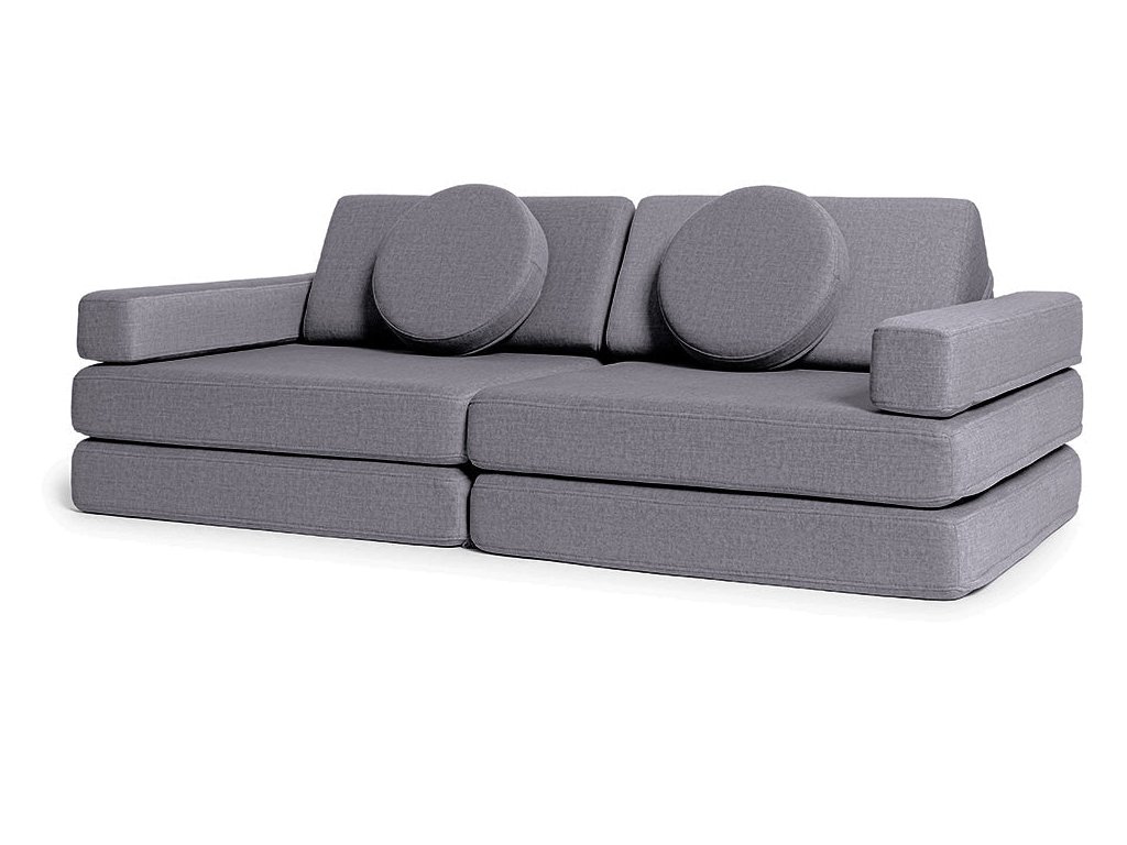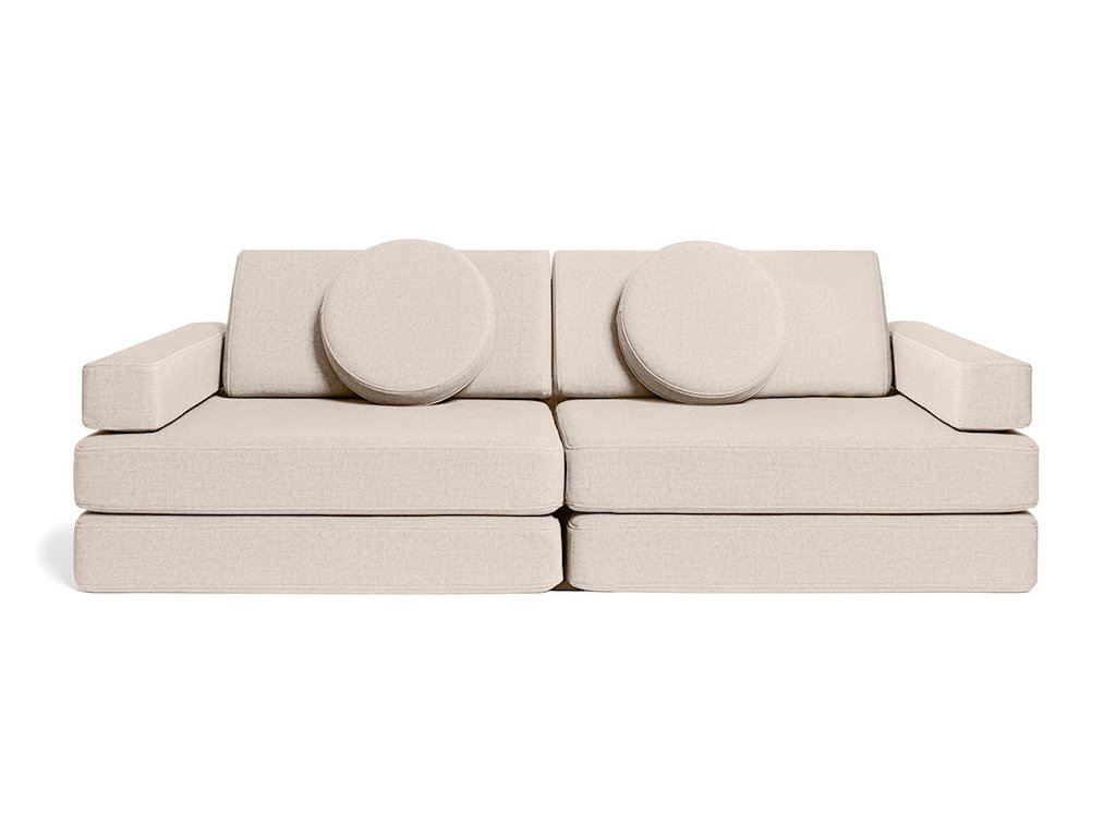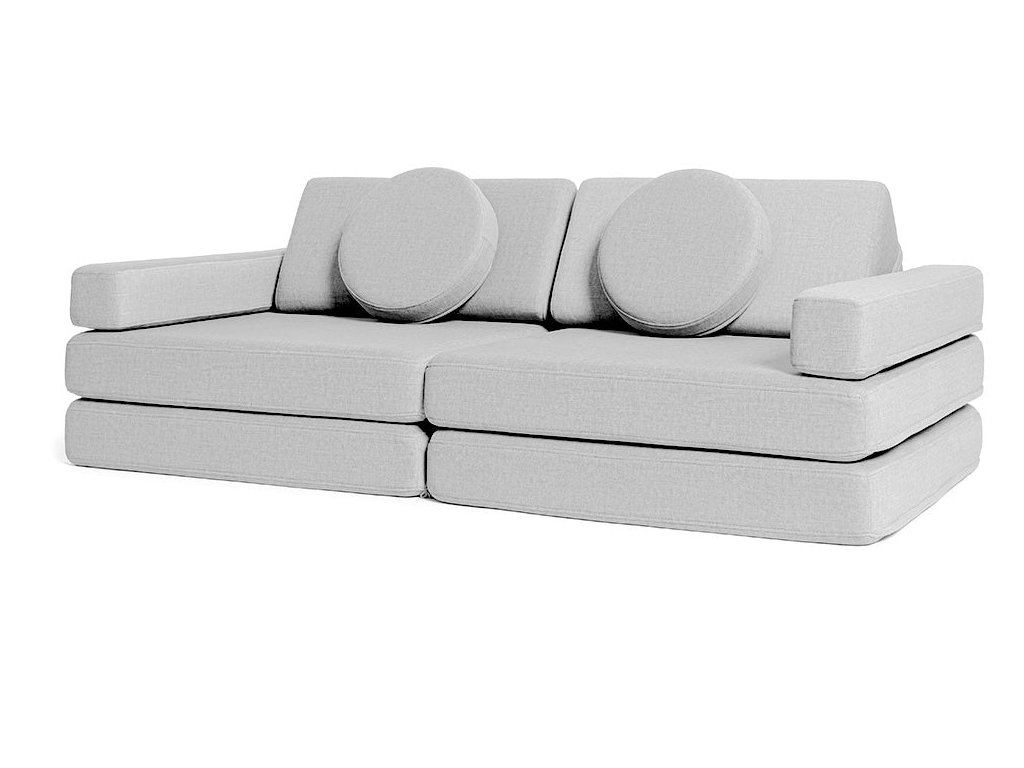 - Hrací pohovka Shappy se skládá z osmi dílů – čtyř sedáků (sešitých po dvou k sobě), dvou trojúhelníků jako opěrek zad, dvou područek a dvou kulatých polštářků – které poskytují pohodlnou a podpůrnou konstrukci pro hraní vašeho dítěte.