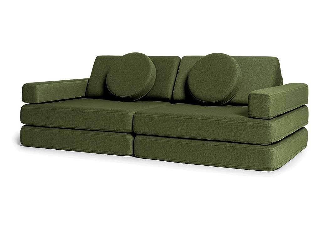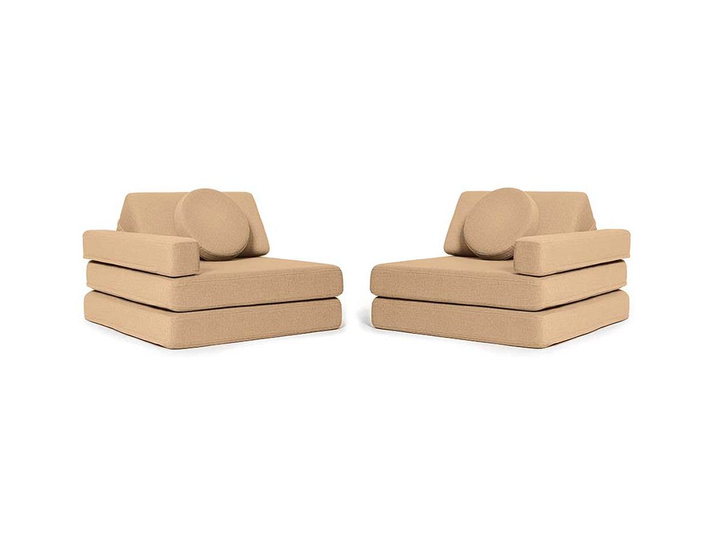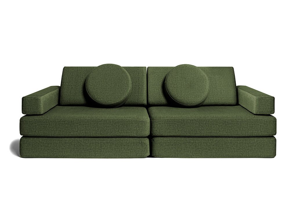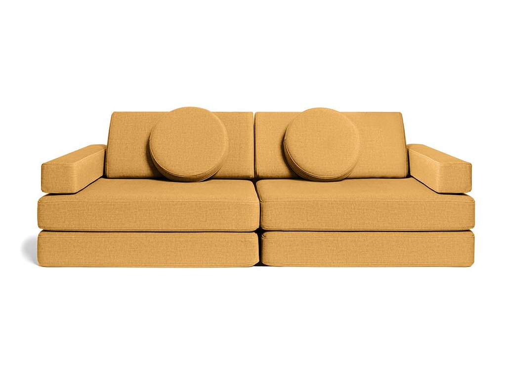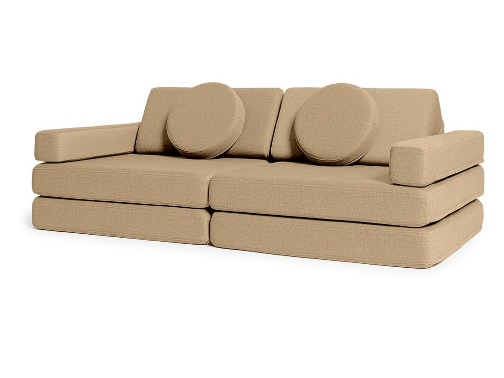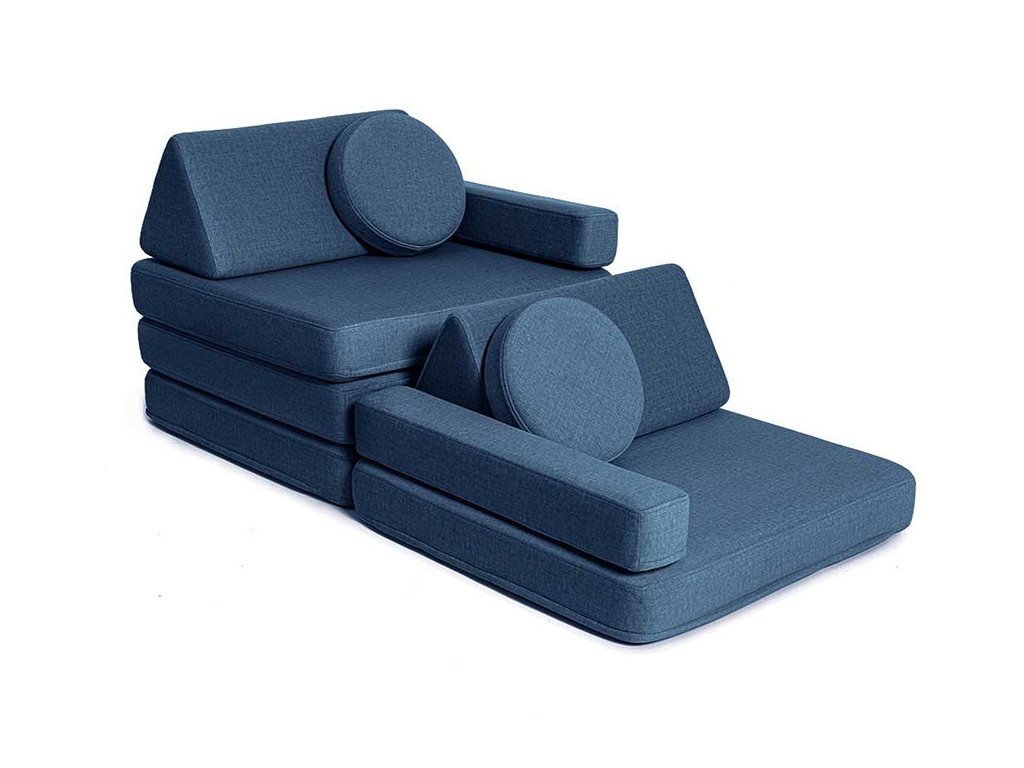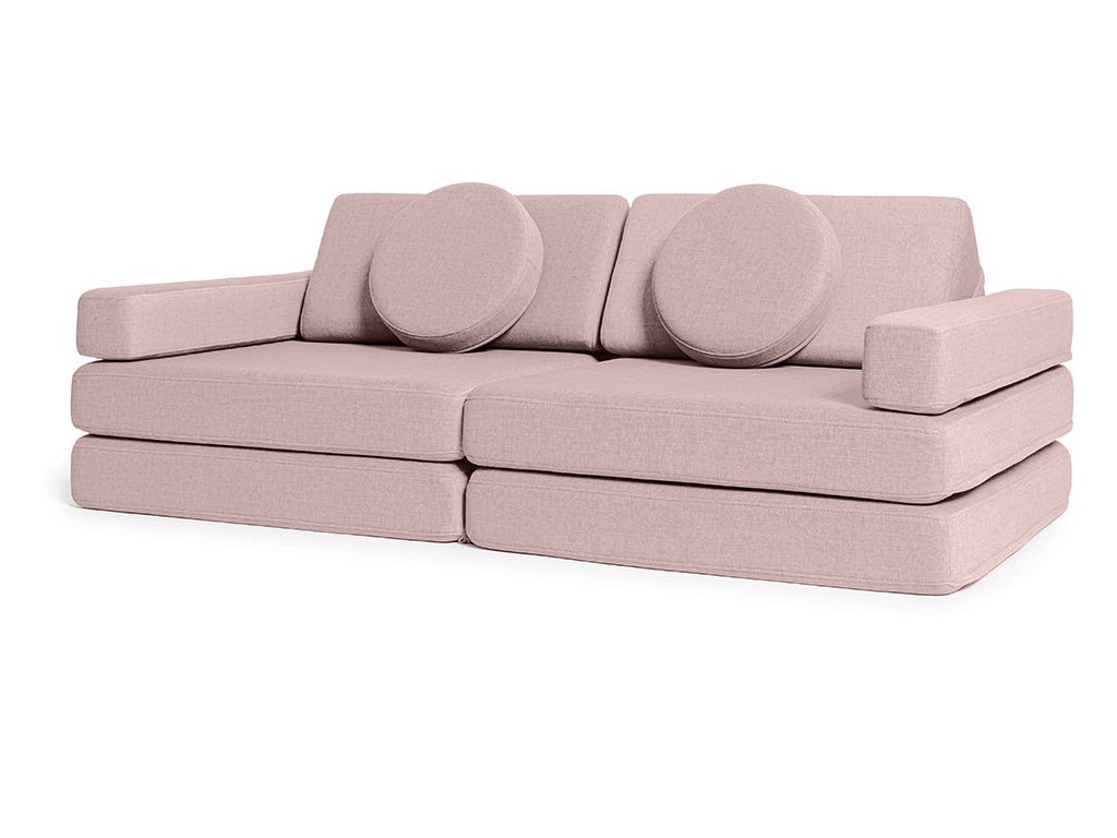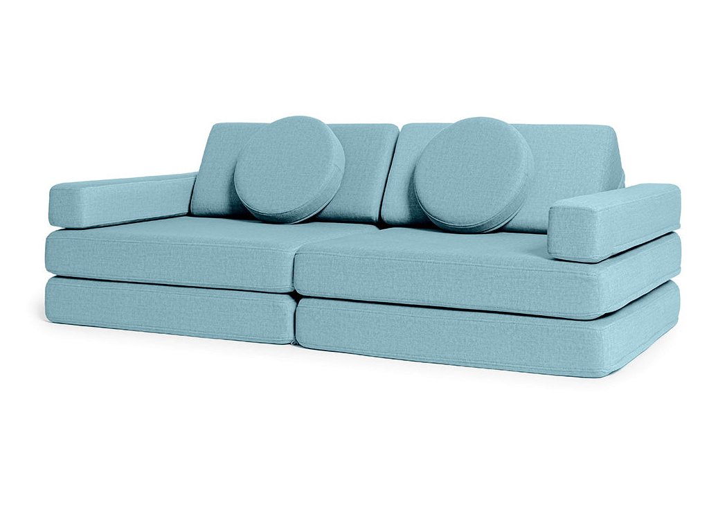 - Hrací pohovka Shappy se skládá z osmi dílů – čtyř sedáků (sešitých po dvou k sobě), dvou trojúhelníků jako opěrek zad, dvou područek a dvou kulatých polštářků – které poskytují pohodlnou a podpůrnou konstrukci pro hraní vašeho dítěte.