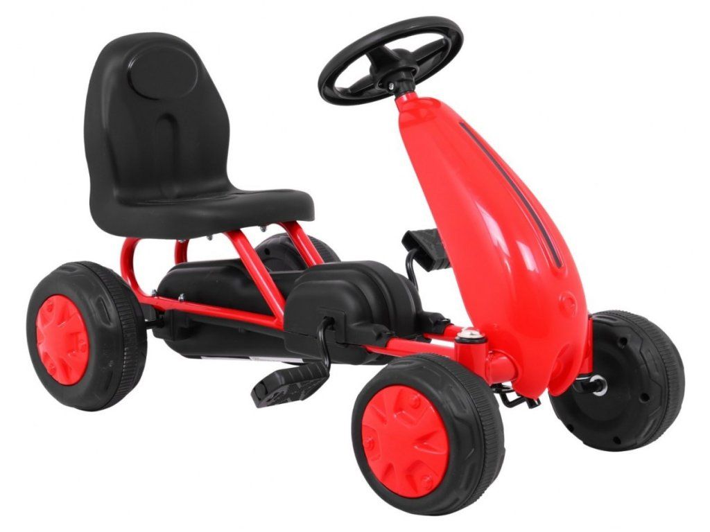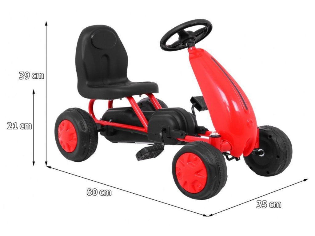Dětské šlapadlo v podobě motokáry je tím pravým společníkem pro rozvoj pohybu Vašeho dítěte. Díky kolům z tvrdého plastu dítě může jezdit i po terénech, které nejsou jen hladké a rovné. Šlapadlo má ergonomicky tvarované a pohodlné sedátko, takže dítě dokáže jezdit celý den v naprostém pohodlí. Šlapadlo dítě ovládá s pomocí sportovního volantu. Dětská motokára funguje na šlapací pohon. Je bezmotorová, tedy zcela nehlučná a nezatěžuje životní prostředí. Je to nová forma sportovní aktivity.