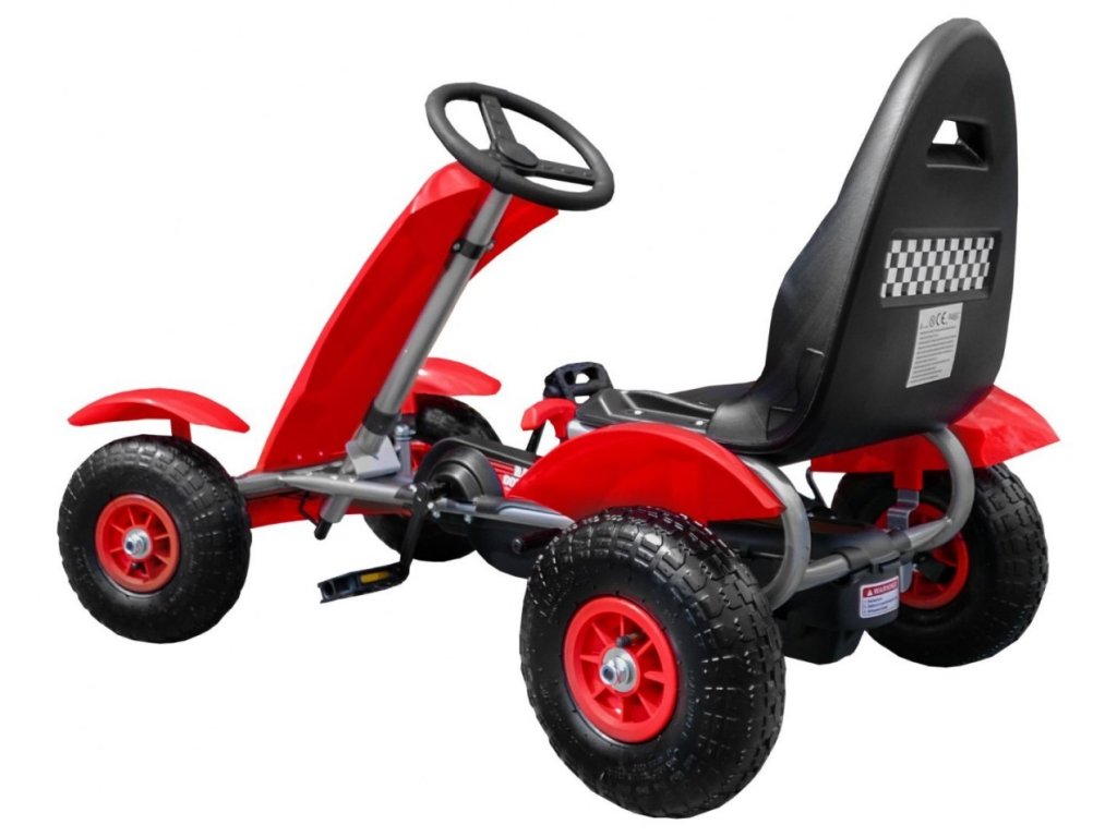 Bezpečná a pohodlná dětská motokára na, které Vaše dítě bude v průběhu jízdy praktikovat svůj pocit rovnováhy a celkovou motorickou koordinaci. Speciálně navržený rám a plošina činí toto vozidlo vhodné pro děti od 3 let. Díky jedinečnému designu a nejkvalitnějším materiálům přizpůsobeným věku jezdců si můžete být jisti bezpečností vašich dětí. Motokára má především nafukovací gumová kola, díky nimž zažijete komfortní jízdu. Motokára se řídí pomocí protiskluzových šlapek jako na kole ( pohon - řetěz ). Motokára má ruční brzdu na 2 kola. Výhoda také nastavitelnosti sedadlo s 3-úrovňovými polohy. Výrobek má evropský certifikát bezpečnosti CE.