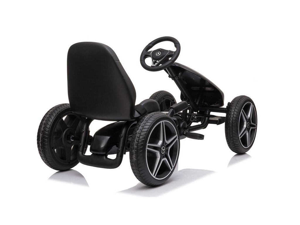 Dětská šlapací motokára Mercedes je velmi kvalitně zpracované dětské šlapadlo v moderním designu. Precizně zpracovaná kovová konstrukce v kombinaci s kvalitním plastem zaručují, že motokára není jednosezónní záležitostí. Pro bezpečí dítěte je součástí funkční ruční brzda a na zdraví dohlíží i vysoká opěrka ergonomicky tvarovaného sedadla. Sedadlo lze také nastavit podle pohodlí Vašeho dítěte. Šlapadlo umožnuje dítěti jízdu vpřed i vzad. Kola motokáry jsou z měkčeného gumového plastu, tím je zajištěna perfektní přilnavost k povrchu. Dětská šlapací motokára je výbornou formou pohybu pro děti. Díky lidskému pohonu je šetrná k životnímu prostředí a je nehlučná.