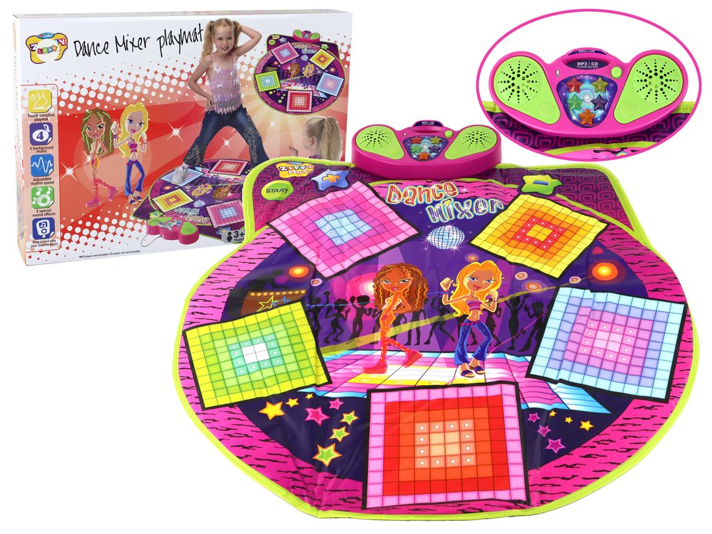 Podložka obsahuje 5 polí, na kterých mohou děti tančit, vytvářet vlastní choreografie nebo následovat pohybové vzory. Pro zahájení hry stačí vložit 4 1,5V baterie AA (baterie nejsou součástí balení). Po zapnutí podložky se rozezní veselá melodie, která povzbuzuje dítě k tanci.