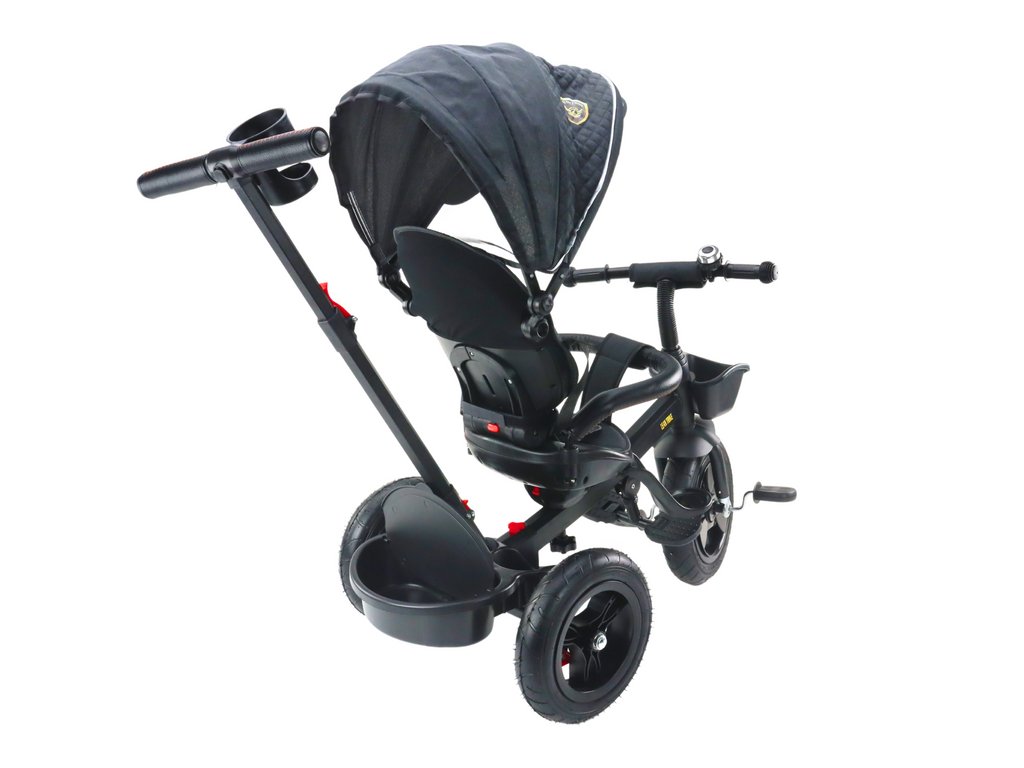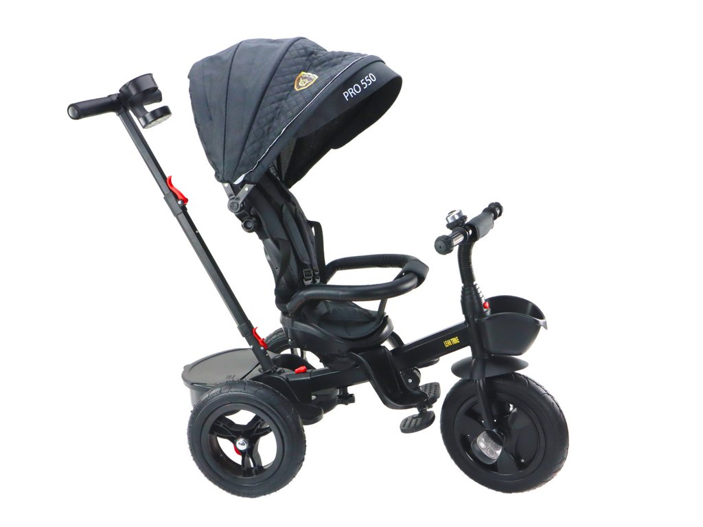 Robustní dětská tříkolka dokonale vyhoví potřebám každého batolete. S modelem PRO550 si vaše dítě zamiluje jízdu na kole a trávení volného času na čerstvém vzduchu, což bude mít pozitivní vliv na jeho vývoj a zdraví. Tříkolku lze různě upravovat, takže roste s vaším dítětem - bez nutnosti výměny výbavy za novou. S rostoucím věkem dítěte je možné odpojit tyč, a umožnit tak batoleti samostatnou jízdu. Kvalitní nafukovací kola zajišťují pohodlnou jízdu a pětibodové bezpečnostní pásy a zámek zadního kola zvyšují bezpečnost dítěte při používání kola.