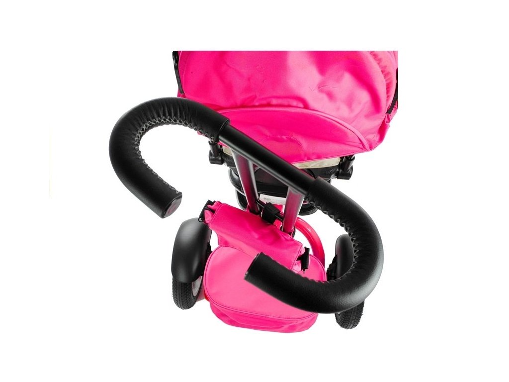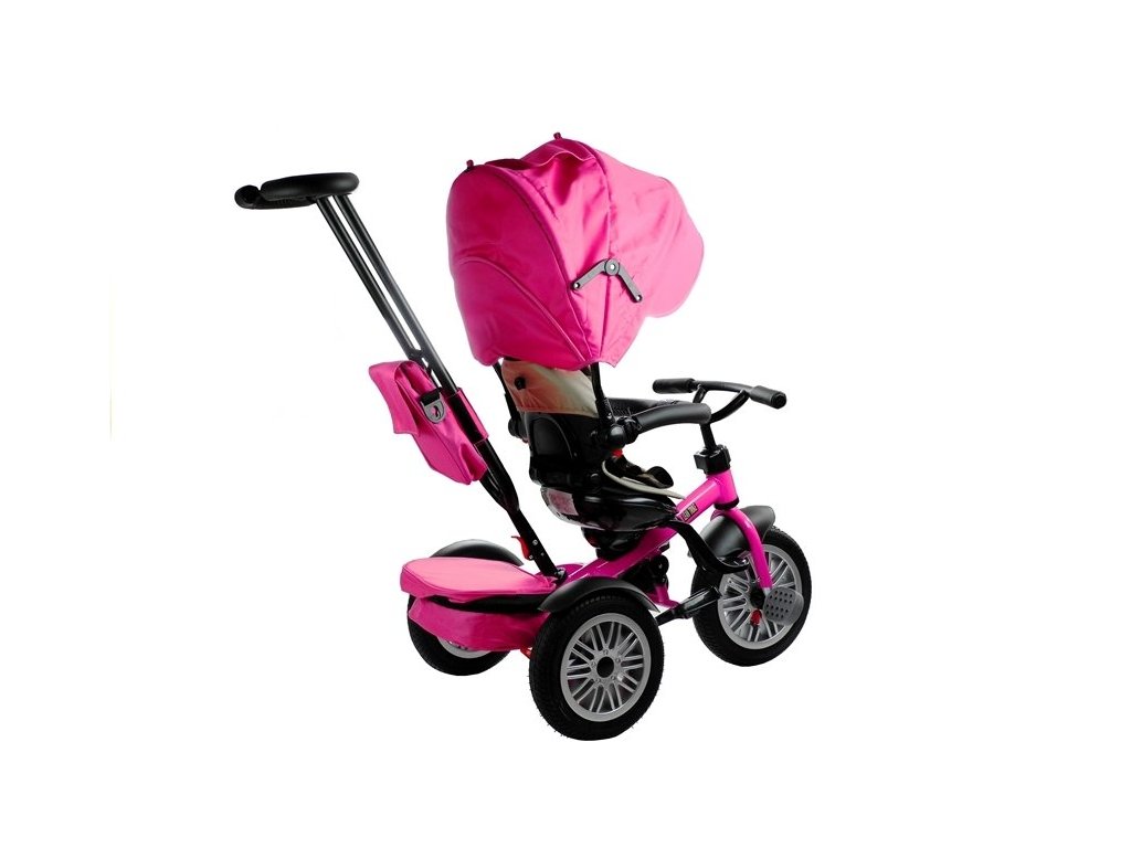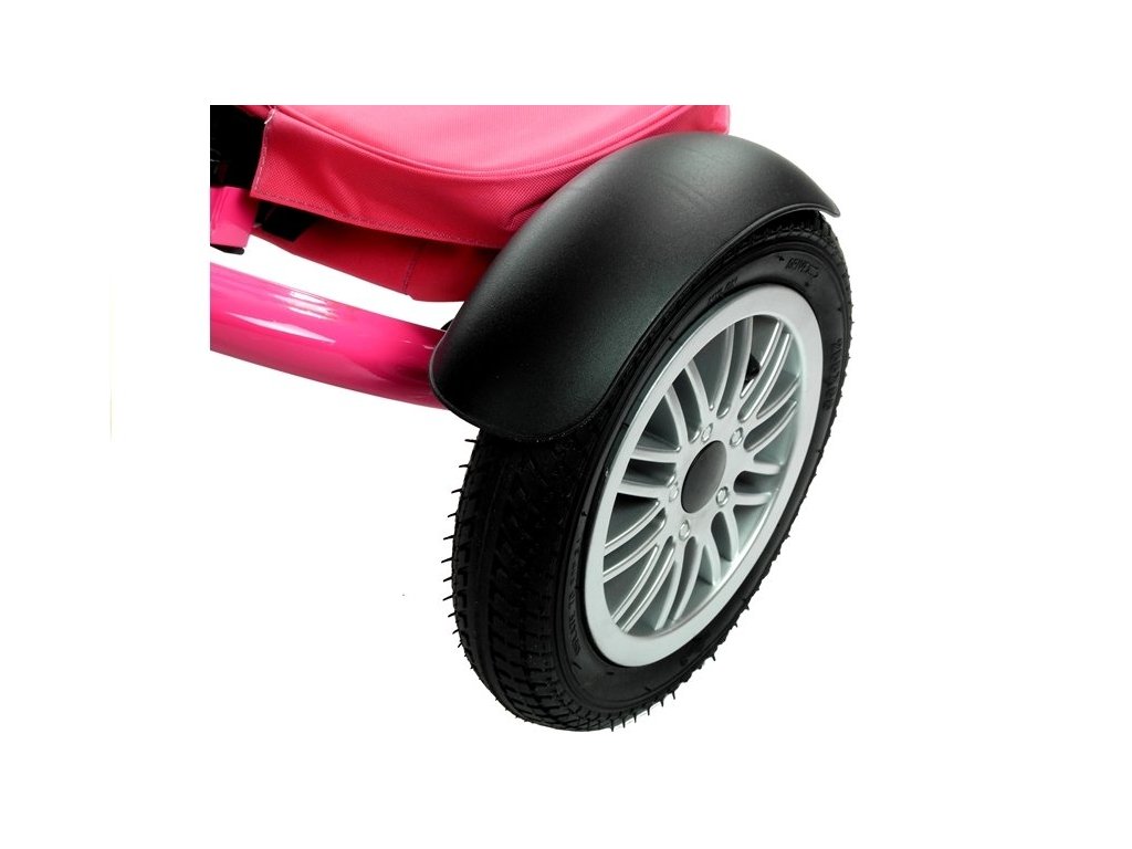 Dětská tříkolka je vybavena mimo jiné pedály, blatníky, dvojitými opěrkami nohou a pohodlným sedadlem se sklopnou střechou chránící před slunečními paprsky nebo větrem. Silná a pevná konstrukce tříkolky PRO800 je namontována na třech nafouknutých kolech, která zaručují pohodlnou a příjemnou jízdu - běhounu, který zaručuje vysokou trakci, která umožňuje volnou jízdu na různých typech povrchů. Konstrukce předloženého vozidla má nožní brzdy a spojku v předním kole.
