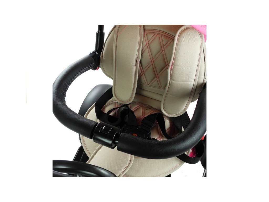 Pohodlnost malého cyklisty je zvýšena měkkým silným potahem sedadla, který je spojen s bezpečnostními pásy - jak ve formě ramenních popruhů, tak i bederním pásem, a mezi nohama. A co víc - opěrka hlavy je samostatným prvkem podpory, díky kterému můžete přizpůsobit její výšku výšce dítěte, zatímco stisknutím tlačítka můžete otočit sedadlo tak, aby batole sedělo s obličejem otočeným k vám. V reakci na potřeby rodičů konstruktéři PRO800 umístili v zadní části vozidla tyč s držadly potaženou příjemně na dotek ekologickou kůží, jakož i , do kterého lze umístit nejdůležitější věci.