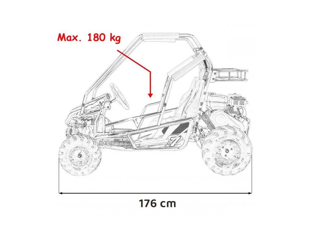 - Rozměry vozítka: 176 x 117 x 122 cm (d x š x v)
