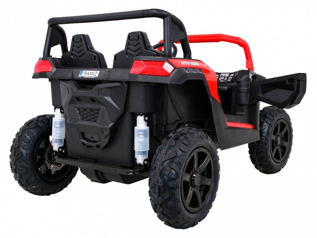 Dětské elektrické autíčko Buggy UTV Strong má výkonný elektrický motor 180W a nafukovací gumová kola. Díky nosnosti do 100 kg a širokému sedadlu se do autíčka pohodlně posadí dvě děti.