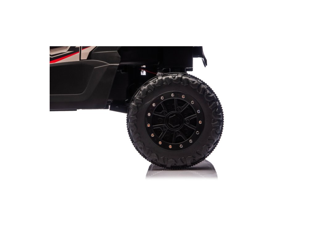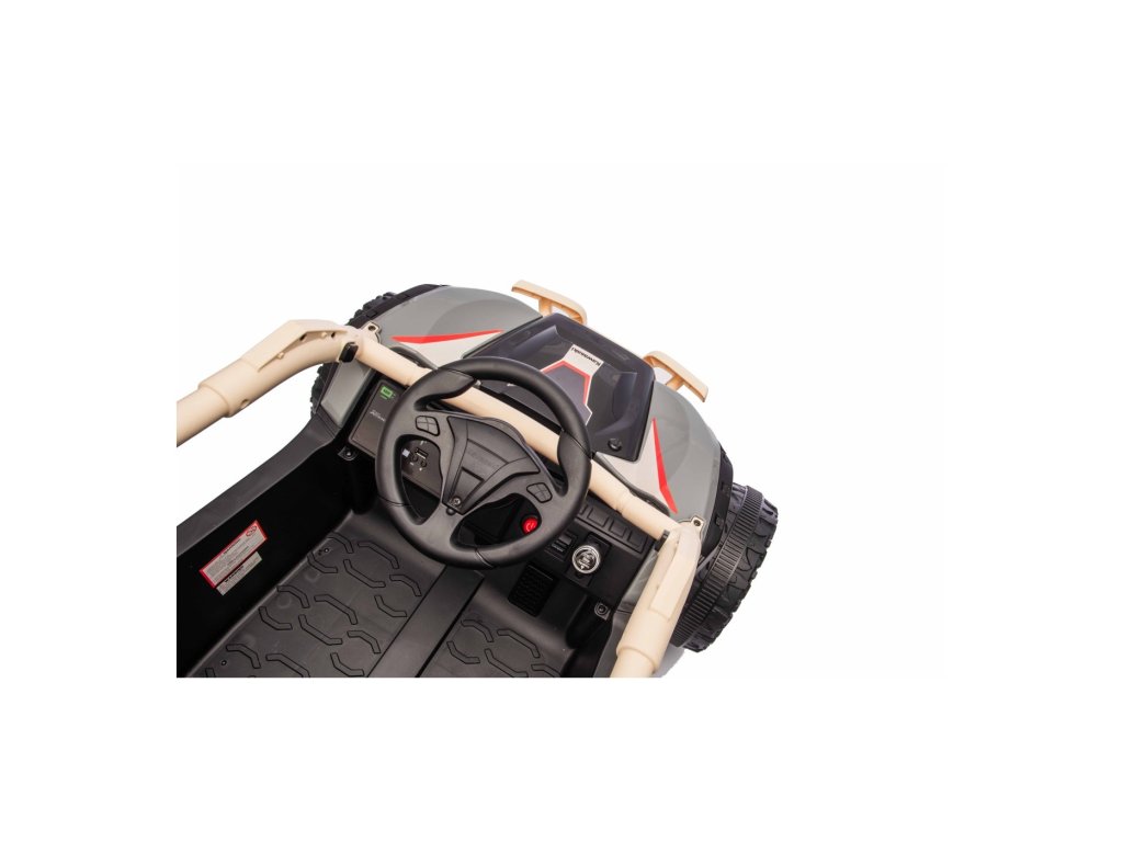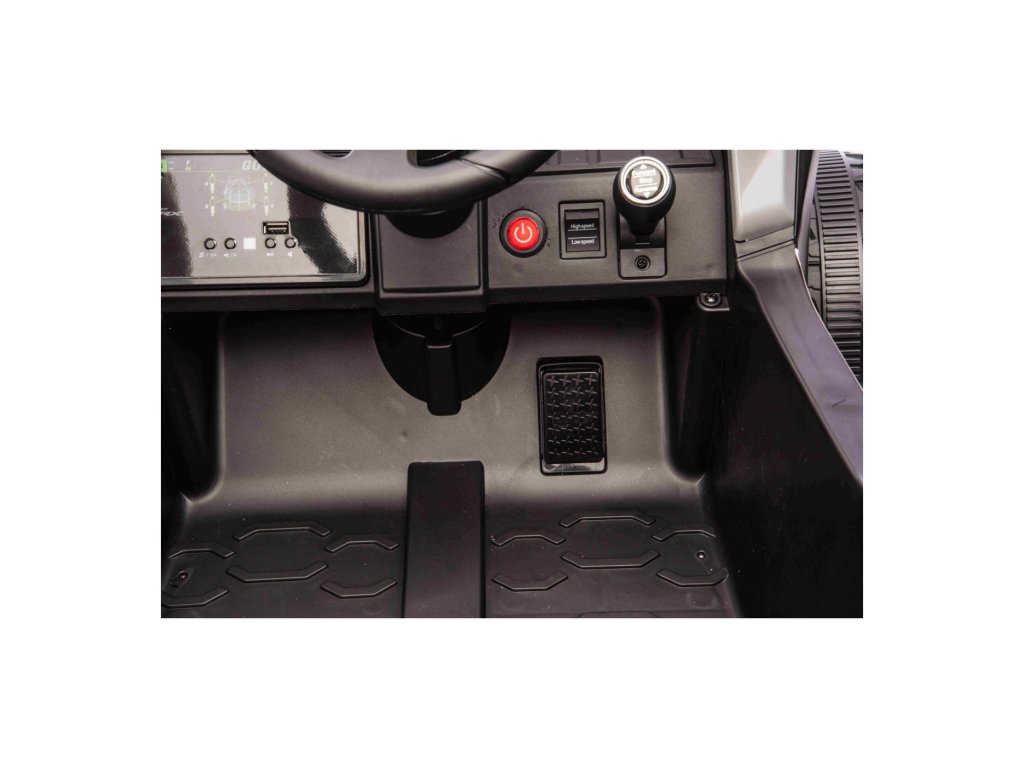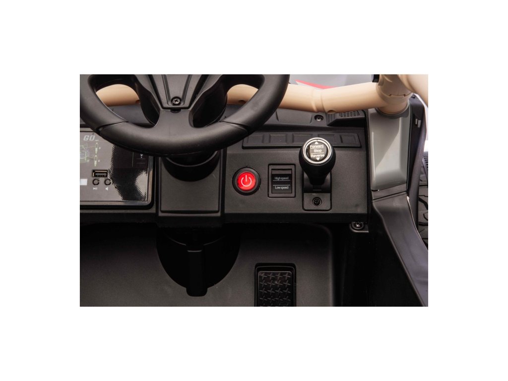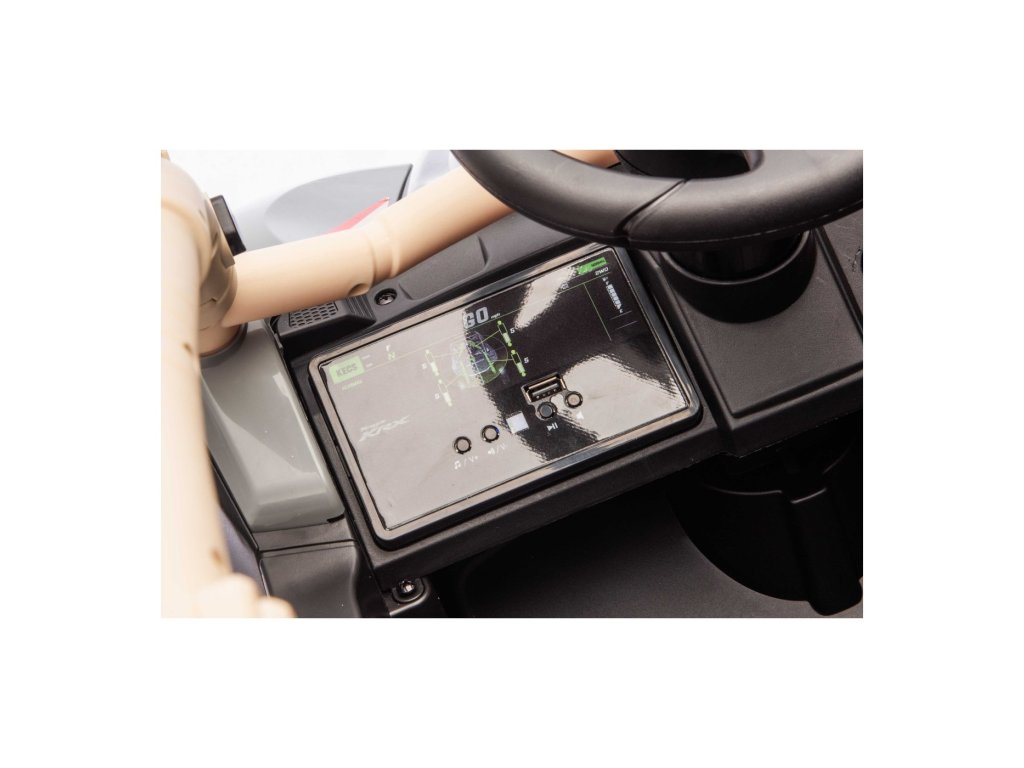 Stylové dětské vozítko Buggy Kawasaki TERYX KRX1000 je ideální volbou pro malé řidiče, kteří milují jízdu v terénu i na hladkém povrchu. Výkonný 24V systém se čtyřmi motory (2× 20W vpředu, 2× 45W vzadu) zajistí dostatek síly i pro nerovný terén. Vozítko je vybaveno měkkými EVA koly, pohodlným koženým sedadlem a bezpečnostními pásy. Díky dálkovému ovládání s funkcí STOP mají rodiče vozítko vždy pod kontrolou. Výbava zahrnuje LED světla, audio panel s Bluetooth, MP3, USB vstupem a dalšími funkcemi.