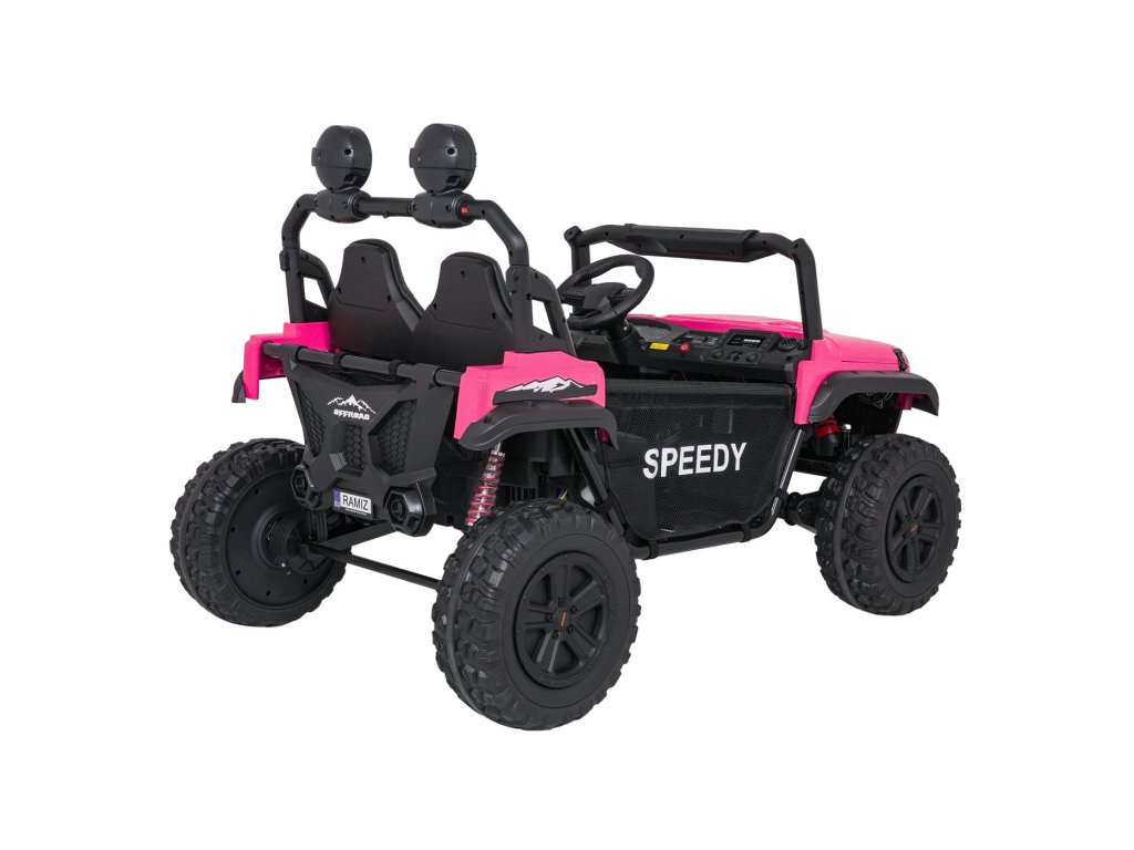 Nechybí ani hudební panel s připojením MP3, USB, AUX a Bluetooth. Díky dálkovému ovladači s bezpečnostním tlačítkem STOP mají rodiče nad jízdou plnou kontrolu.