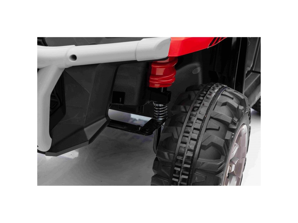 Mezi vybavení autíčka patří přední LED světla, hudební panel se vstupem USB, AUX, MP3 a předem nahranými melodiemi. Autíčko má funkci automatické brzdy, která se aktivuje ihned po spuštění nohy z plynového pedálu.