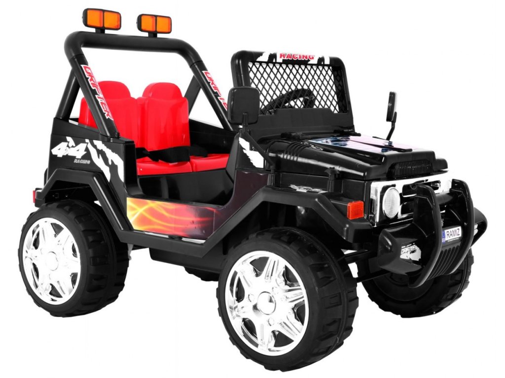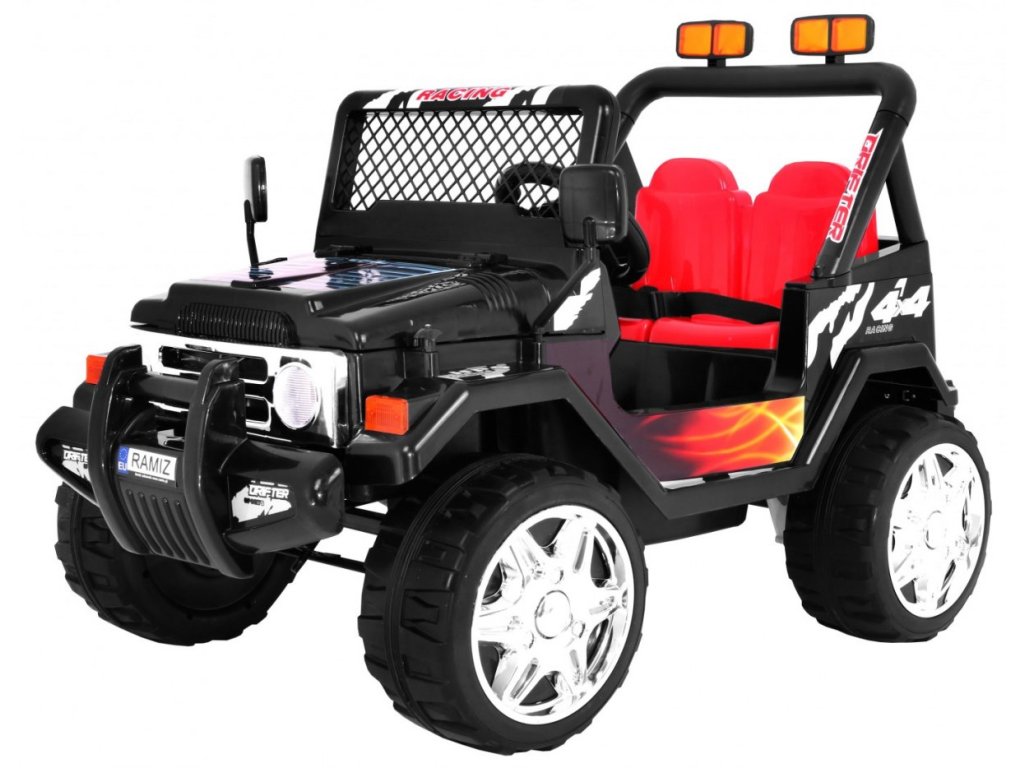 Dětské elektrické autíčko Raptor Drifter s inovativním dálkovým ovládáním určeným pro rodiče. Autíčko má skvěle pohodlnou sedačku a pro bezpečnost dítěte je na sedačce umístěn bezpečnostní pas. Autíčko je také vybaveno palubní deskou, volantem a svítícími předními světly. Vozítko lze ovládat dvěma způsoby, bud' pomocí dálkového ovladače určeného pro rodiče, kdy rodič sám volí směr a rychlost jízdy nebo dítě řídí autíčko zcela samostatně. Kola jsou měkká pěnová a umožňují tak plynulou a příjemnou jízdu bez hrkání.