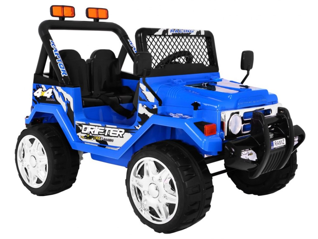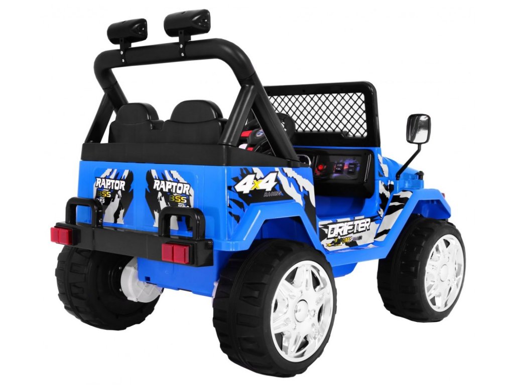 Dětské elektrické autíčko Raptor Drifter s inovativním dálkovým ovládáním určeným pro rodiče. Autíčko má skvěle pohodlnou sedačku a pro bezpečnost dítěte je na sedačce umístěn bezpečnostní pas. Autíčko je také vybaveno palubní deskou, volantem a svítícími předními světly. Vozítko lze ovládat dvěma způsoby, bud' pomocí dálkového ovladače určeného pro rodiče, kdy rodič sám volí směr a rychlost jízdy nebo dítě řídí autíčko zcela samostatně. Kola jsou měkká pěnová a umožňují tak plynulou a příjemnou jízdu bez hrkání.