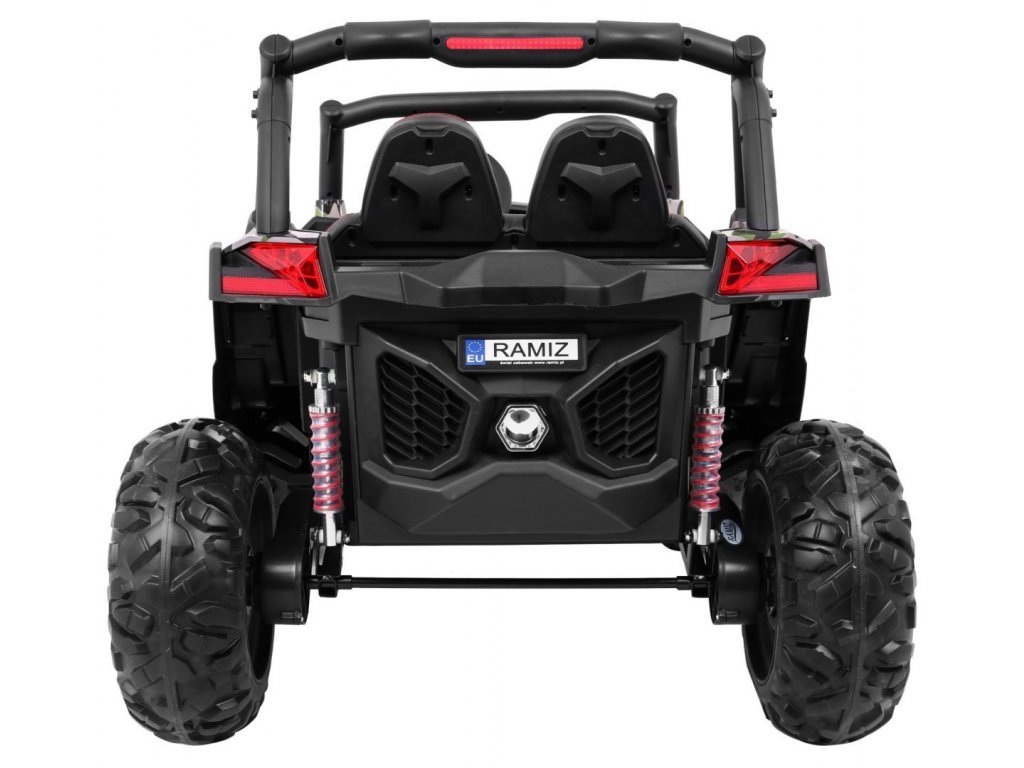 Terénní Buggy je vyrobeno výhradně ze silného plastu. Postarali jsme se o nejmenší detaily, jako jsou bezpečnostní pásy, rodičovské dálkové ovládání, rádio a světelné efekty.