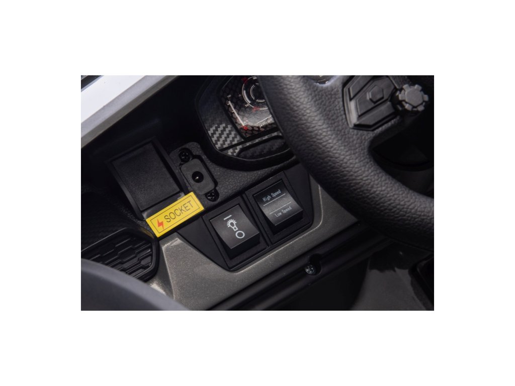 Dítě si jízdu užije i díky hudebnímu panelu, který obsahuje FM rádio, MP3, AUX vstup, Bluetooth a USB port, spolu s předem nahranými melodiemi. Bezpečnost při jízdě zajišťují bezpečnostní pásy a plynulý rozjezd.