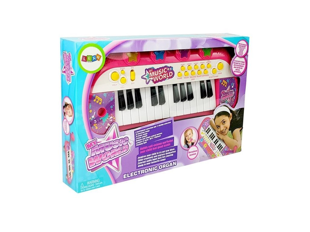 Dětské klávesy s mikrofonem mají 14 bílých a 10 černých kláves.