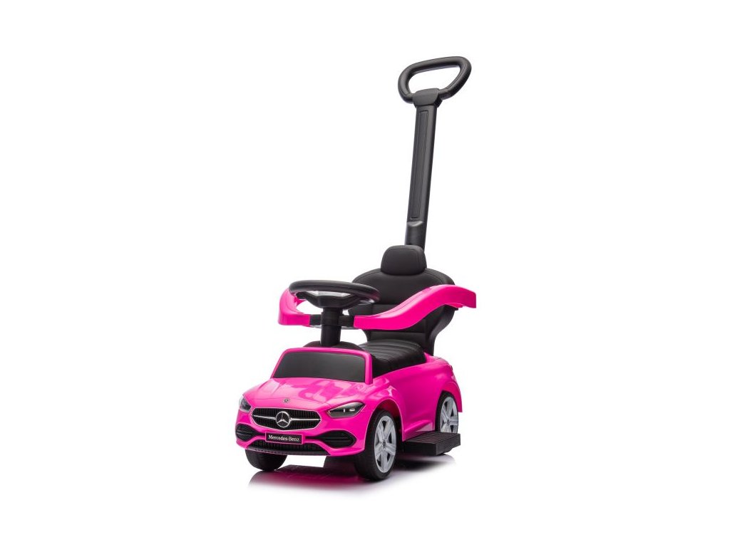 Dětské odrážedlo auto s vodící tyčí Mercedes růžové