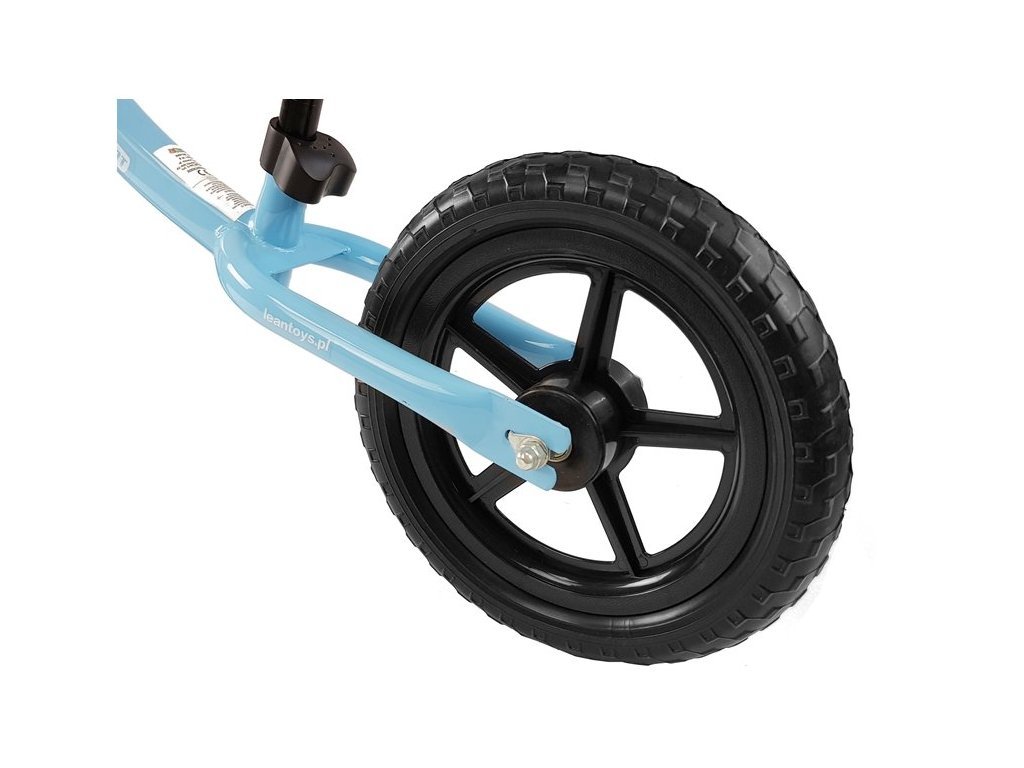 Dětské odrážedlo je namontováno na ultralehkých pěnových kolech, díky kterým je pohyb na něm bezpečný a pohodlný. Velkou výhodou materiálu EVA, ze kterého jsou pneumatiky vyrobeny, je jeho vysoká trvanlivost a odolnost proti propíchnutí. Rám odrážedla je vyroben z oceli, díky čemuž je konstrukce opravdu stabilní. Sedadlo je vyrobeno z černé ekologické kůže, díky čemuž je pohodlné.