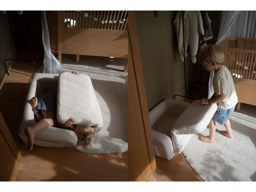Lumi je křesílko 2 v 1, které lze rozložit na měkkou podložku na zdřímnutí. Je navrženo pro každodenní hraní, odpočinek a chvíle klidu – s pratelným potahem a z bezpečných materiálů.