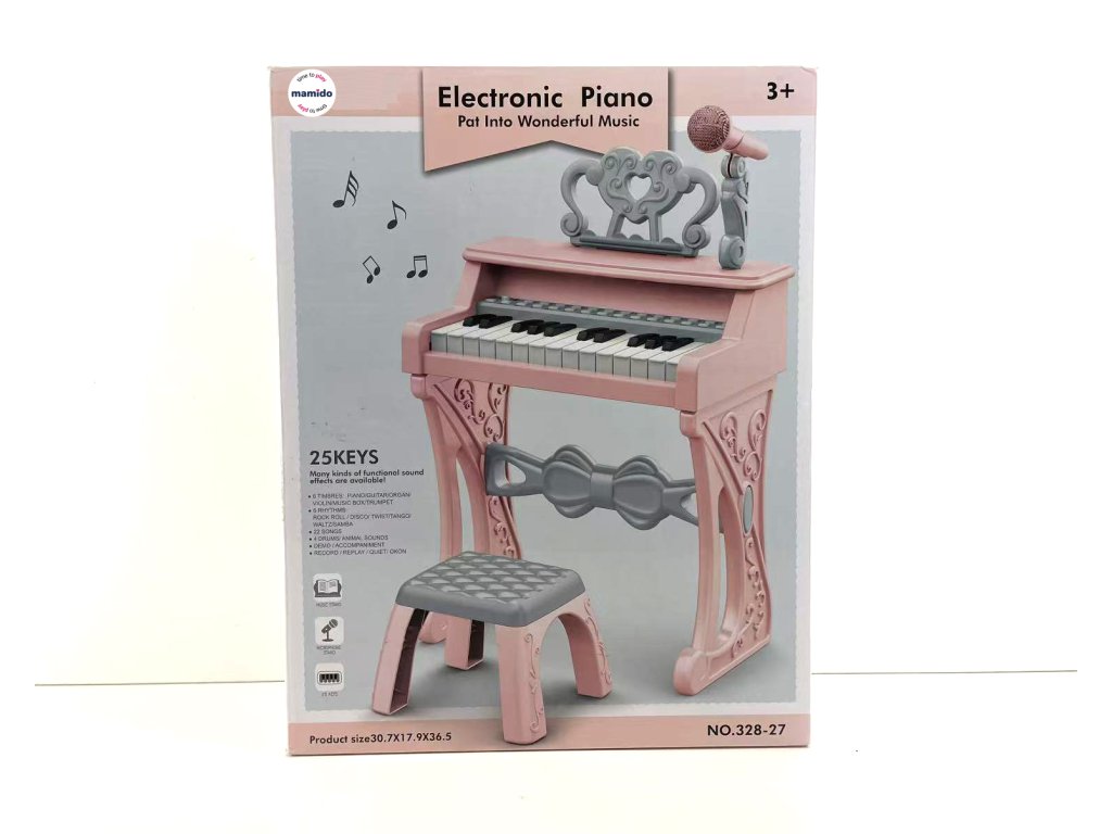Dětský elektrický klavír je skvělou alternativou pro všechny malé hudební nadšence, ale i začátečníky. Je vybaven 15 bílými klávesy a 10 černými klávesy. Má stojan s mikrofonem i stoličkou přizpůsobenou pro děti.