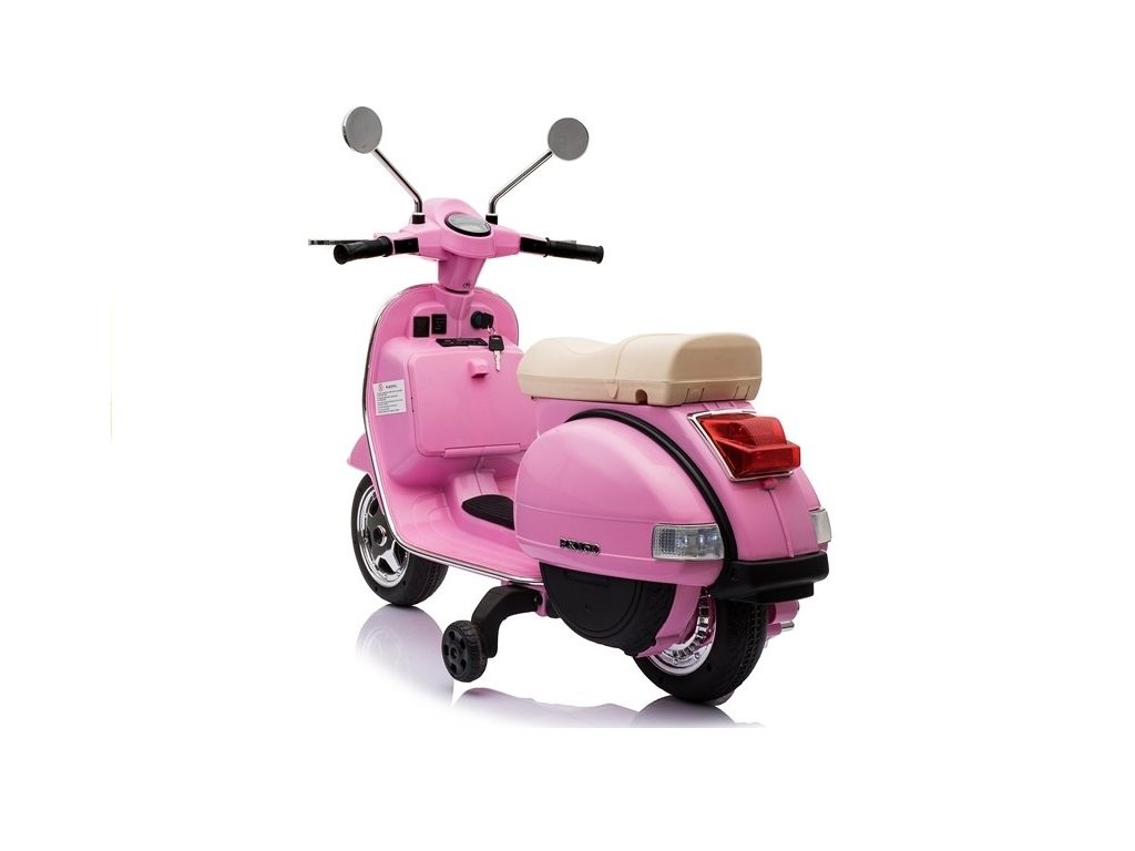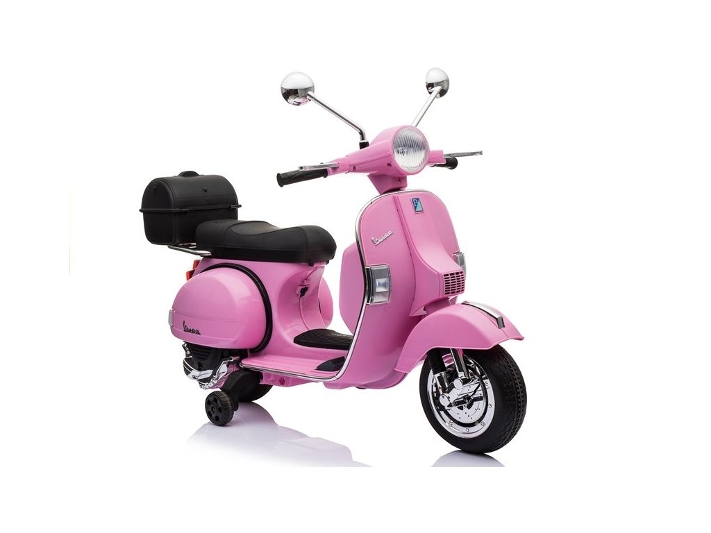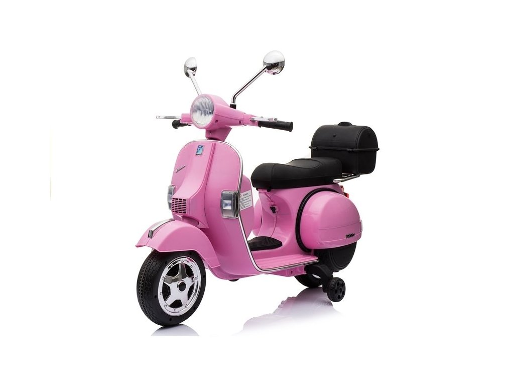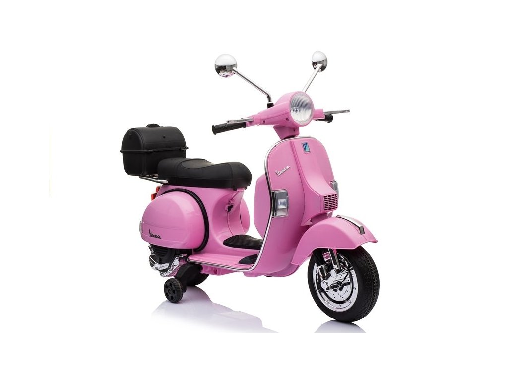 Kdo by neznal skútr značky Vespa? Tento legendární skútr může řídit i Vaše dítě, a to díky tomuto licencovanému modelu. Skútr má kvalitní sedadlo potažené měkkou ekologickou kůží a měkká kola EVA. K tomu všemu krásné přední LED světla a dokáže přehrávat MP3 soubory, takže si dítě může za jízdy poslechnout svou oblíbenou pohádku a zároveň zdokonalovat své řidičské schopnosti