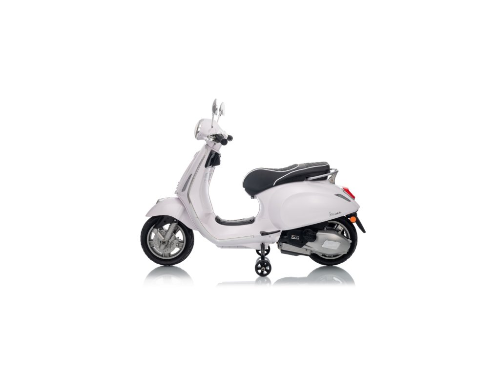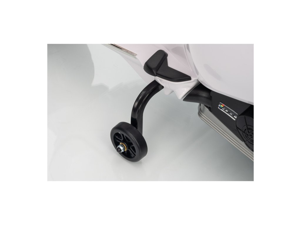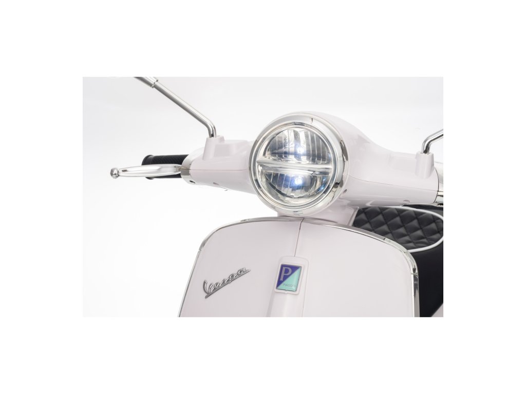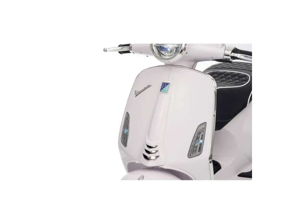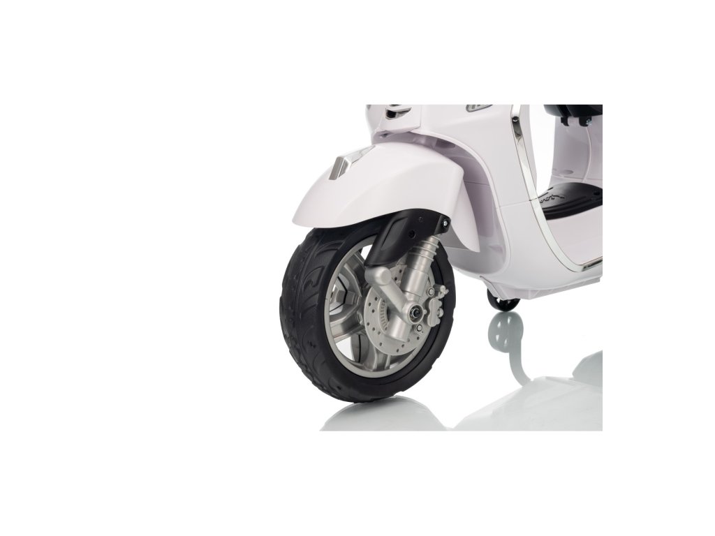 Kdo by neznal skútr značky Vespa? Tento legendární skútr může řídit i Vaše dítě, a to díky tomuto licencovanému modelu. Skútr má kvalitní sedadlo potažené měkkou ekologickou kůží a měkká kola EVA. K tomu všemu krásné přední a zadní LED světla a dokáže přehrávat MP3 soubory, takže si dítě může za jízdy poslechnout svou oblíbenou písničku a zároveň zdokonalovat své řidičské schopnosti.