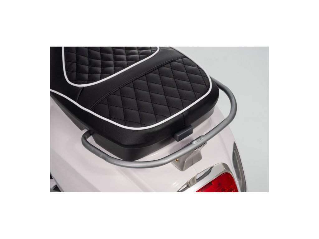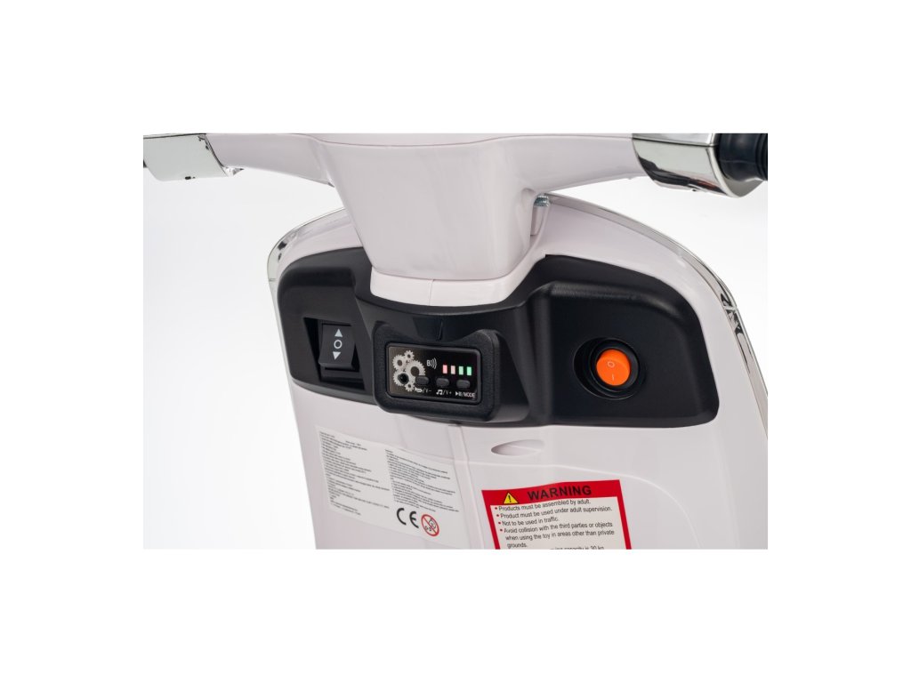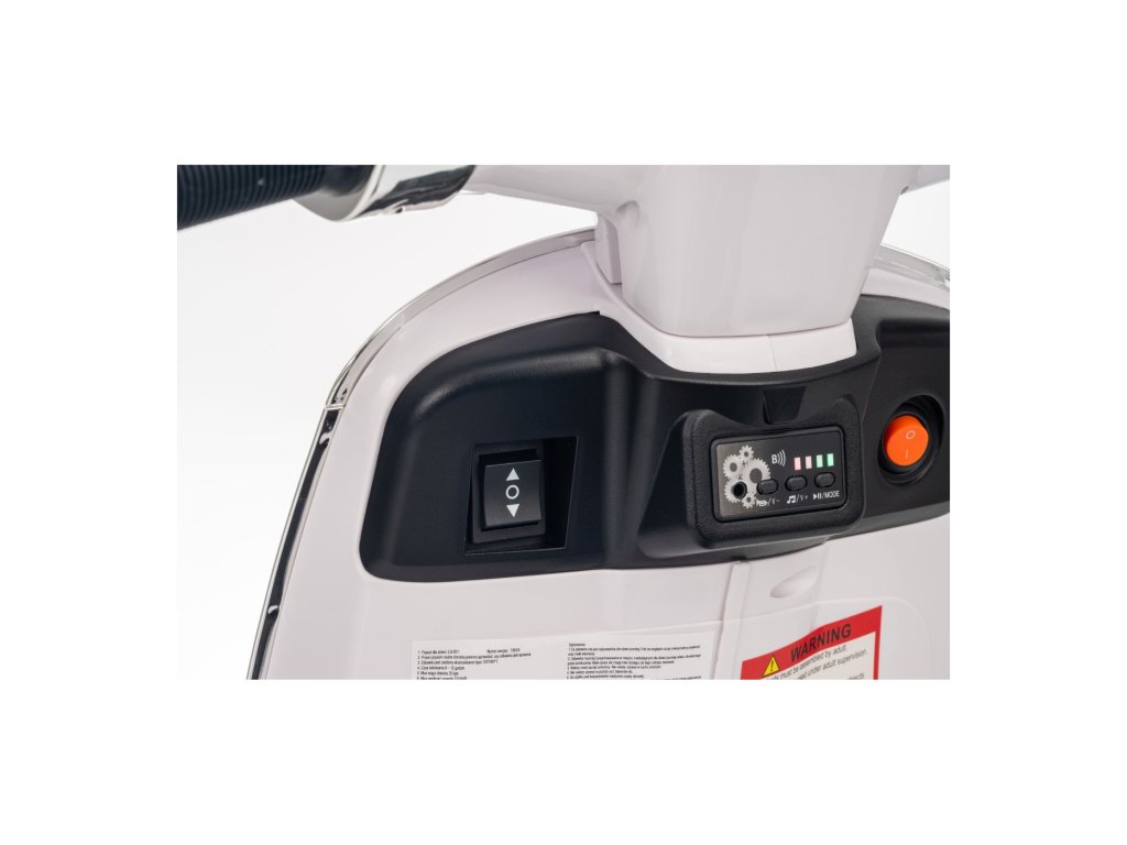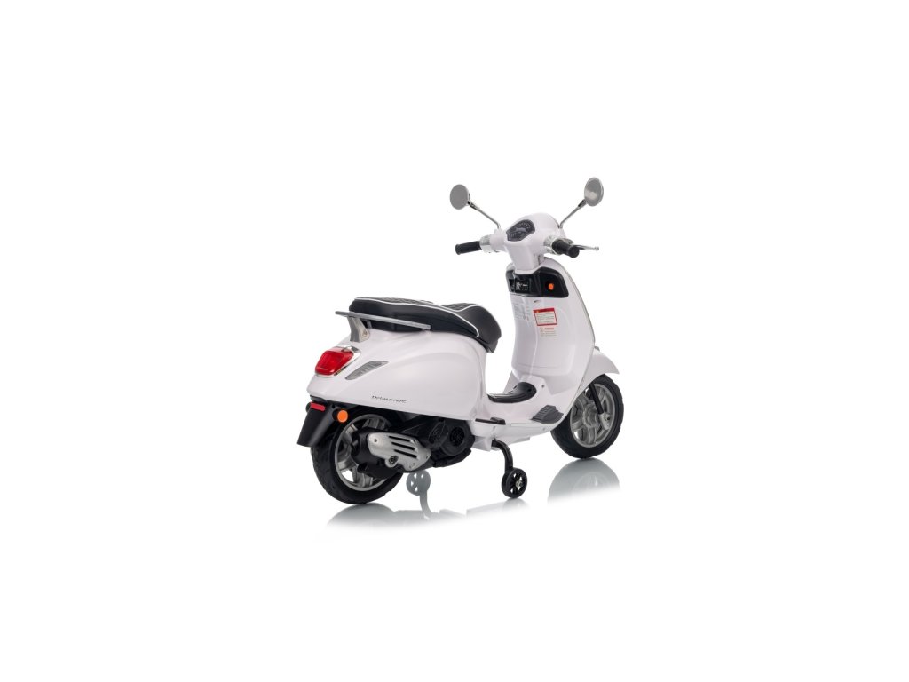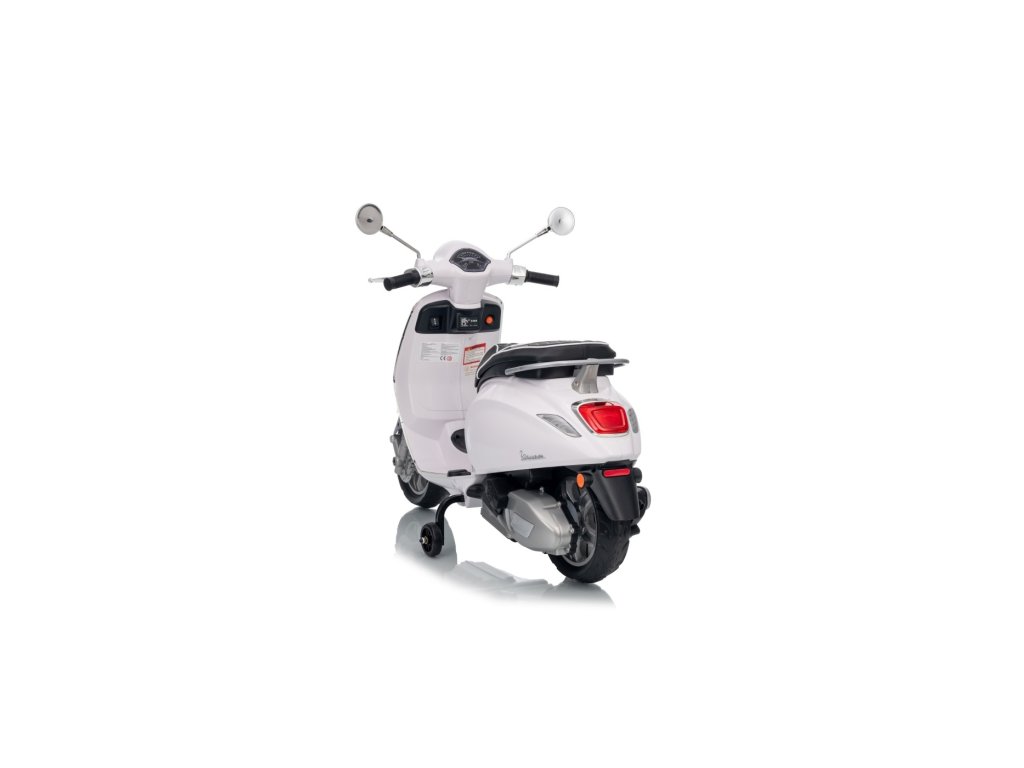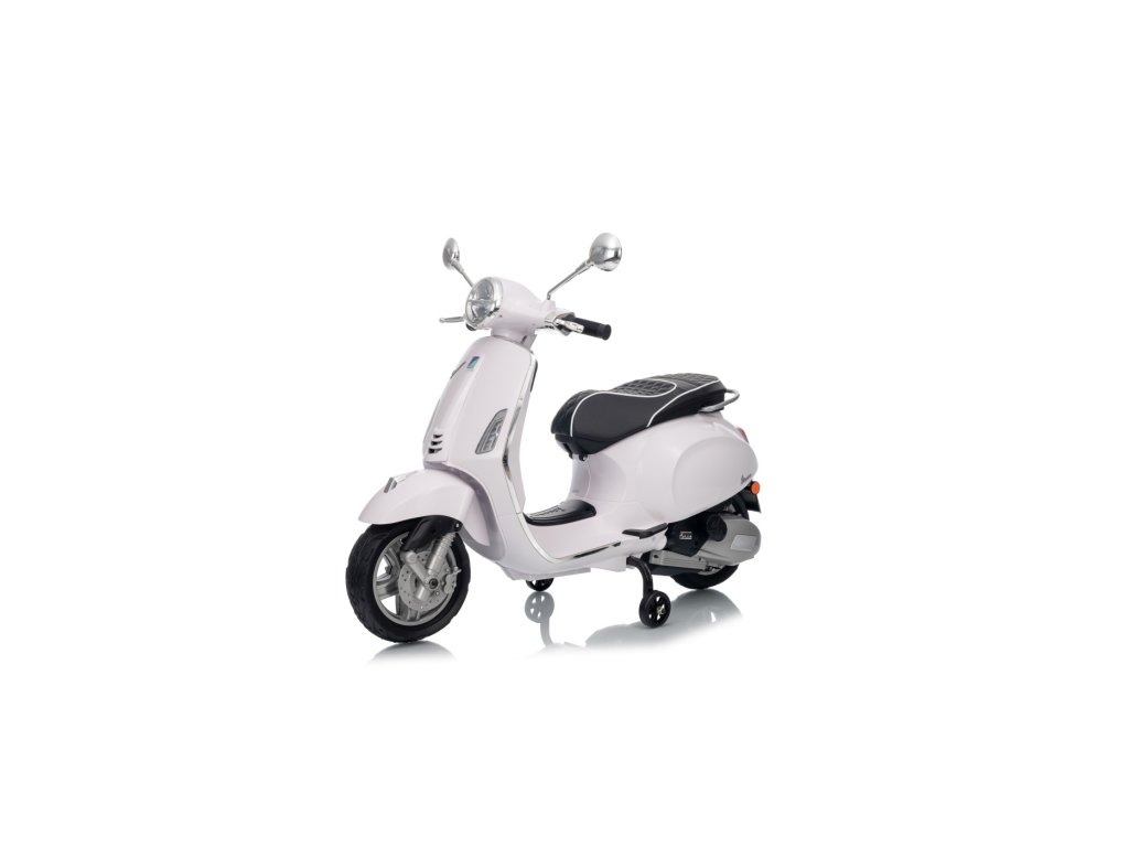 Kdo by neznal skútr značky Vespa? Tento legendární skútr může řídit i Vaše dítě, a to díky tomuto licencovanému modelu. Skútr má kvalitní sedadlo potažené měkkou ekologickou kůží a měkká kola EVA. K tomu všemu krásné přední a zadní LED světla a dokáže přehrávat MP3 soubory, takže si dítě může za jízdy poslechnout svou oblíbenou písničku a zároveň zdokonalovat své řidičské schopnosti.