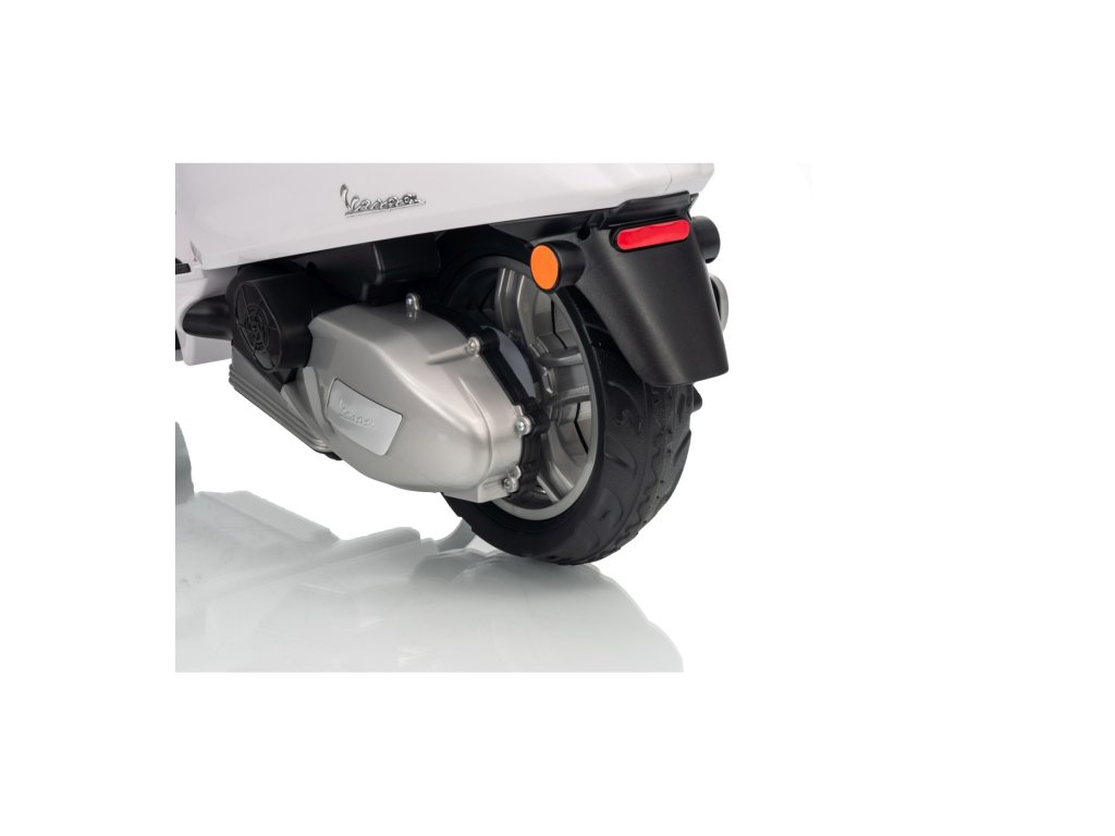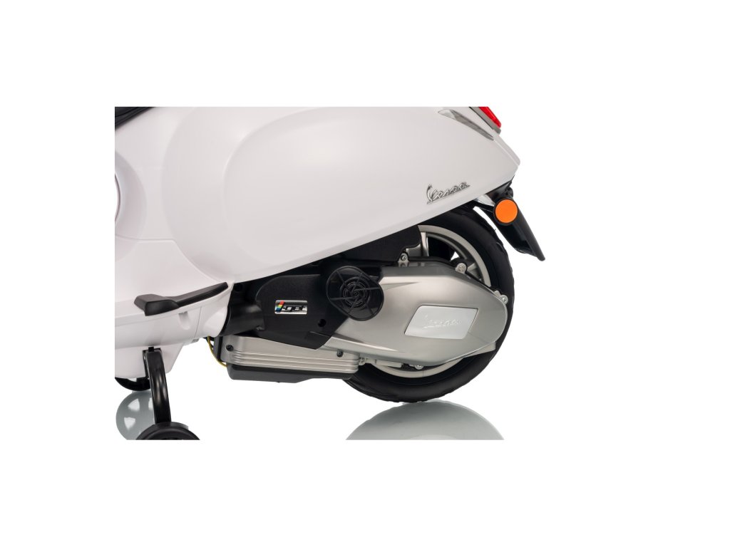 Vespa vydrží 1 hodinu senzační jízdy. Na bezpečí dítěte dbají postranní kolečka a automatická brzda, která zastaví, když dítě spustí nohu z plynového pedálu. Dětský skútr je vhodný pro děti od 3 let.