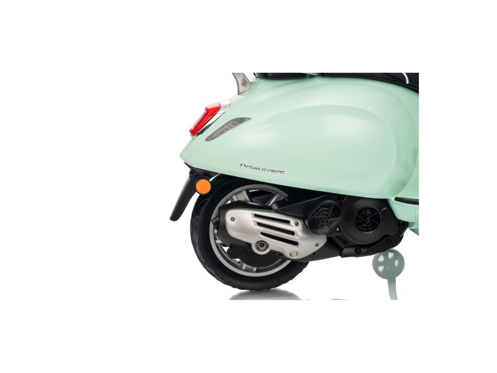 Vespa vydrží 1 hodinu senzační jízdy. Na bezpečí dítěte dbají postranní kolečka a automatická brzda, která zastaví, když dítě spustí nohu z plynového pedálu. Dětský skútr je vhodný pro děti od 3 let.