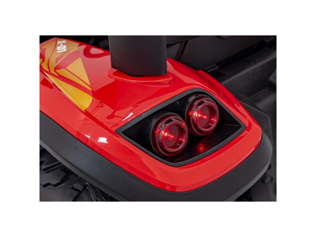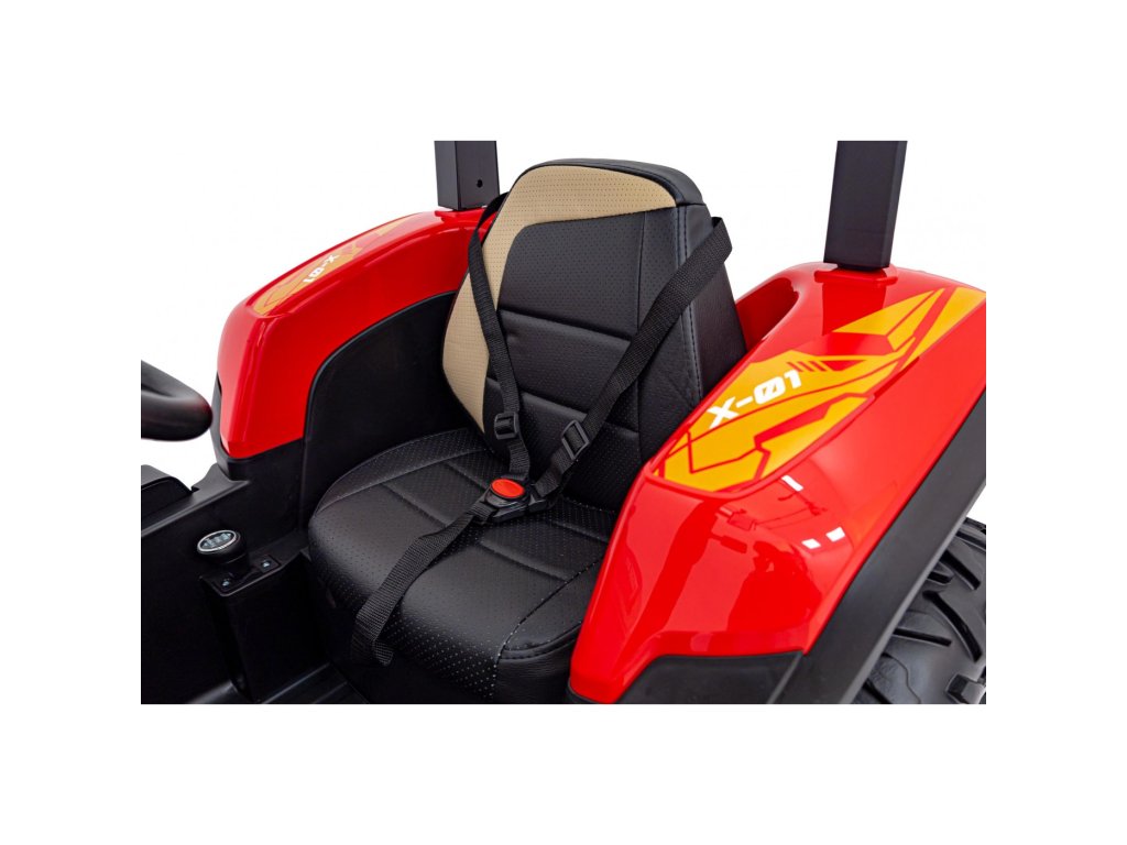 Traktor je vybaven měkkými EVA koly a sedadlem potaženým ekologickou kůží pro maximální pohodlí. Po uvolnění plynového pedálu se automaticky zastaví. Díky přepínači rychlostí umožňuje jízdu ve dvou režimech – pomalém a rychlém. Vozidlo lze ovládat i dálkovým ovladačem, který umožňuje regulaci rychlosti, změnu směru jízdy a disponuje bezpečnostním tlačítkem Stop pro okamžité zastavení traktoru.