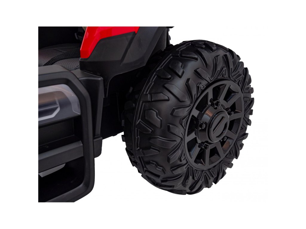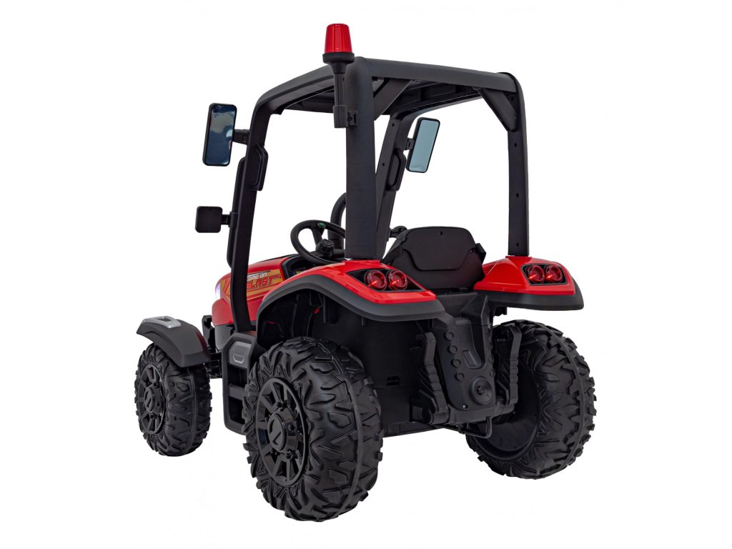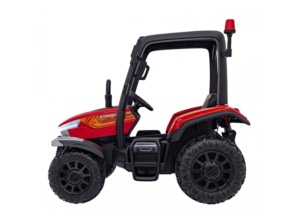 Dětský elektrický traktor s přívěsem má dva velmi výkonné motory 200W a baterii s kapacitou 24V 7Ah. Traktor má přední a zadní LED světla a hudební panel se vstupem USB, MP3 a s Bluetooth. Maximální nosnost traktoru je 30 kg.