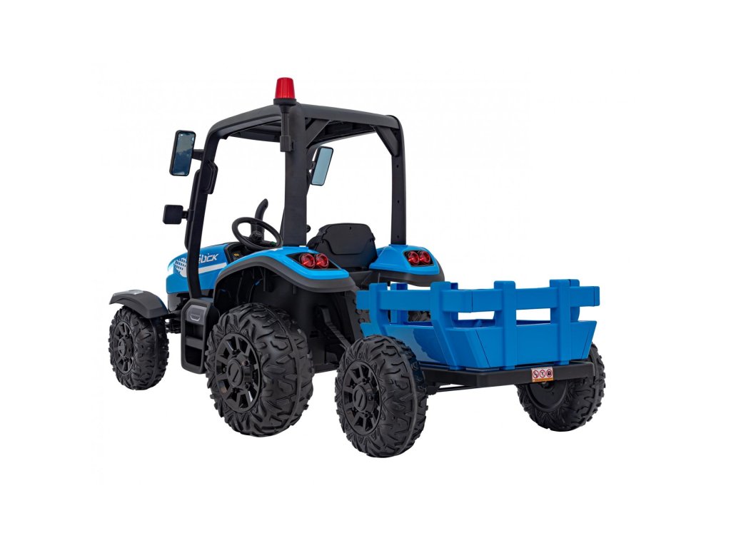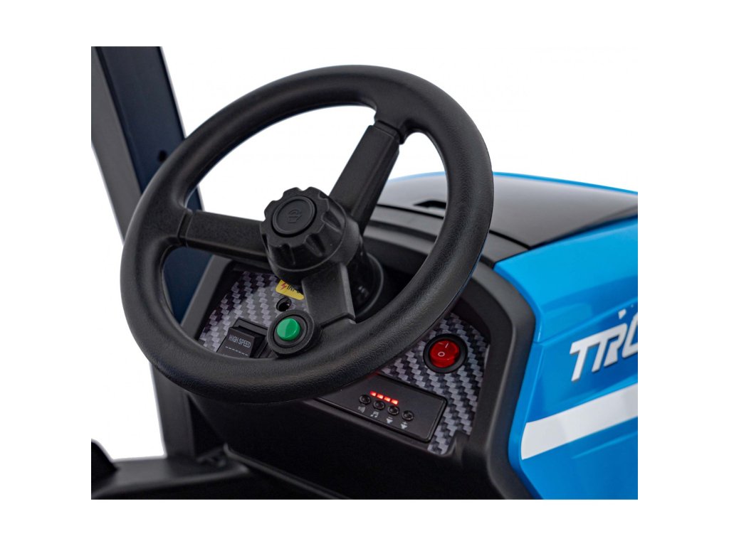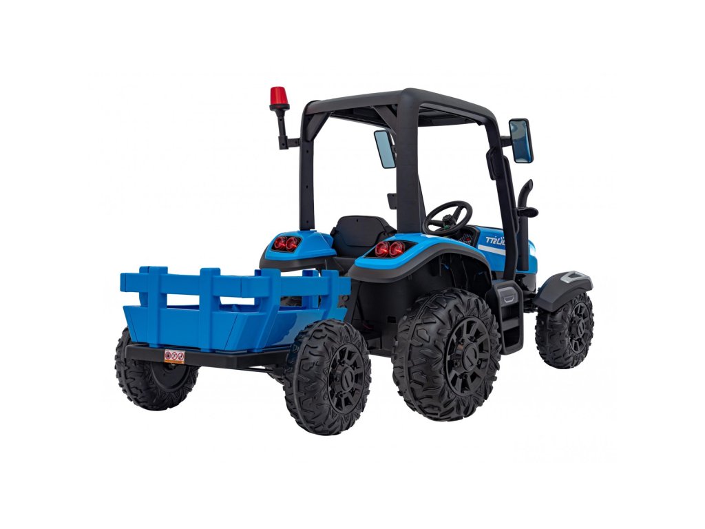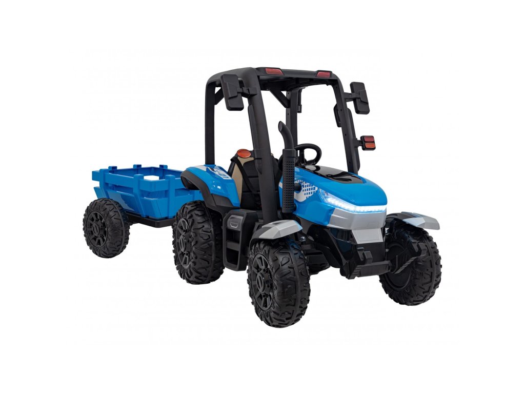 Dětský elektrický traktor s přívěsem má dva velmi výkonné motory 200W a baterii s kapacitou 24V 7Ah. Traktor má přední a zadní LED světla a hudební panel se vstupem USB, MP3 a s Bluetooth. Maximální nosnost traktoru je 30 kg.