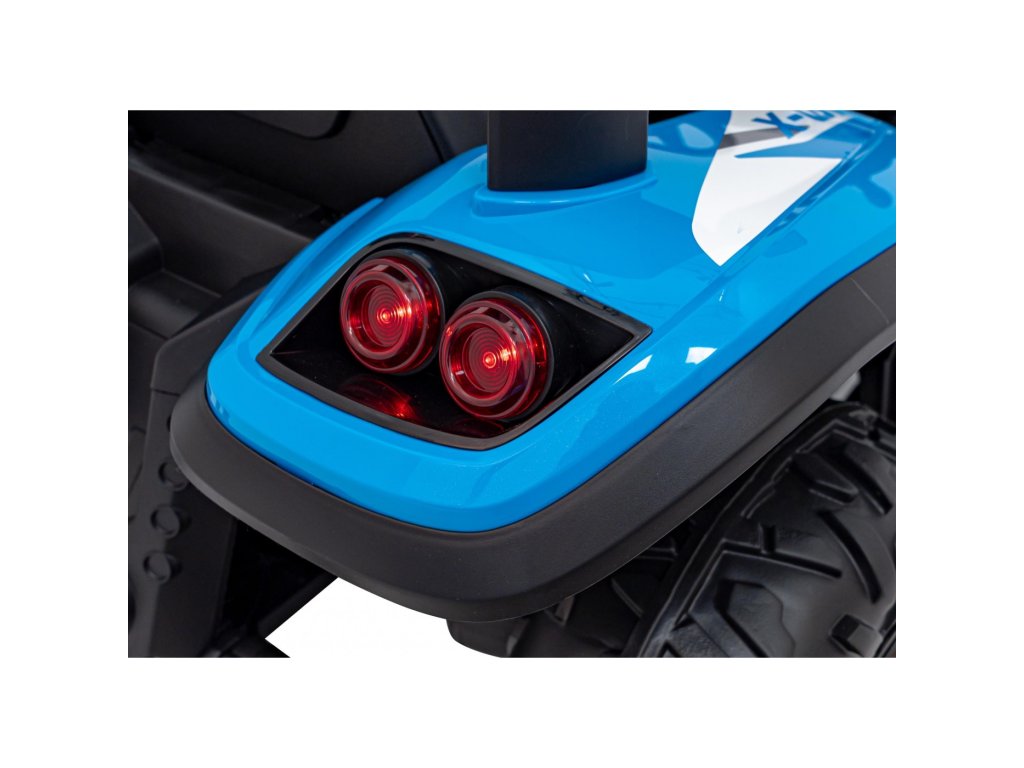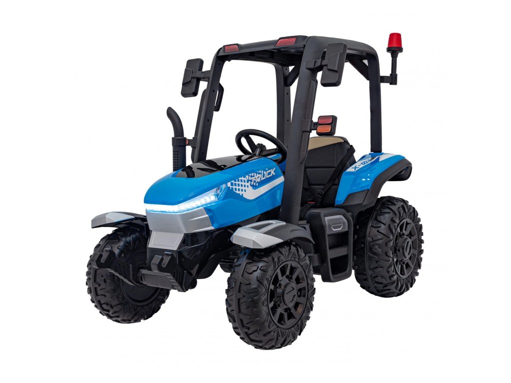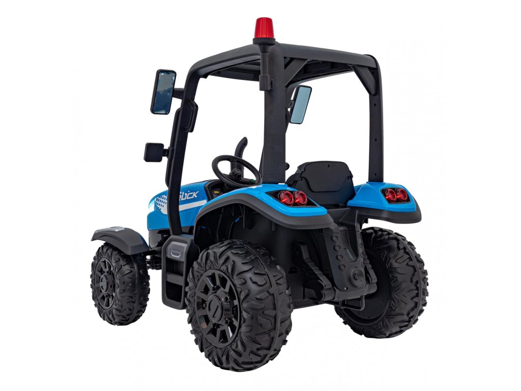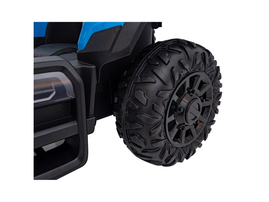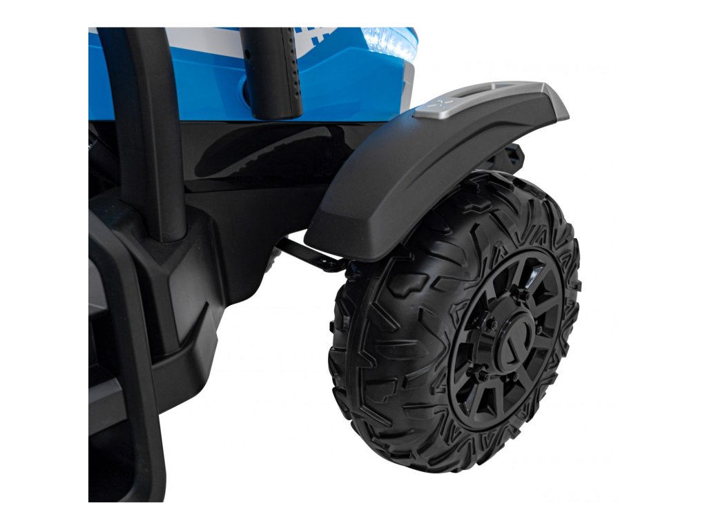 Dětský elektrický traktor s přívěsem má dva velmi výkonné motory 200W a baterii s kapacitou 24V 7Ah. Traktor má přední a zadní LED světla a hudební panel se vstupem USB, MP3 a s Bluetooth. Maximální nosnost traktoru je 30 kg.