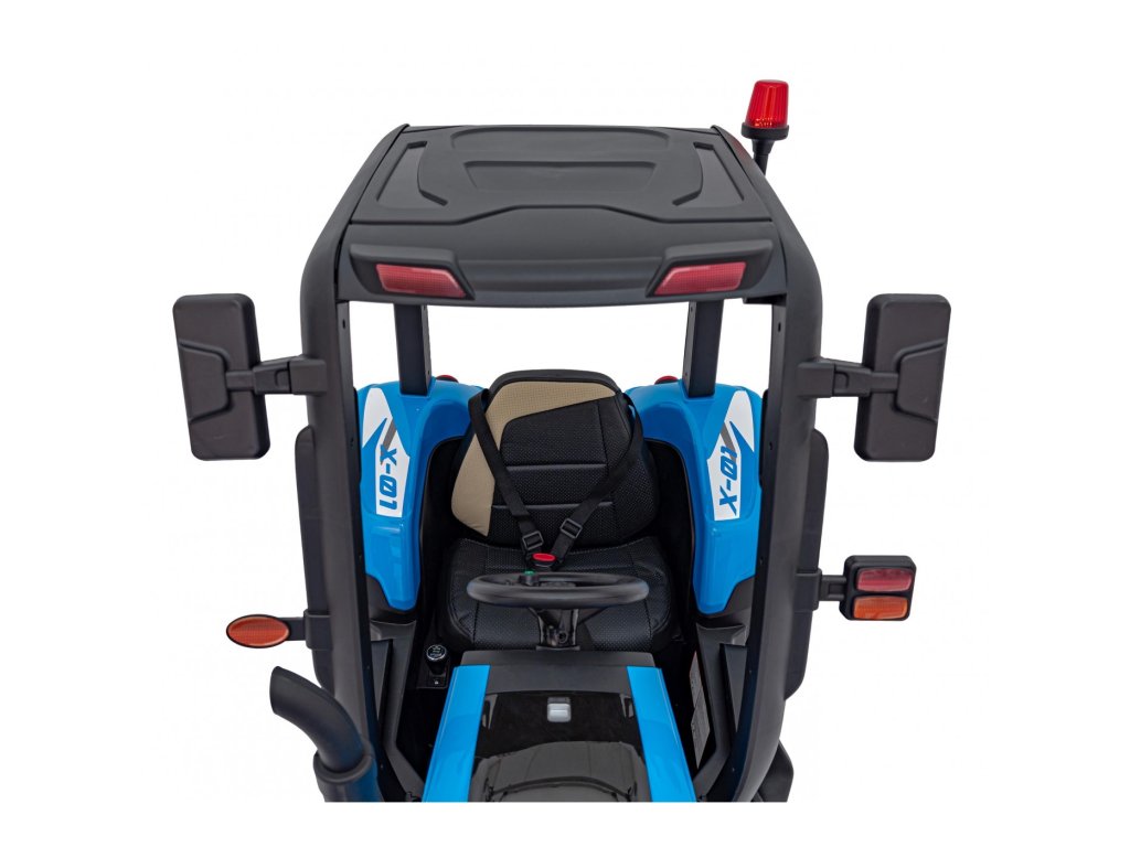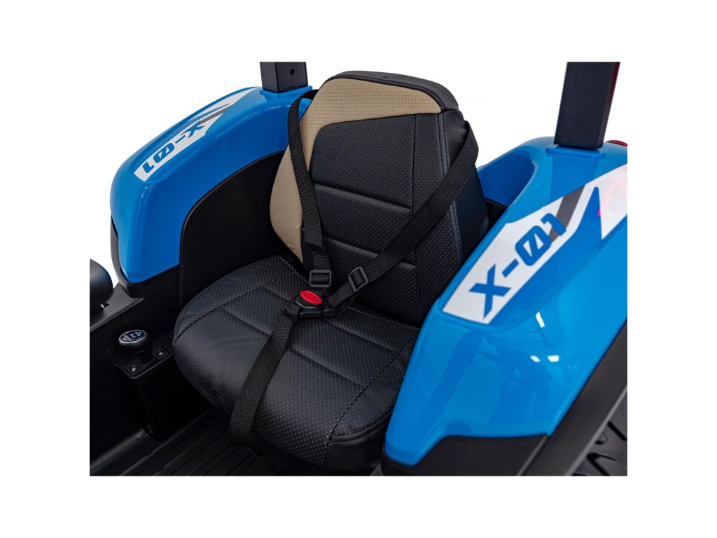 Traktor je vybaven měkkými EVA koly a sedadlem potaženým ekologickou kůží pro maximální pohodlí. Po uvolnění plynového pedálu se automaticky zastaví. Díky přepínači rychlostí umožňuje jízdu ve dvou režimech – pomalém a rychlém. Vozidlo lze ovládat i dálkovým ovladačem, který umožňuje regulaci rychlosti, změnu směru jízdy a disponuje bezpečnostním tlačítkem Stop pro okamžité zastavení traktoru.