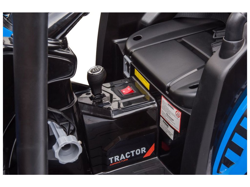 Traktor má plastová kola i sedadlo. Traktor automaticky zastaví po spuštění plynového pedálu a dosahuje rychlosti až 6 km/h.